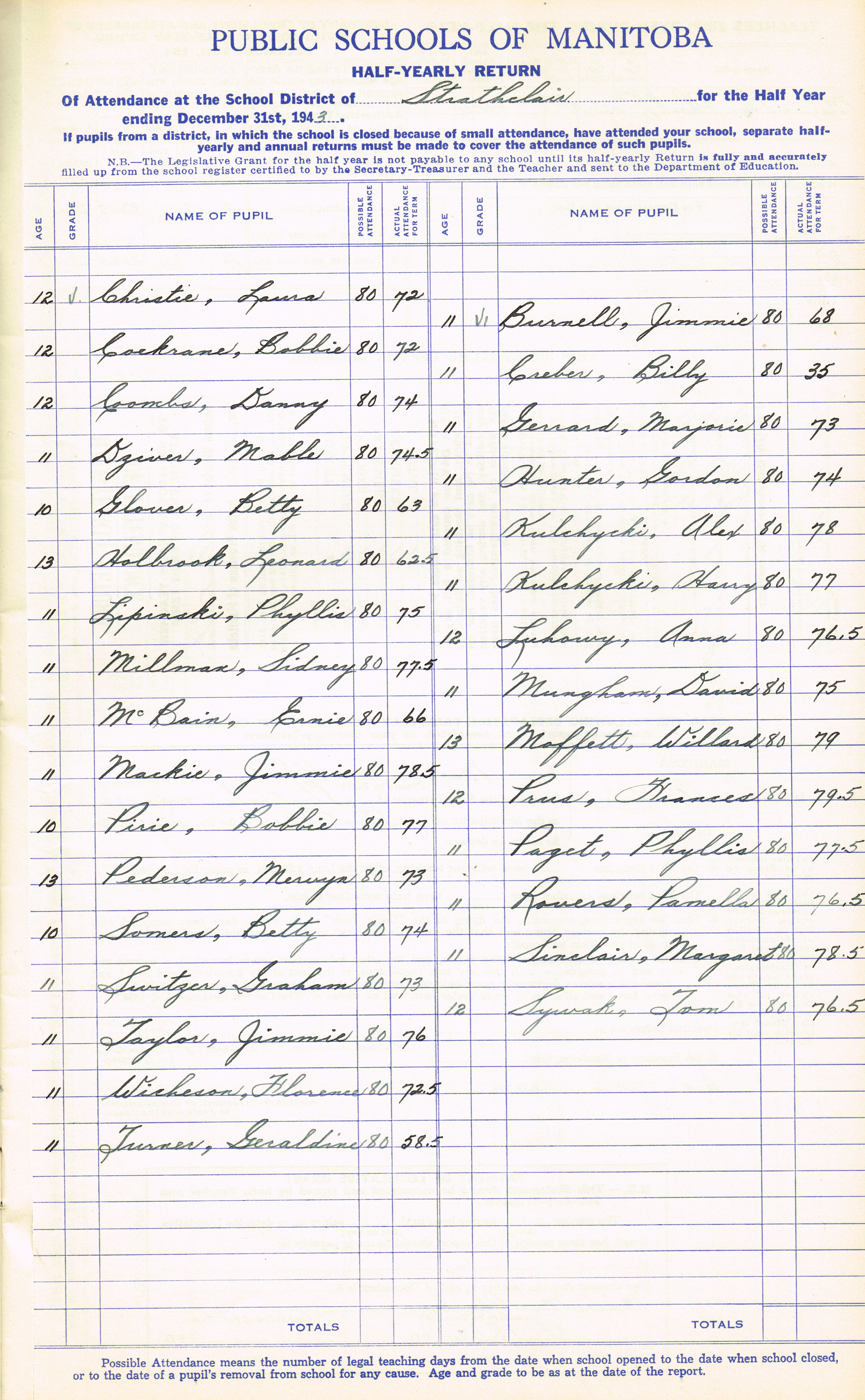 Description Marion McPhail (teacher), Laura Christie (G. 5), Bobbie Cockrane (G. 5), Danny Coombs (G. 5), Mable Dziver (G. 5), Betty Glover (G. 5), Leonard Holbrook (G. 5), Phyllis Lipinski (G. 5), Sidney Millman (G. 5), Ernie McBain (G. 5), Jimmie Mackie (G. 5), Bobbie Pirie (G. 5), Mervyn Pedersen (G. 5), Betty Somers (G. 5), Graham Switzer (G. 5), Jimmie Taylor (G. 5), Florence Wicheson (G. 5), Geraldine Turner (G. 5), Jimmie Burnell (G. 6), Billy Creber (G. 6), Marjorie Gerrard (G. 6), Gordon Hunter (G. 6), Alex Kulchycki (G. 6), Harry Kulchycki (G. 6), Anna Luhowy (G. 6), David Mungham (G. 6), Willard Moffett (G. 6), Frances Prus (G. 6), Pamella Rovers (G. 6), Margaret Sinclair (G. 6), Tom Sywak (G. 6), Phyllis Paget (G. 6).