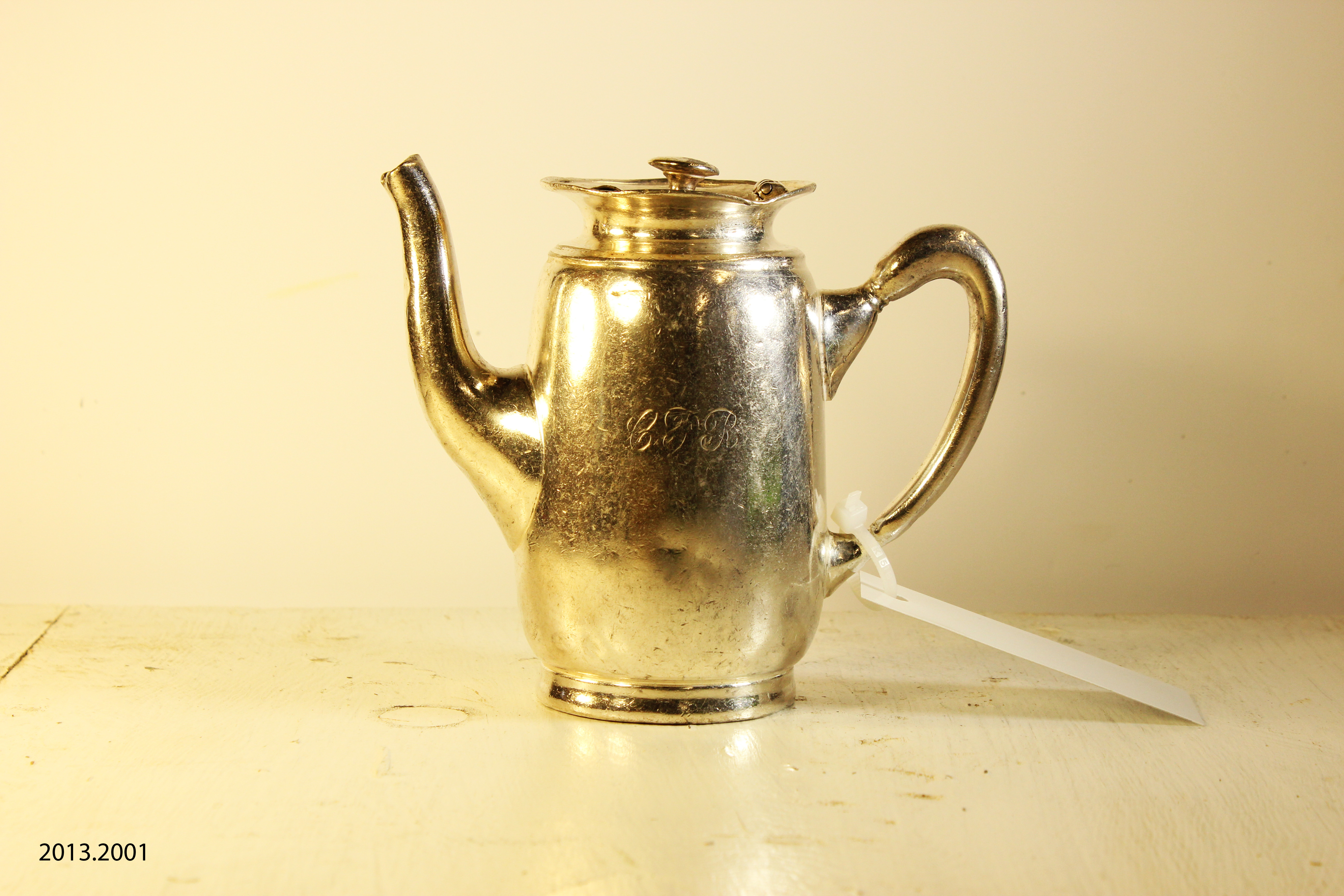 Object Desc Half-pint coffee pot used for individual coffee service on Canadian Pacific dining carts.