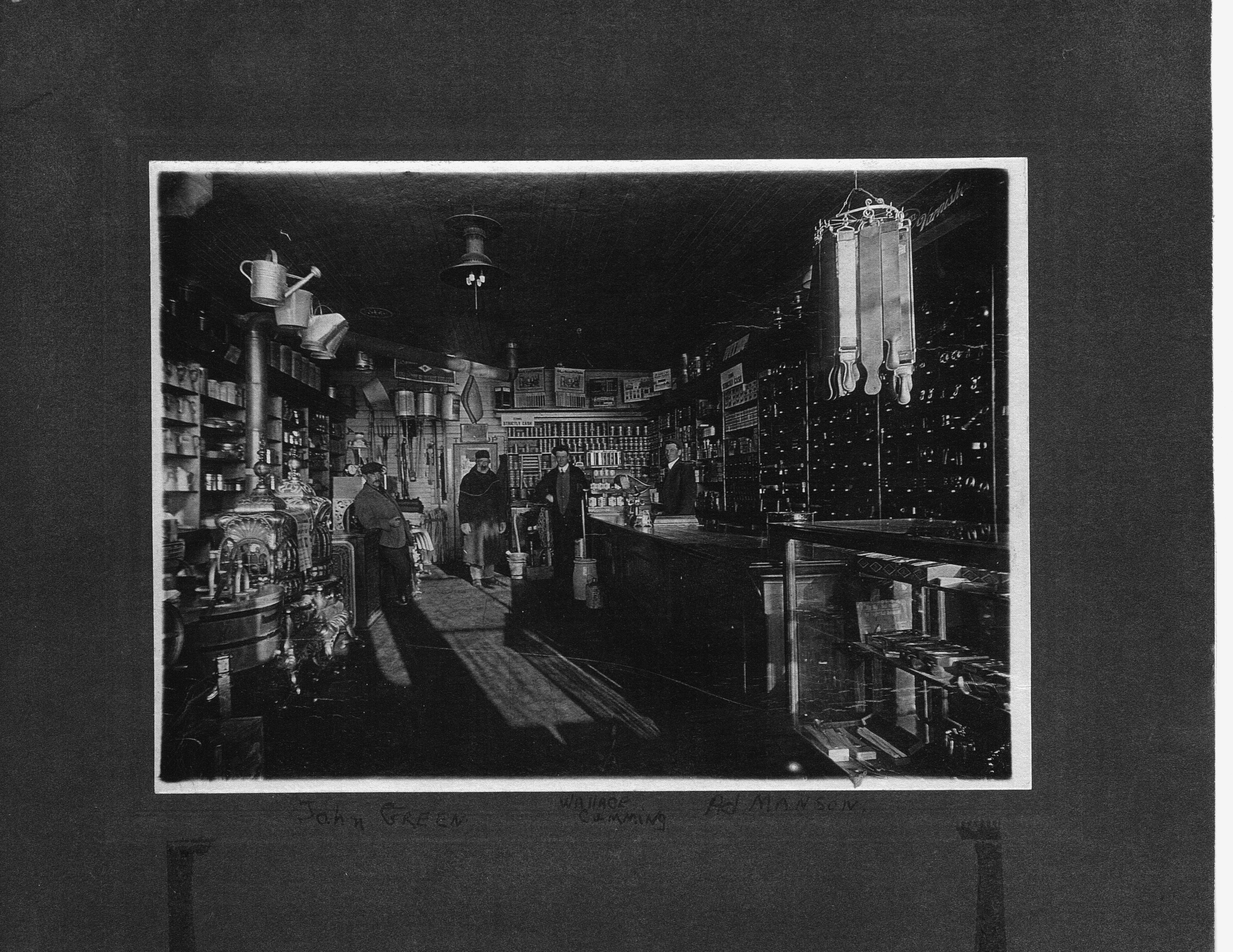 Object Desc George Manson and Sons Hardware in Strathclair, 1905. John Green, Wallace Cumming, Ab Manson