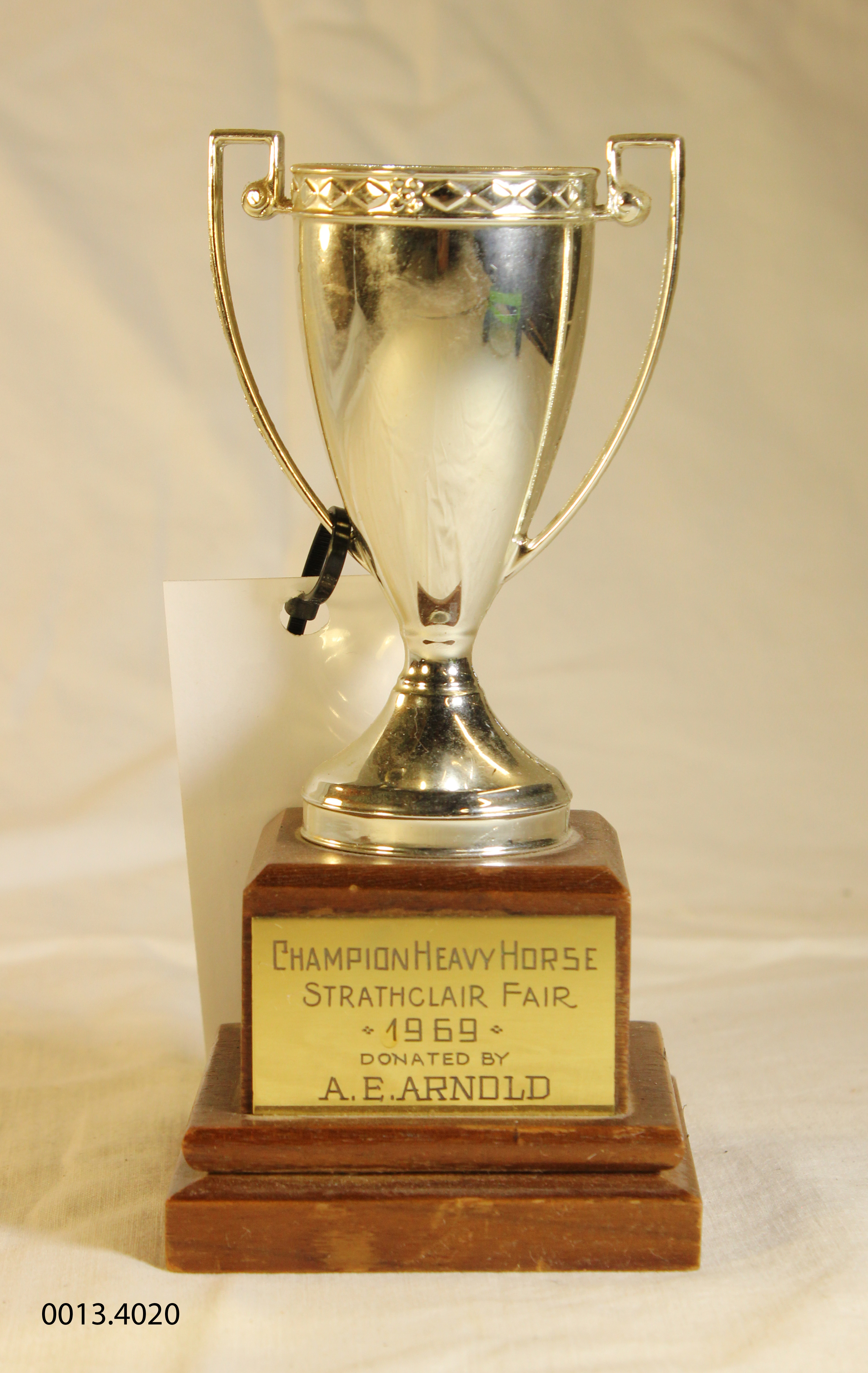 Object Desc Champion Heavy Horse Cup won in the Strathclair fair in 1969.
