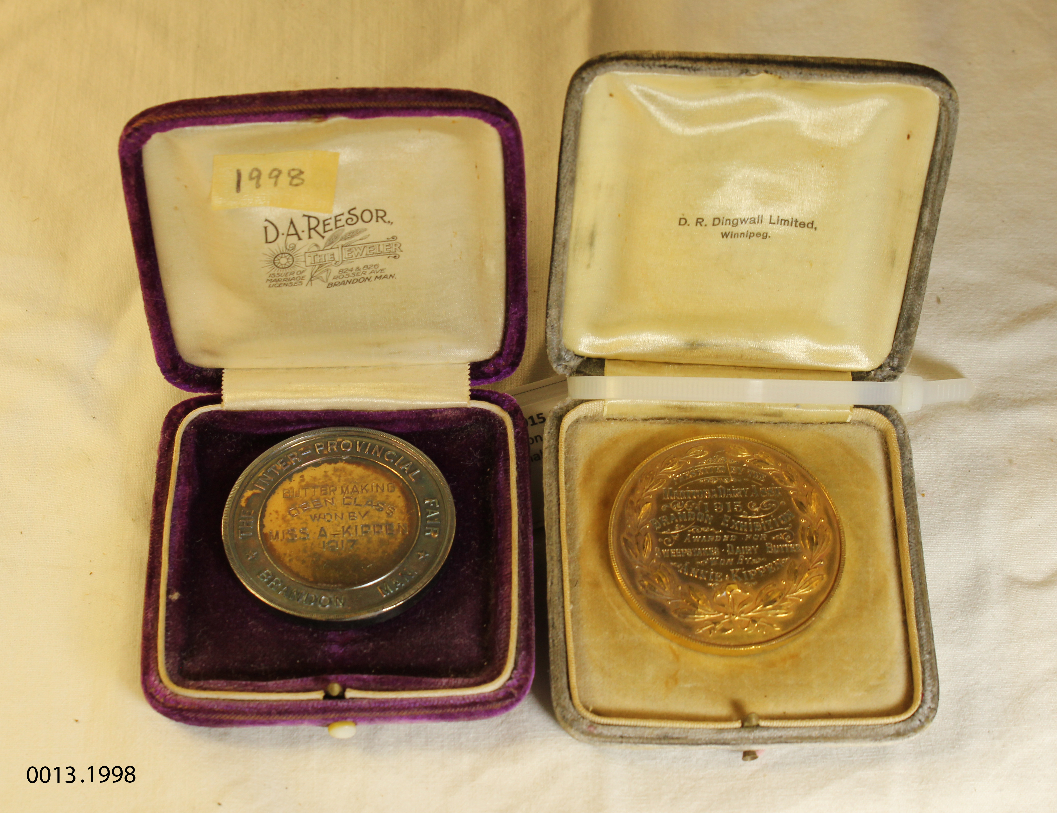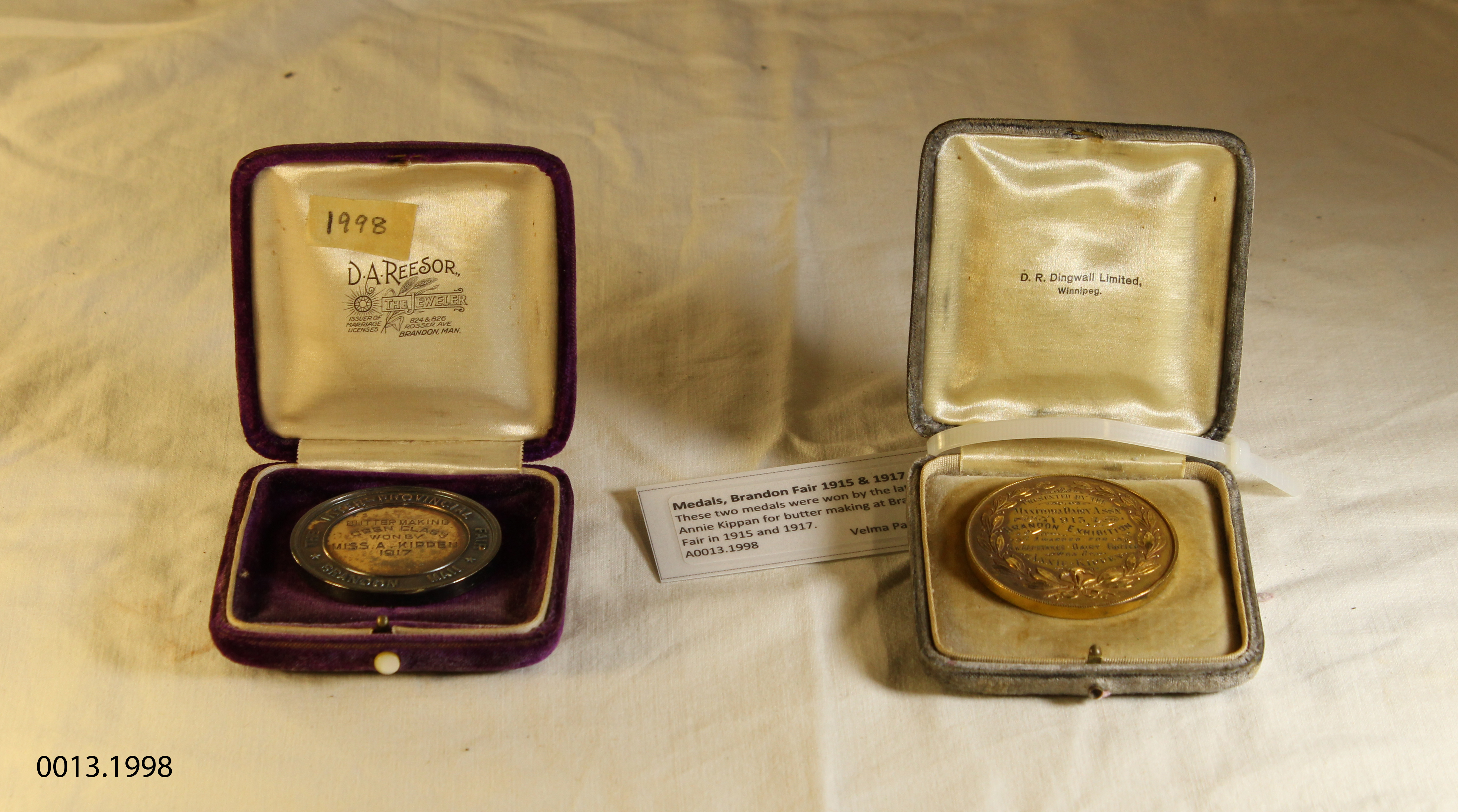 Object Desc These two medals were won by the late Annie Kippan for butter making at Brandon Fair in 1915 and 1917.