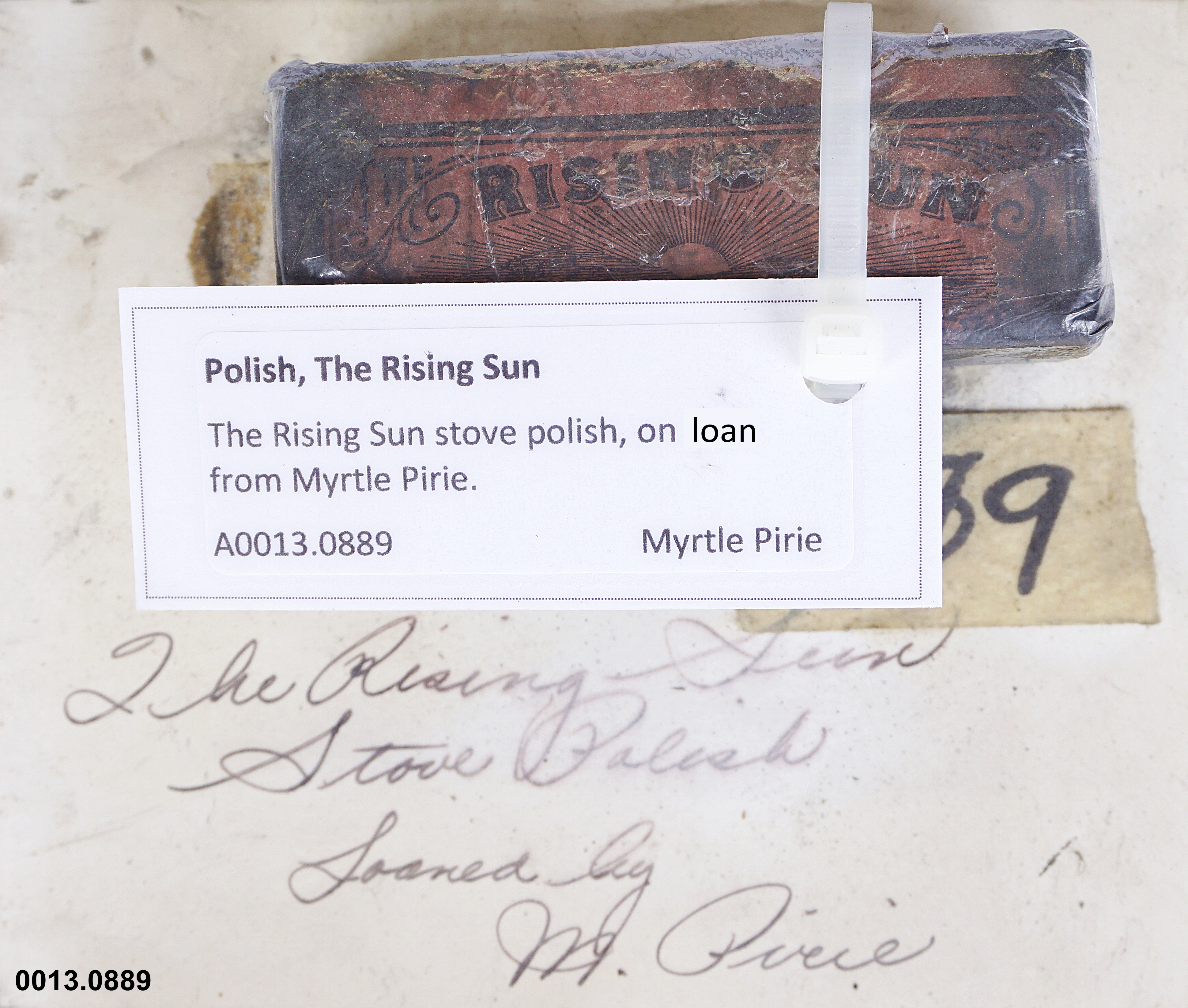 Object Desc The Rising Sun stove polish, on loan from Myrtle Pirie.