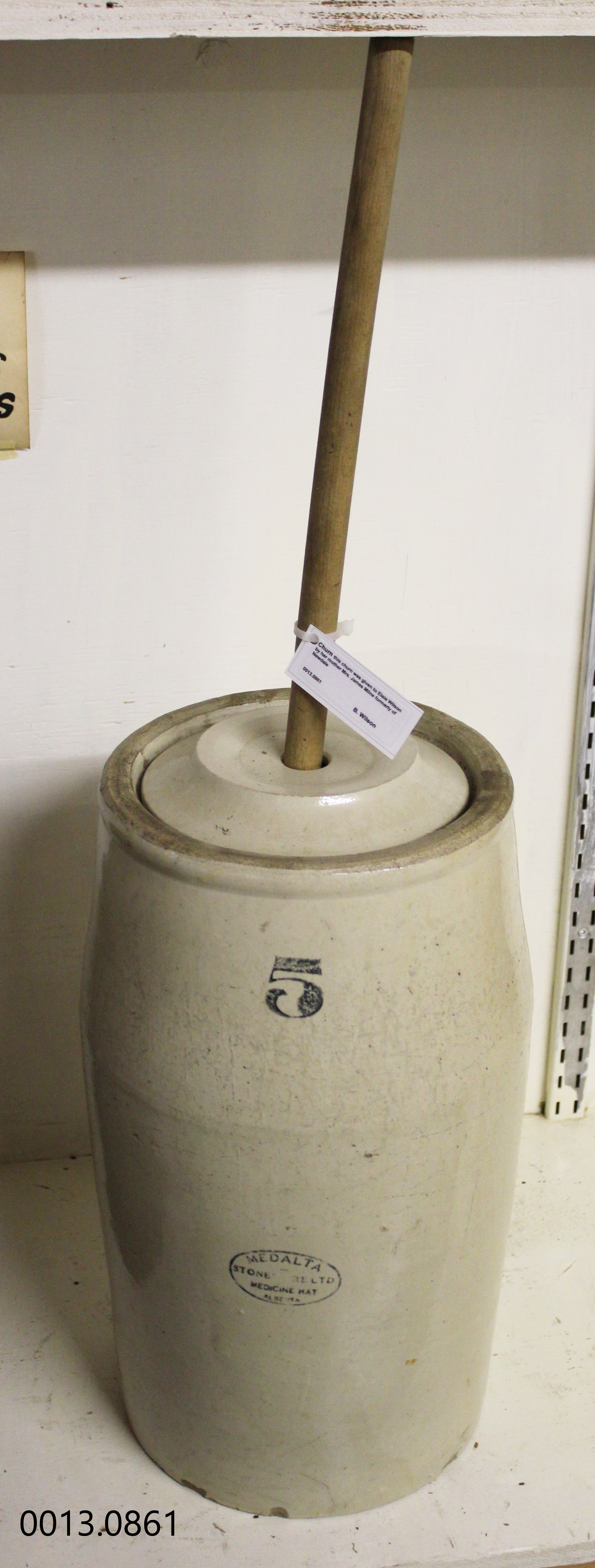 Object Desc This churn was given to Elsie Wilson from her parents and Mrs. James Milne formerly of Newdale when they left the farm.