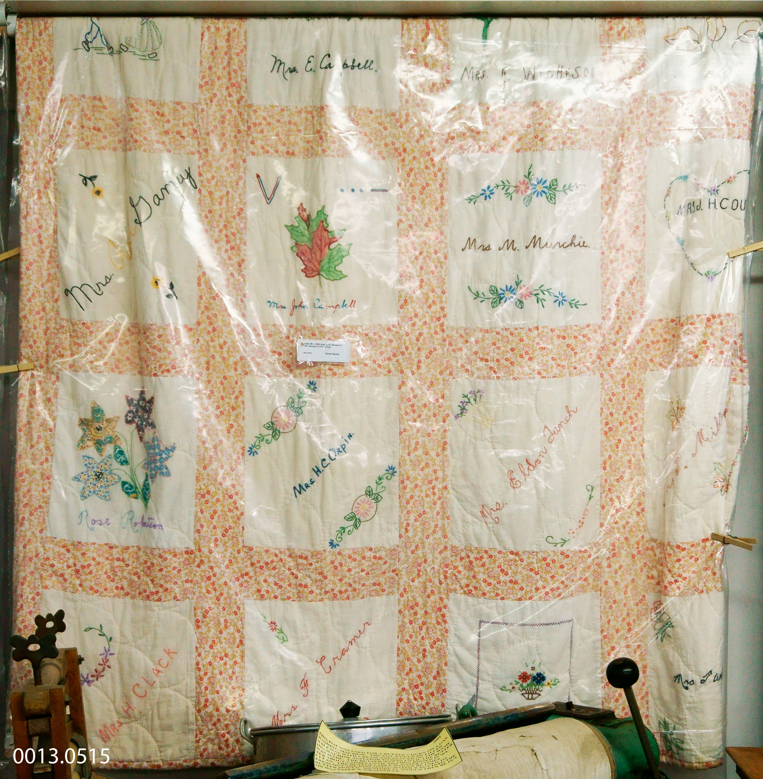 Object Desc Made by W.I. Members in 1943. Belongs to Verna Gamey.