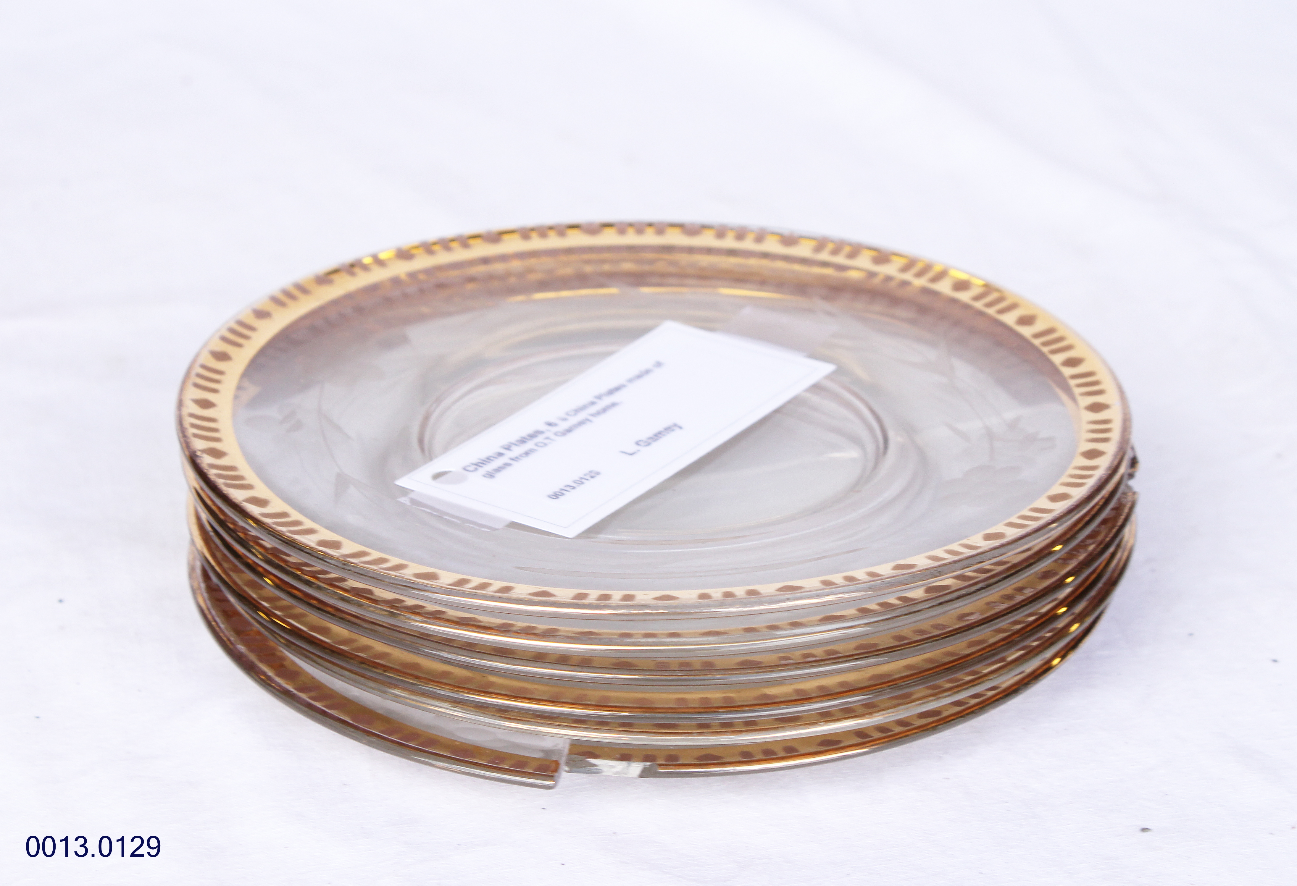 Object Desc 6 China plates made of glass from O.T Gamey home.