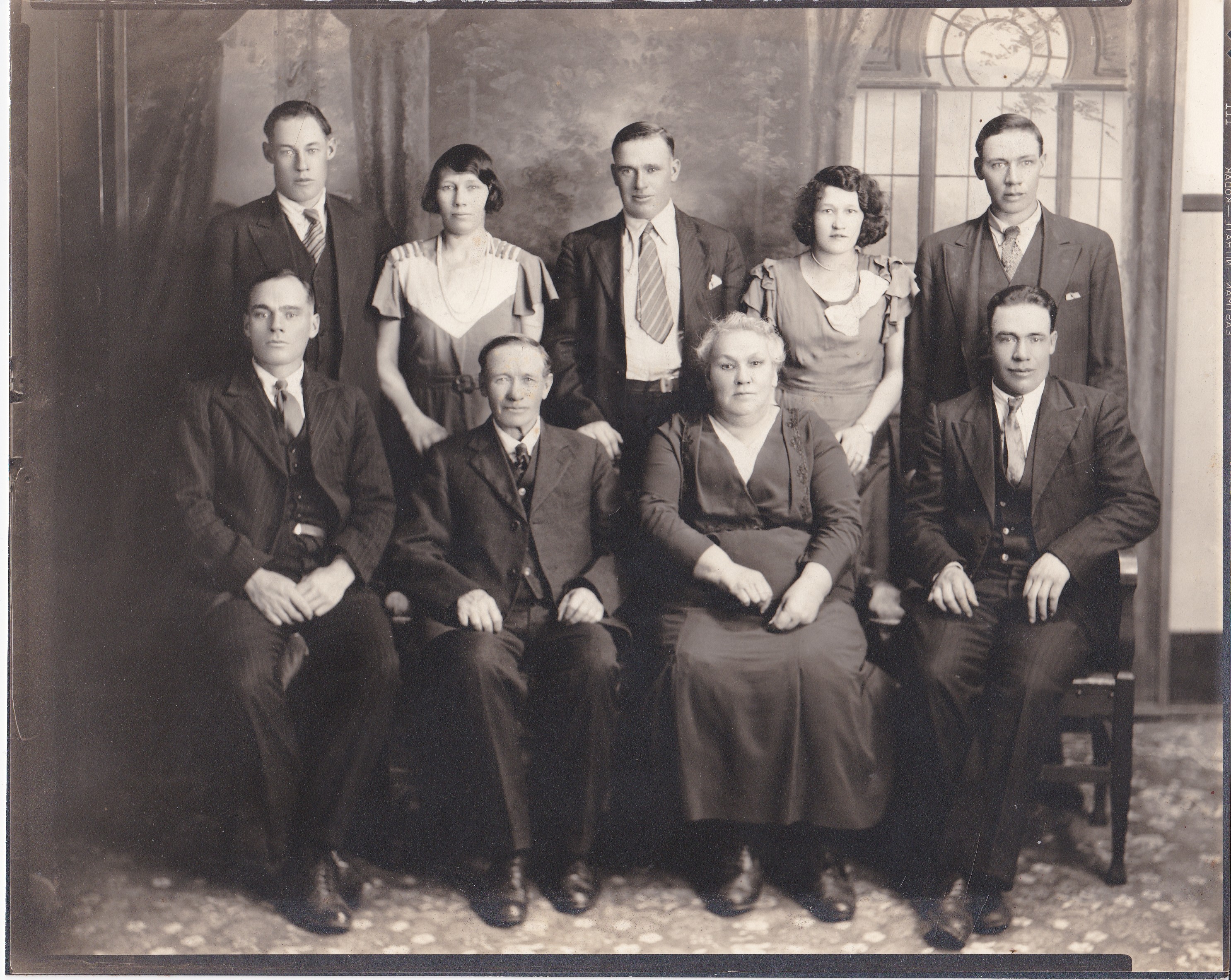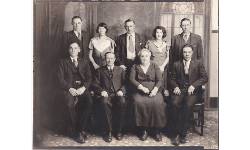 Description Leitch Family 1925 2013-6501 Back Row L-R Seymour Leitch, Uretta Leitch (Martin), Earl Leitch, Ella Leitch (Hanson), Arthur Leitch, Front Row L-r Dugald Leitch, Alexander Leitch (father), Mary Ellen Leitch (Robinson), Kenneth Leitch Alexander came to this area in the late 1880's