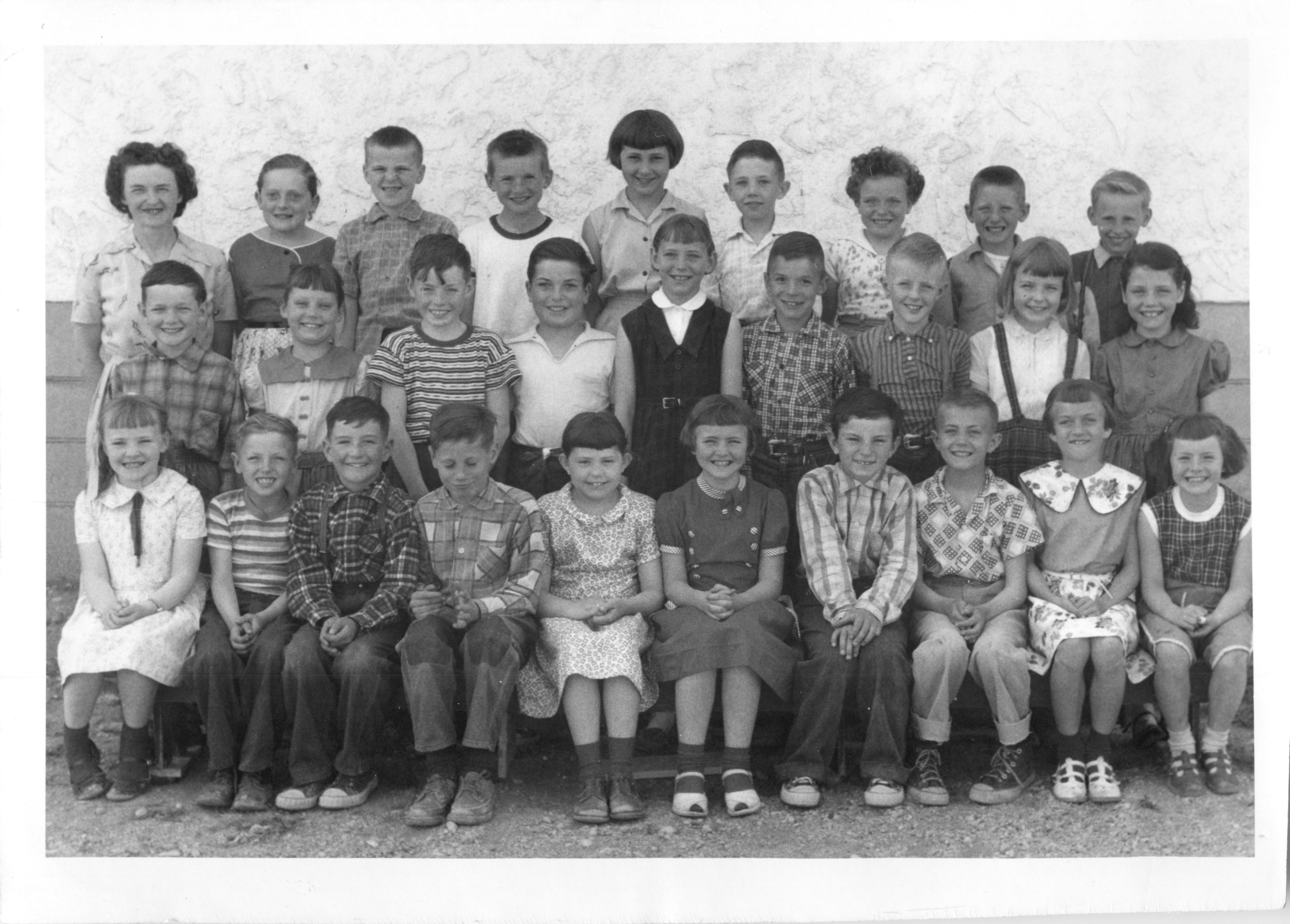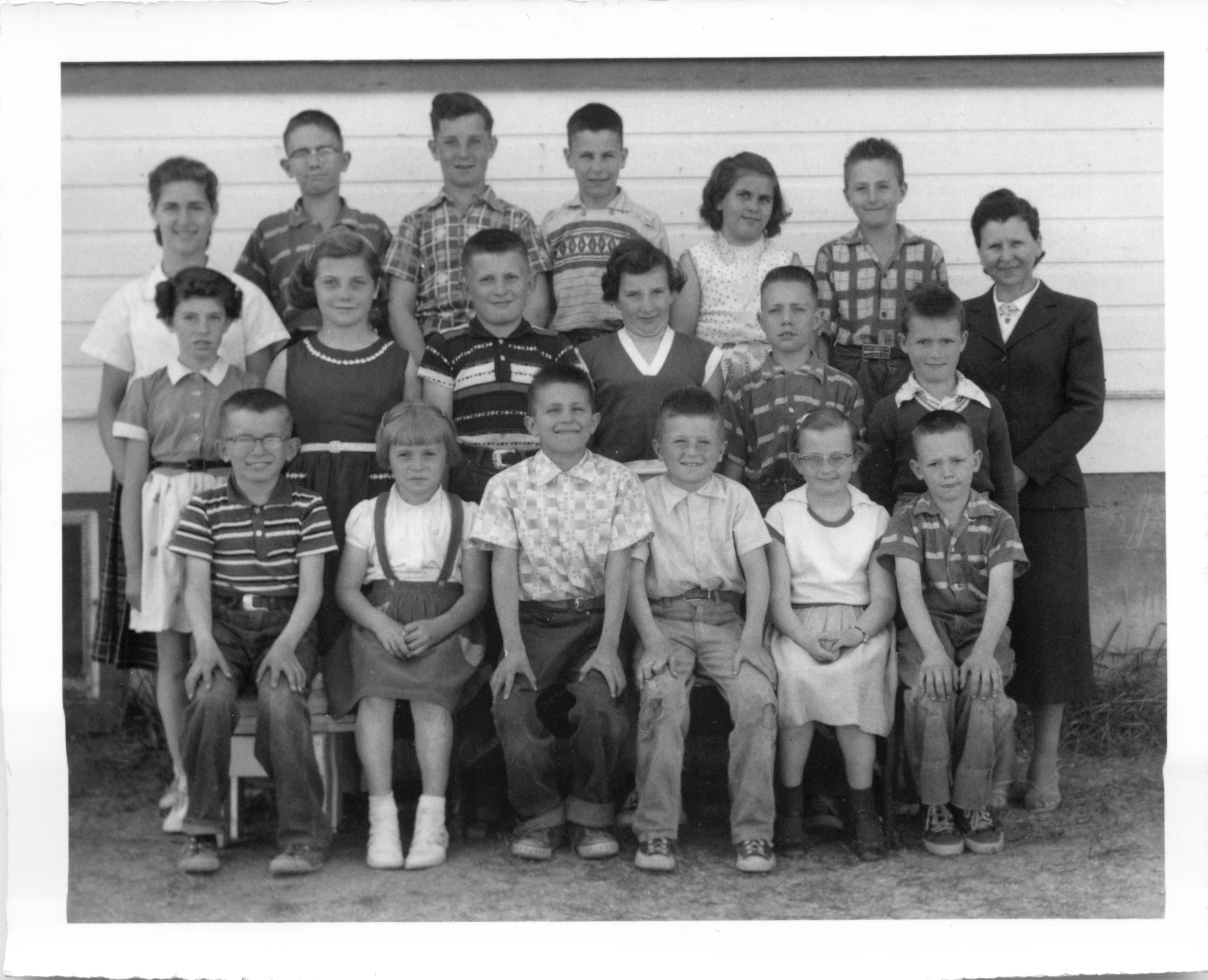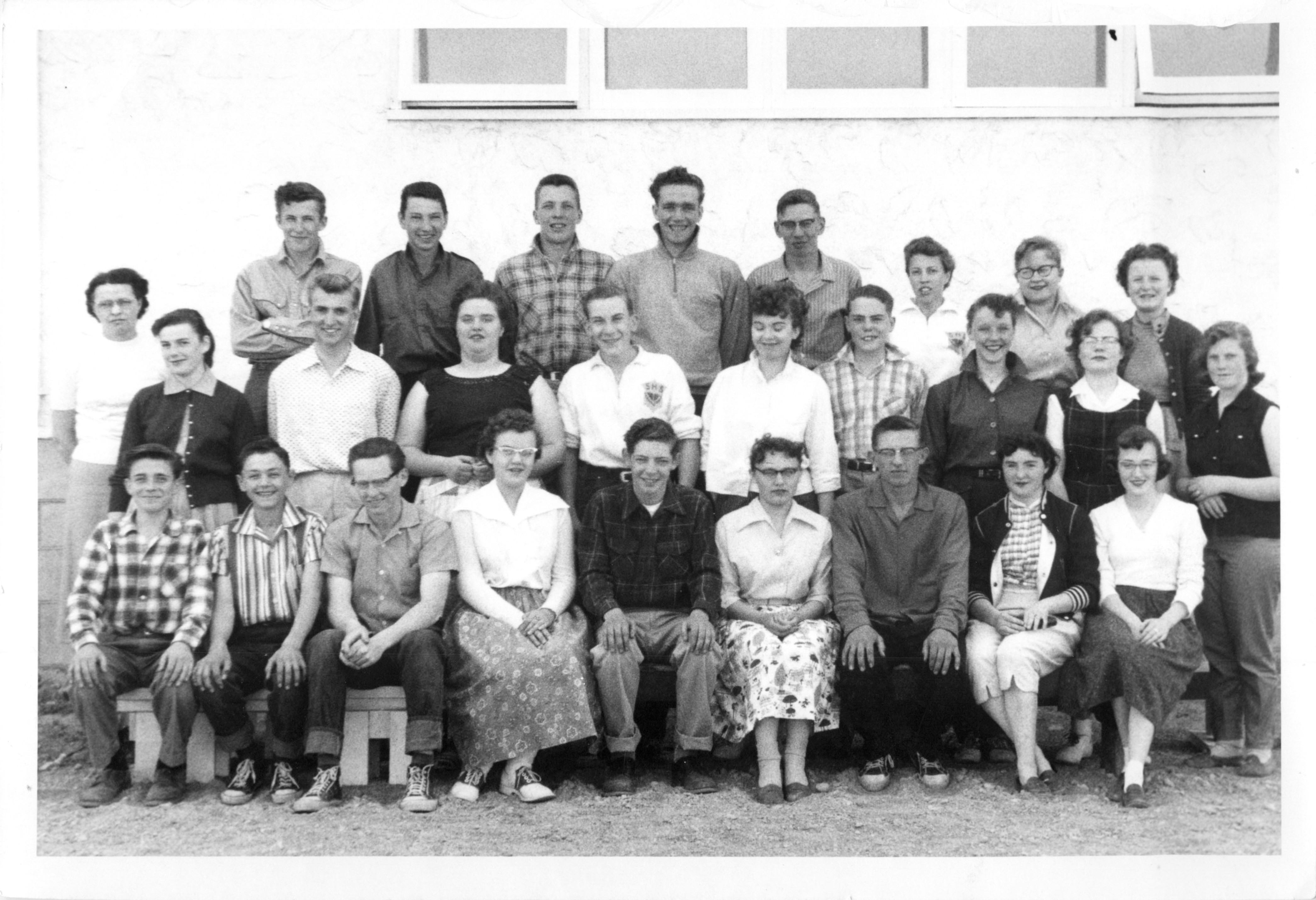 Description Front Row L-R: Ernie Molgat, Evie Kuz, Bill Hillman, Verna Morcom, Jim Wilson, Marie Sydor, Marlene McBain, Sharon Wilson Middle Row L-R: Gilda Nicholson (teacher), Fern Wilson, Jim Gill, Shirley Pirie, Eugene Pirie, Gloria Snowdon, Jack Munson, Joy Leitch, Catherine Robertson, Carol Glenn, Back Row L-R: Jim Henry, Alan Warniski, Delmer Jack, Arnold Pirie, Murray Mervyn, Annabelle Jack, Marie Laboy, Beatrice Rognan