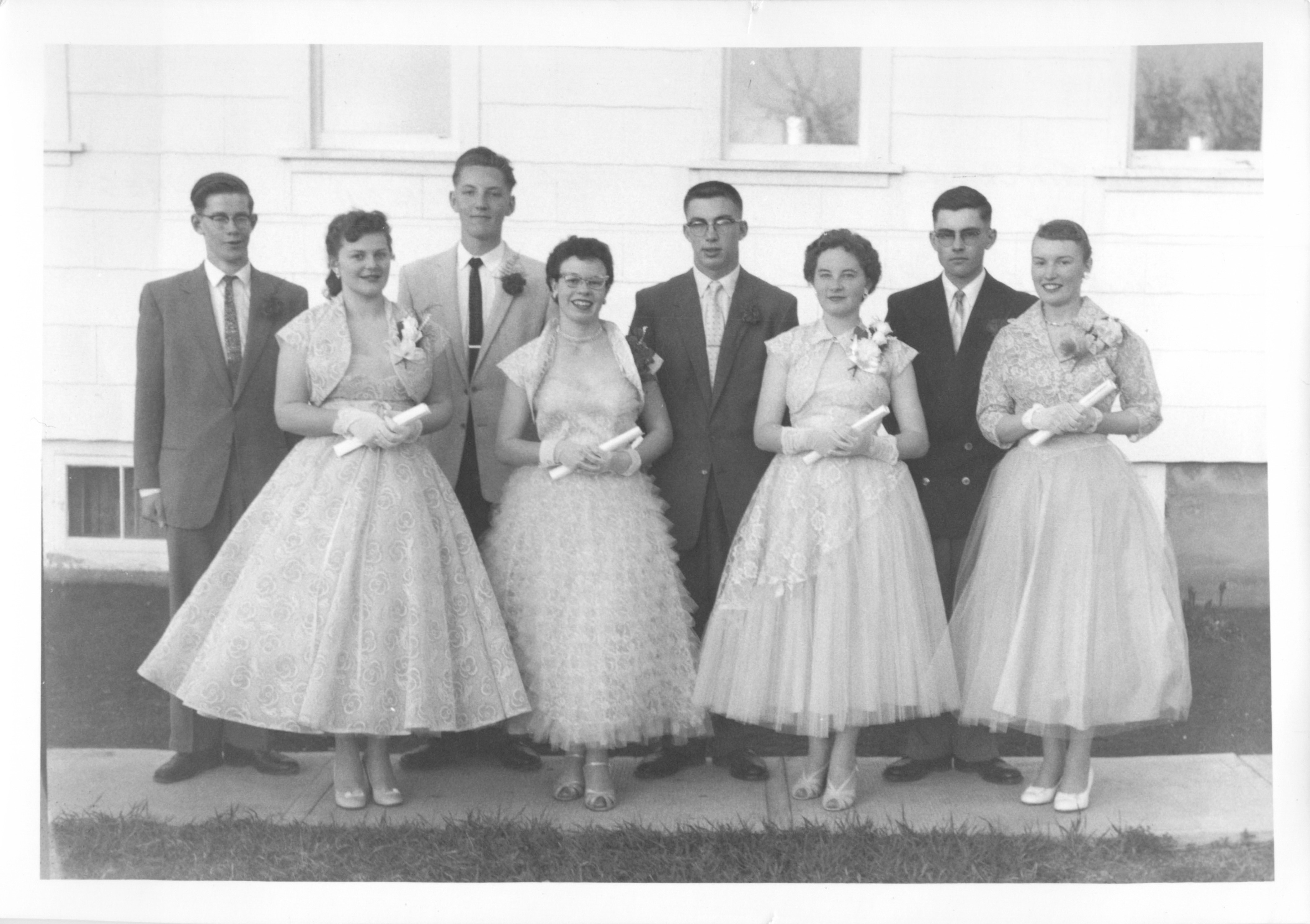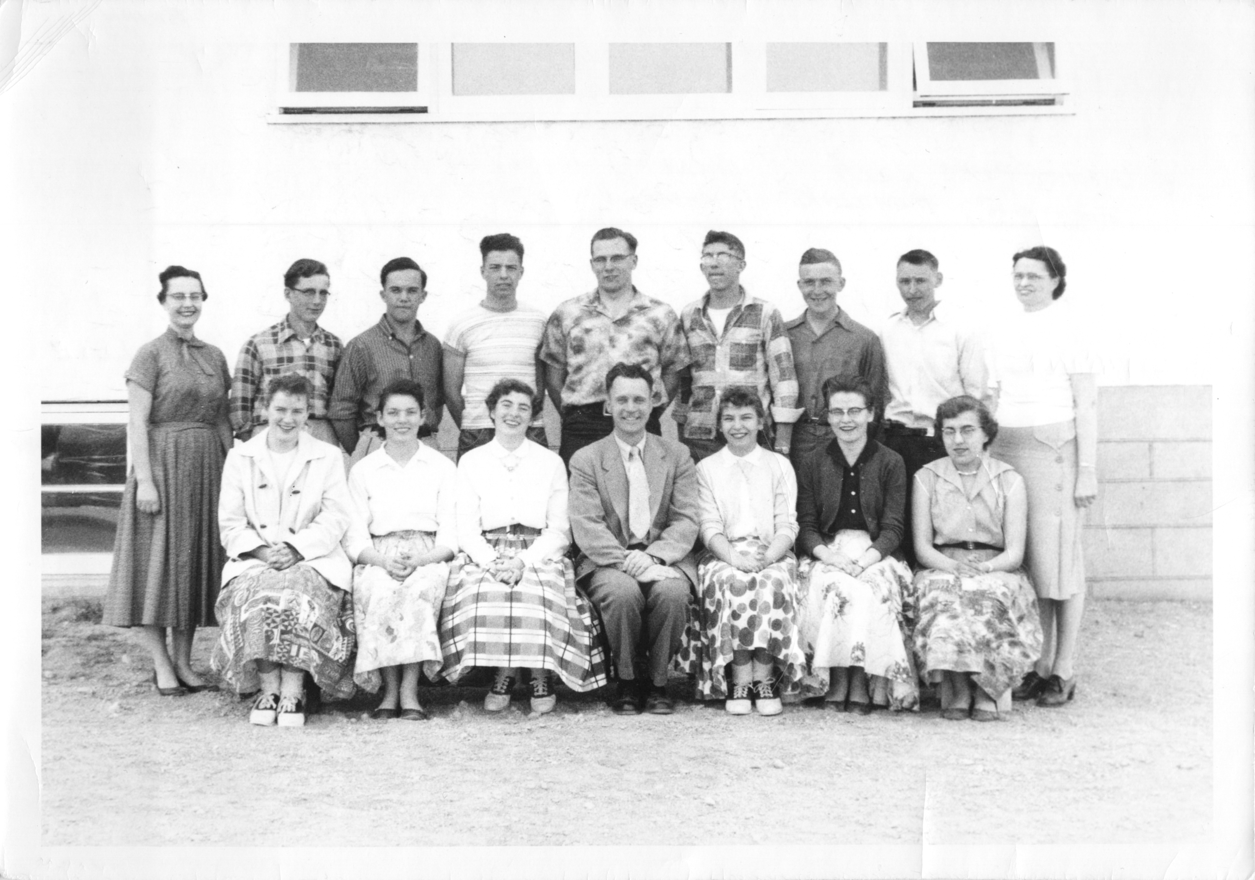 Description Front Row L-R: Etta Wright, Shirley Hay, Betty Lillie, Elstan Morris (Principal), Sandy Austin, Shirley Holmes, Olga Halchyshak Back Row L-R: Elinor Waddell (teacher), Wally Dunits, Vern Westaway, Doug Fulford, Tony Chasko, Bobby Kerr, Brian Glenn, Nick Manulak, Gilda Nicholson