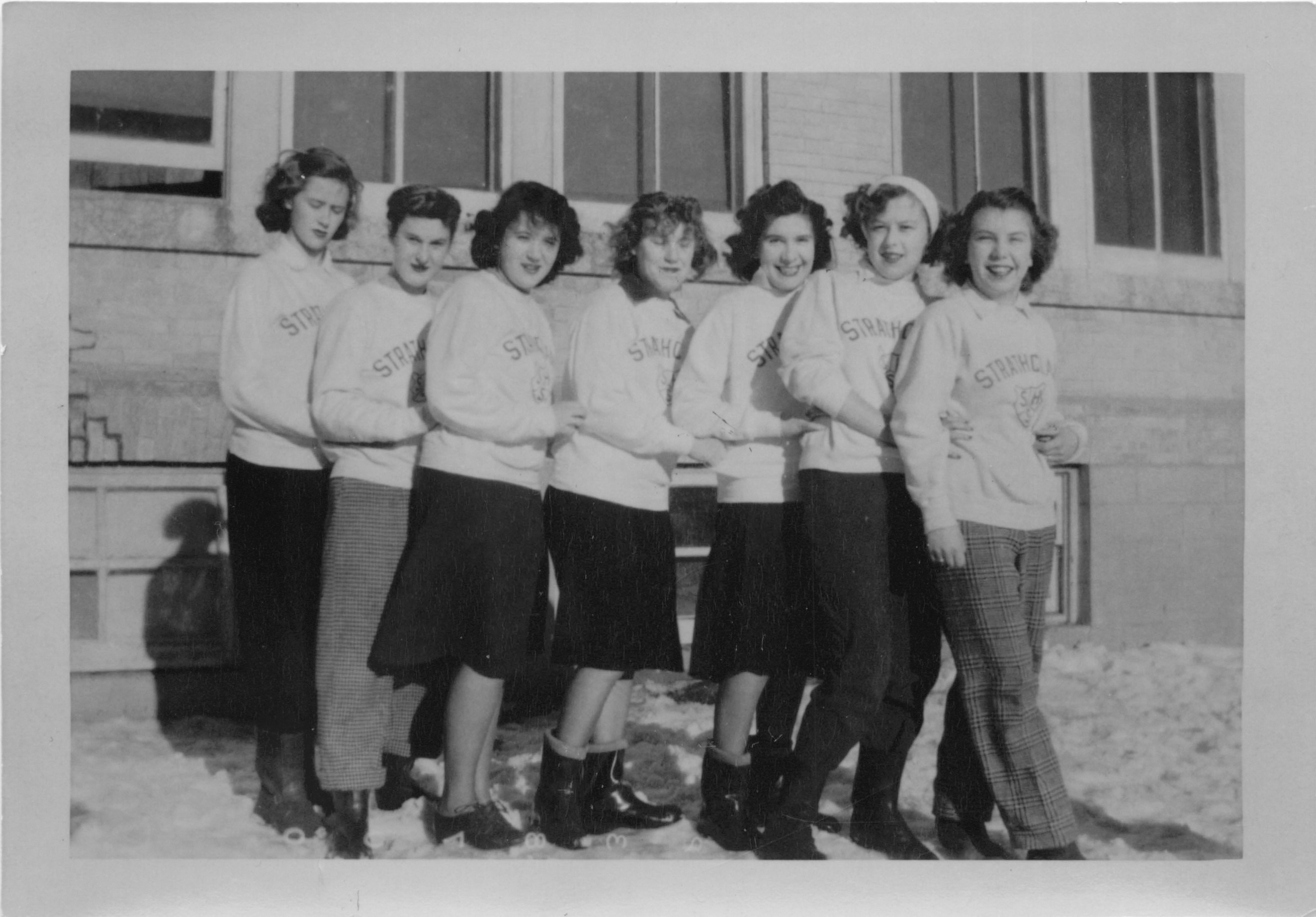Description L-R: Marg Sinclair, unknown, Betty Sommers, unknown, Phyllis Lipinski, Jean Brodie, Sandy Austin