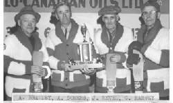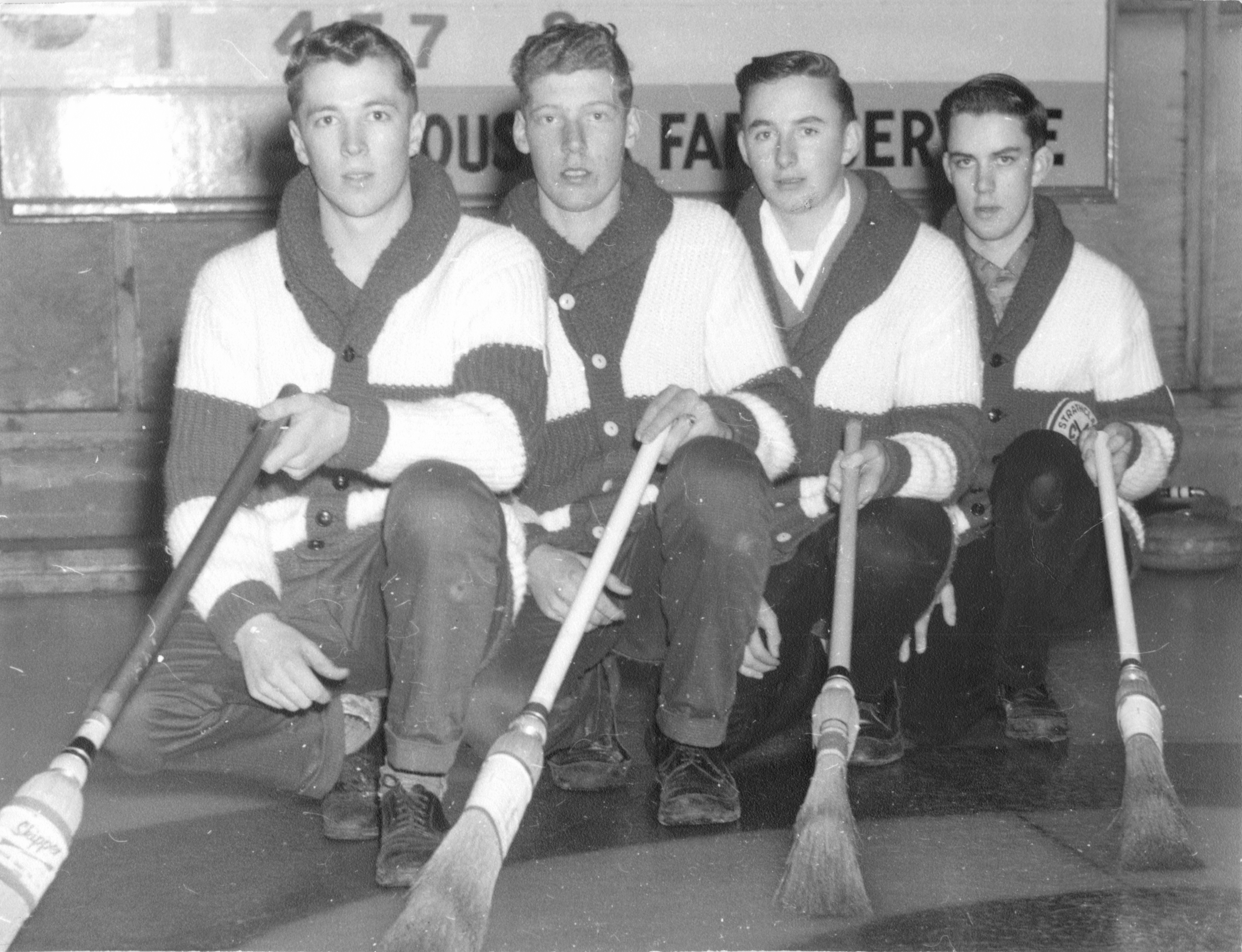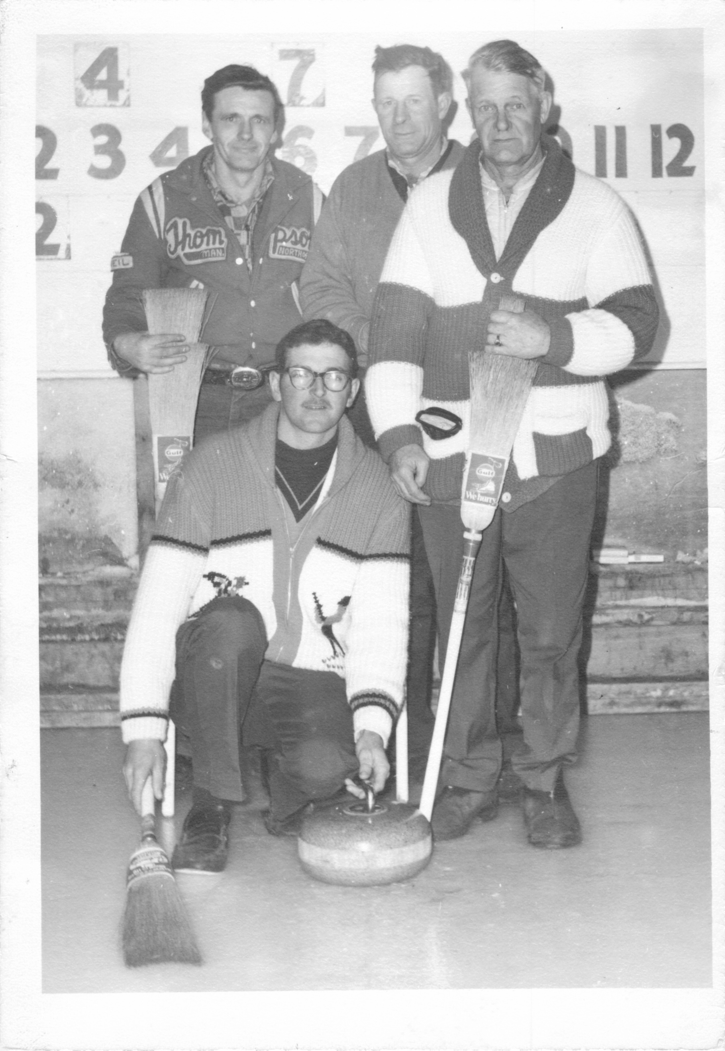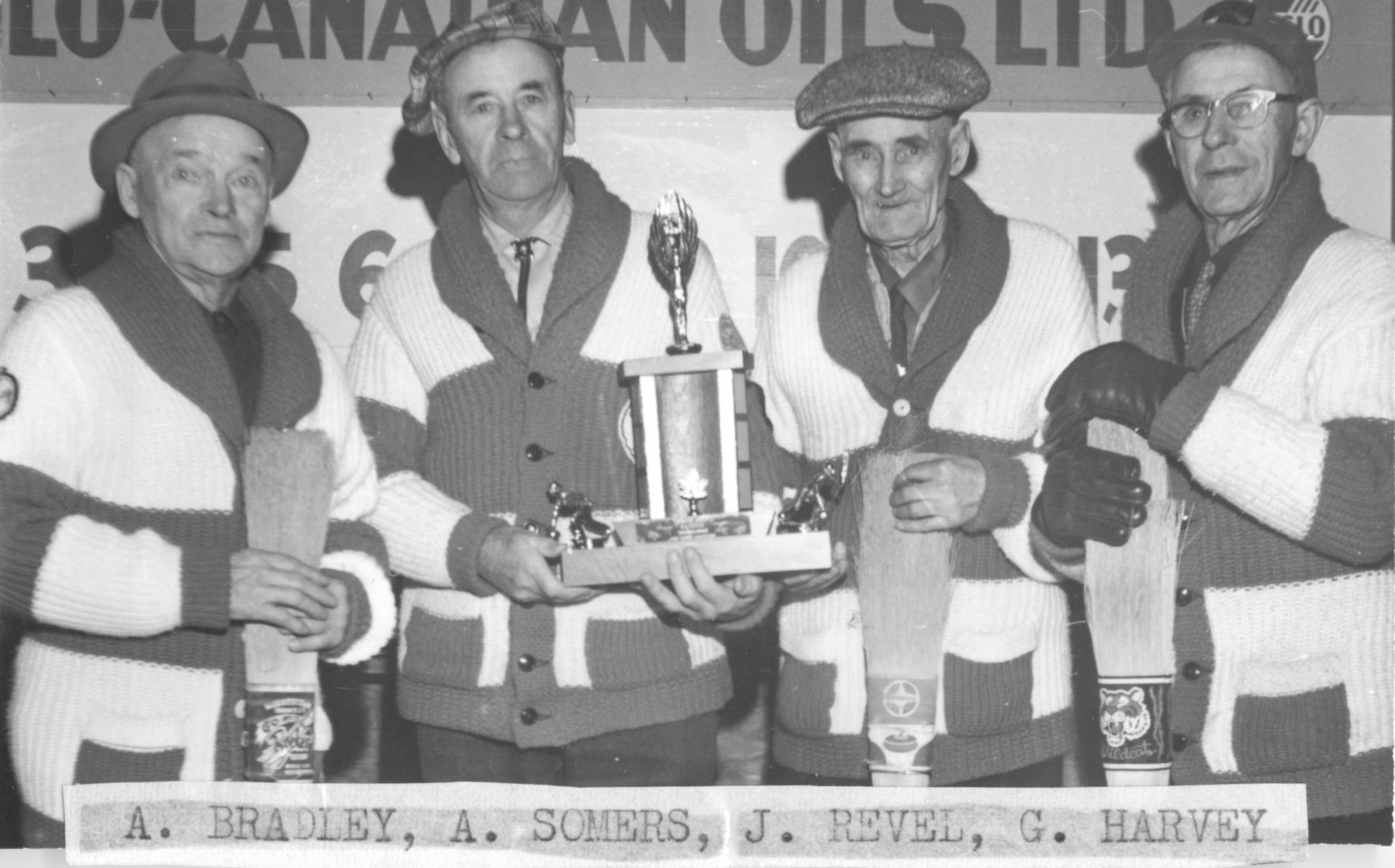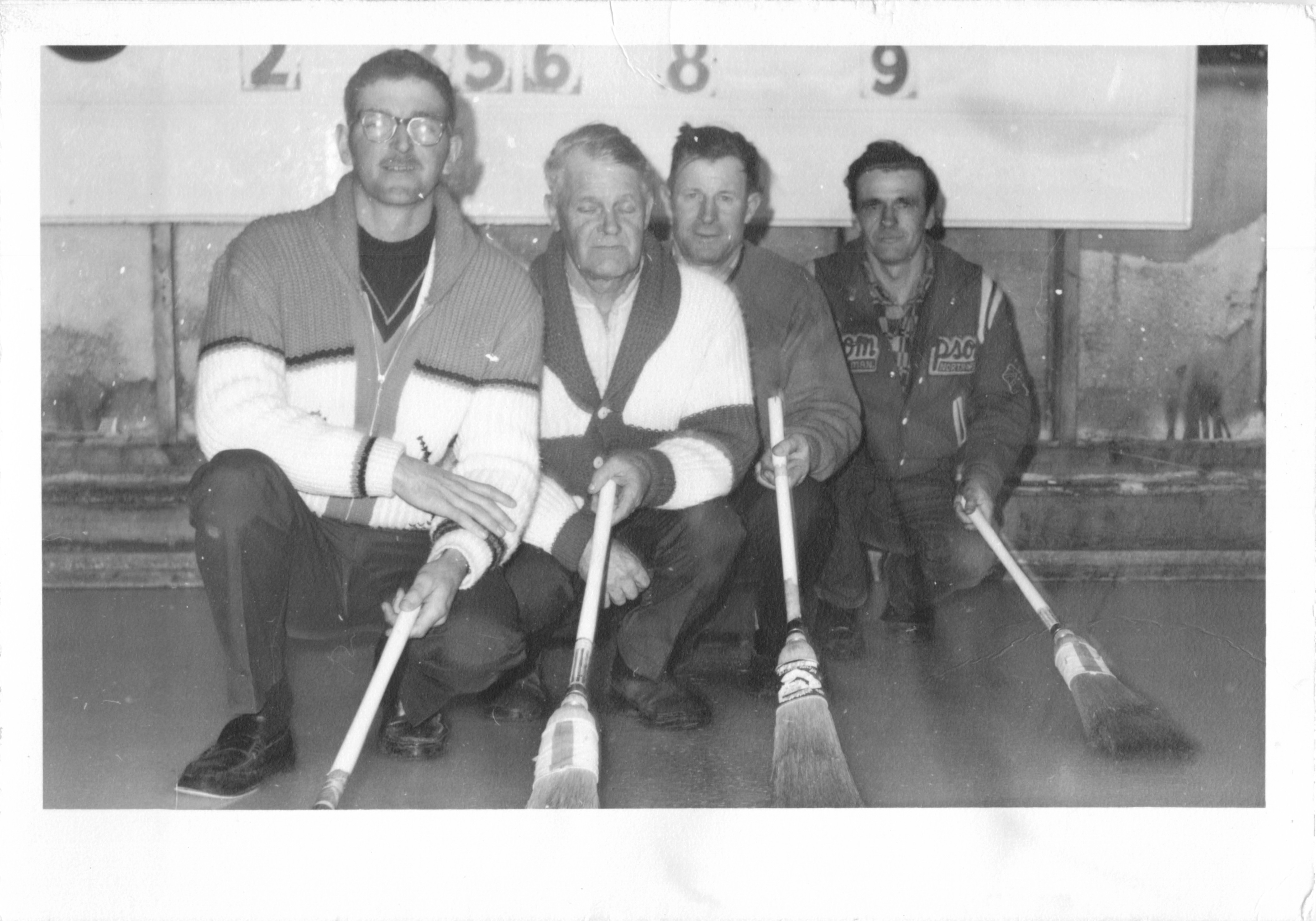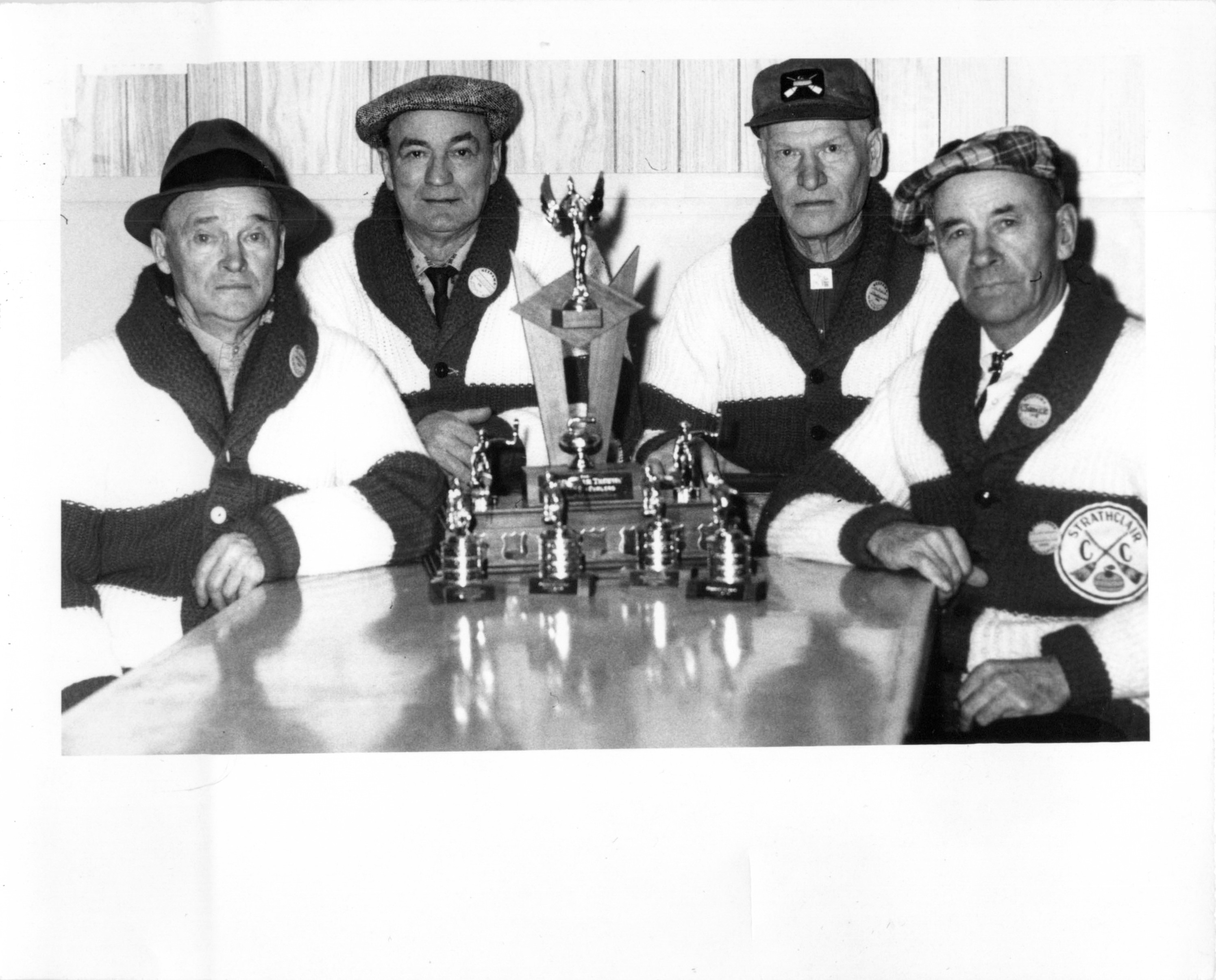 Description Strathclair Bonspiel 1959 L-R: Austin Bradley, Jim Revell, Alf Somers, George Harvey