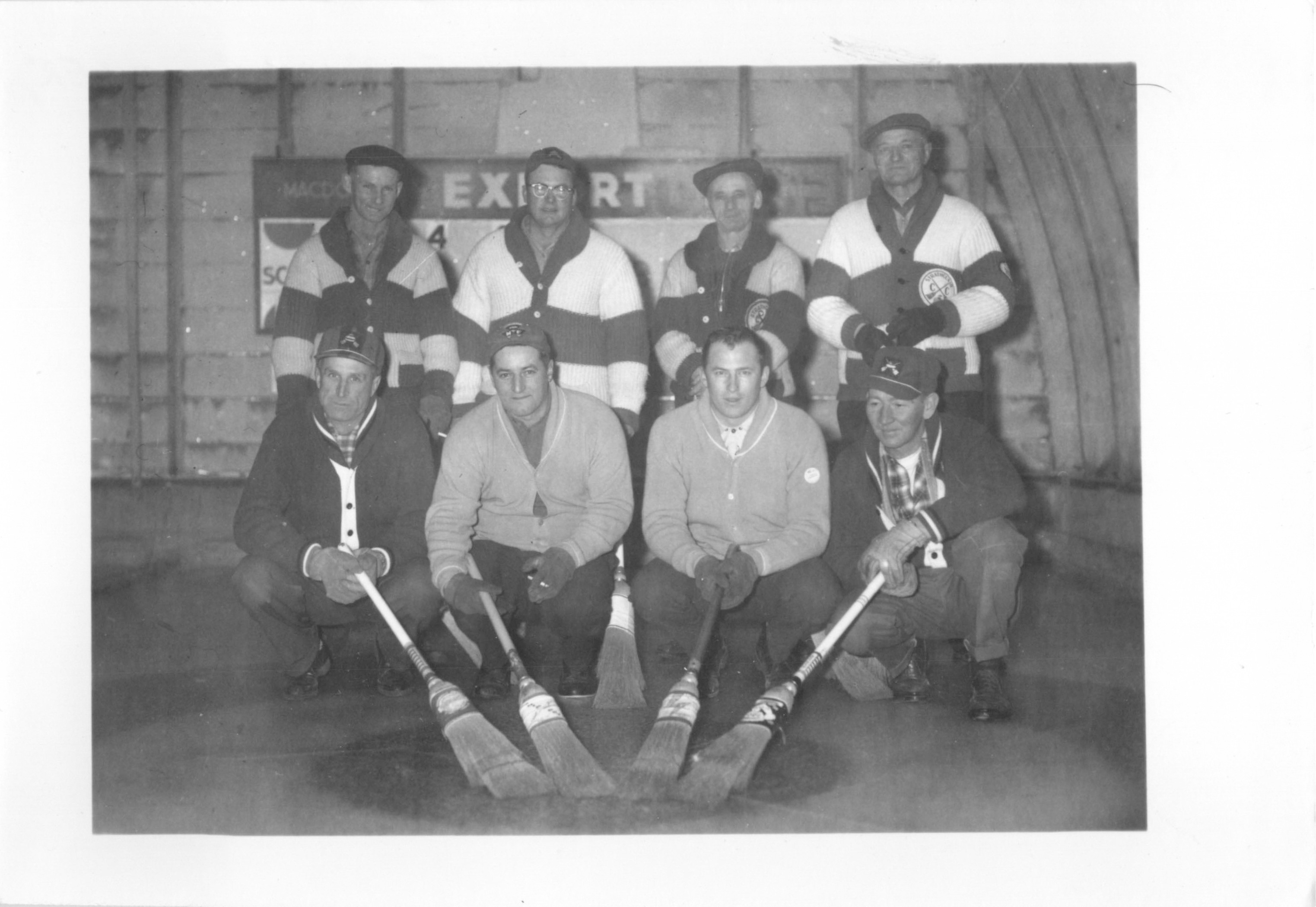 Description Strathclair Bonspiel 1959 Back Row L-R: Amos Cochrane, Jack Geekie, Mert Switzer, Mike Brodie Front Row L-R: Wilf Lee, Doug Cochrane, Jim Henry, Ed Gerrard