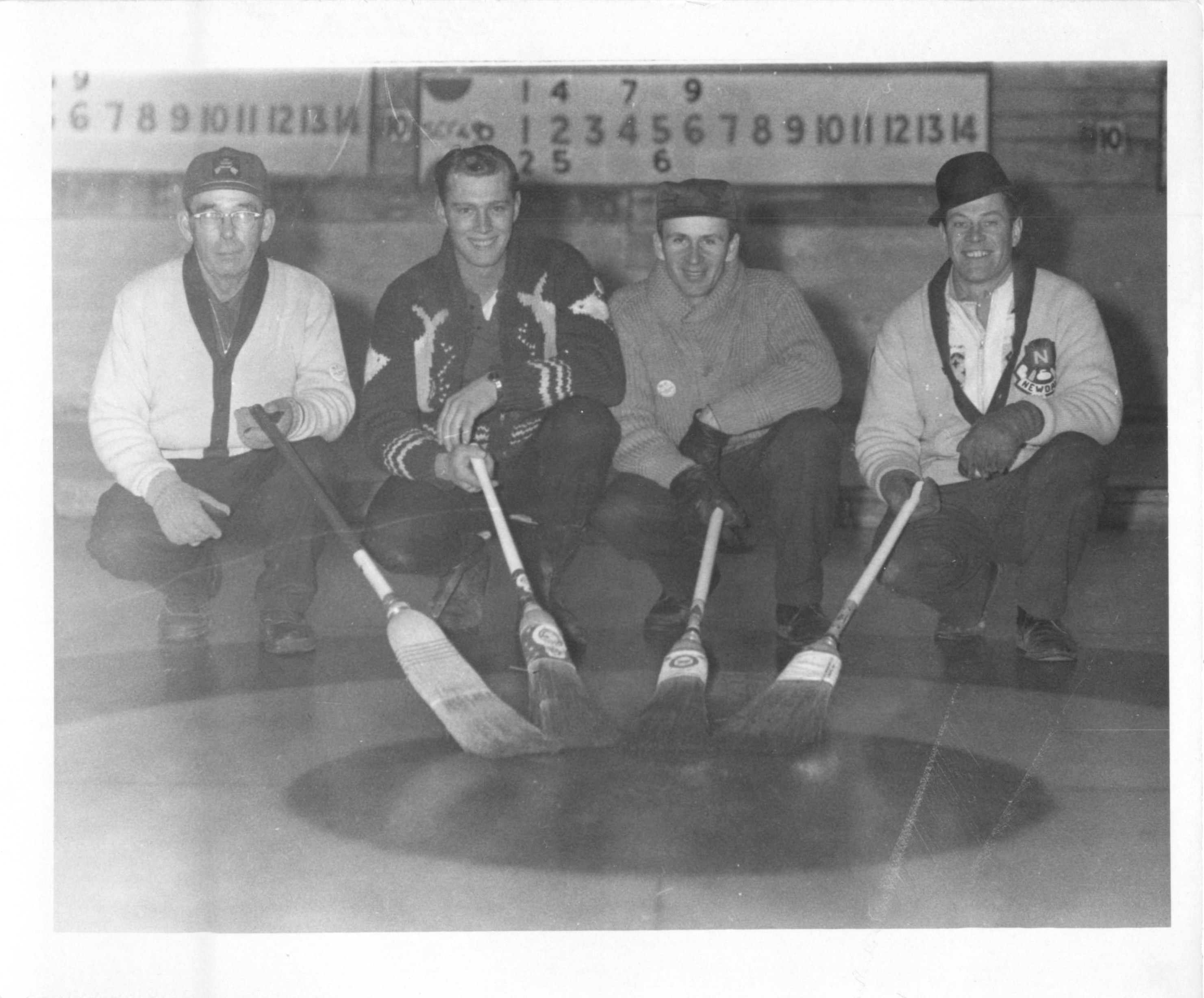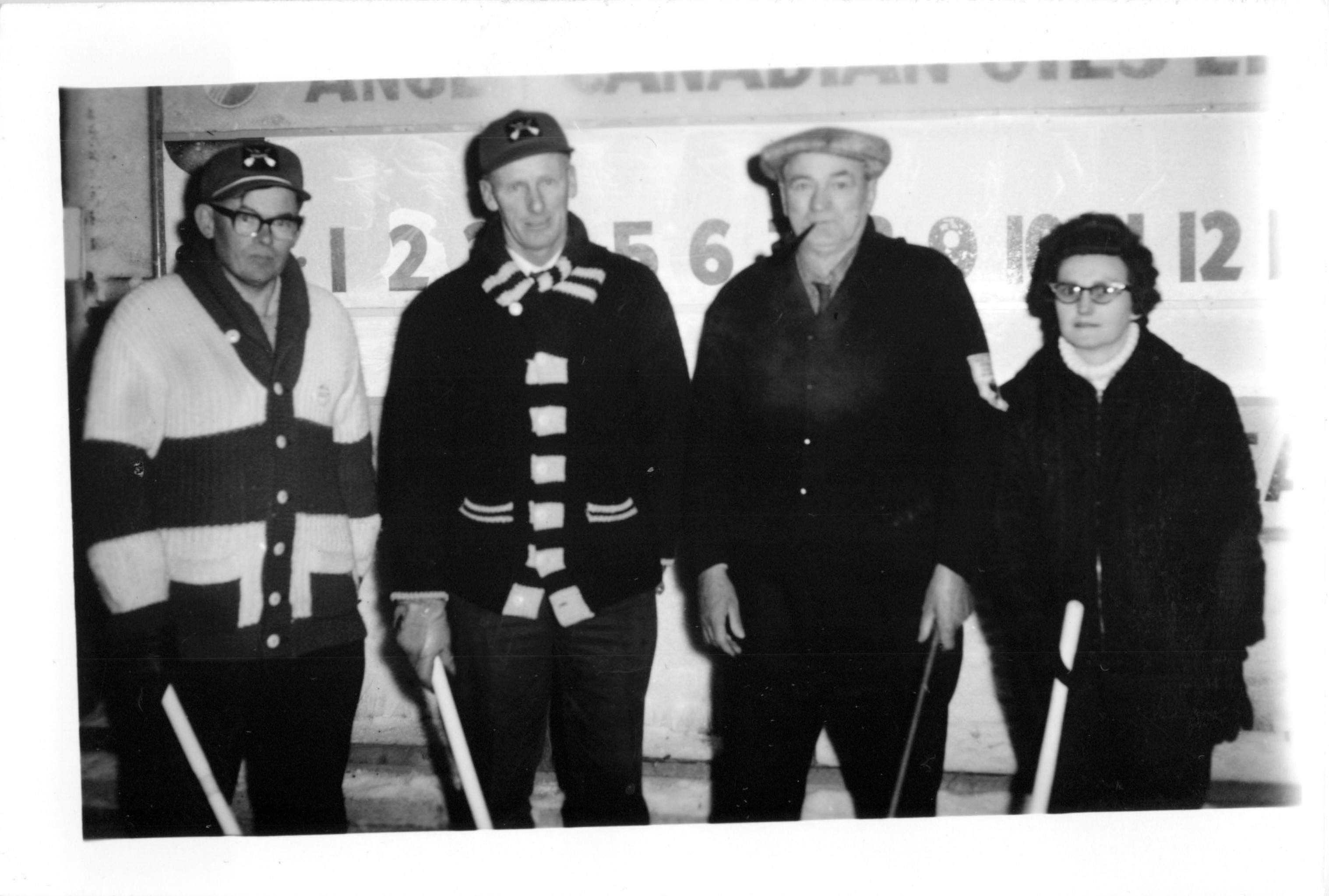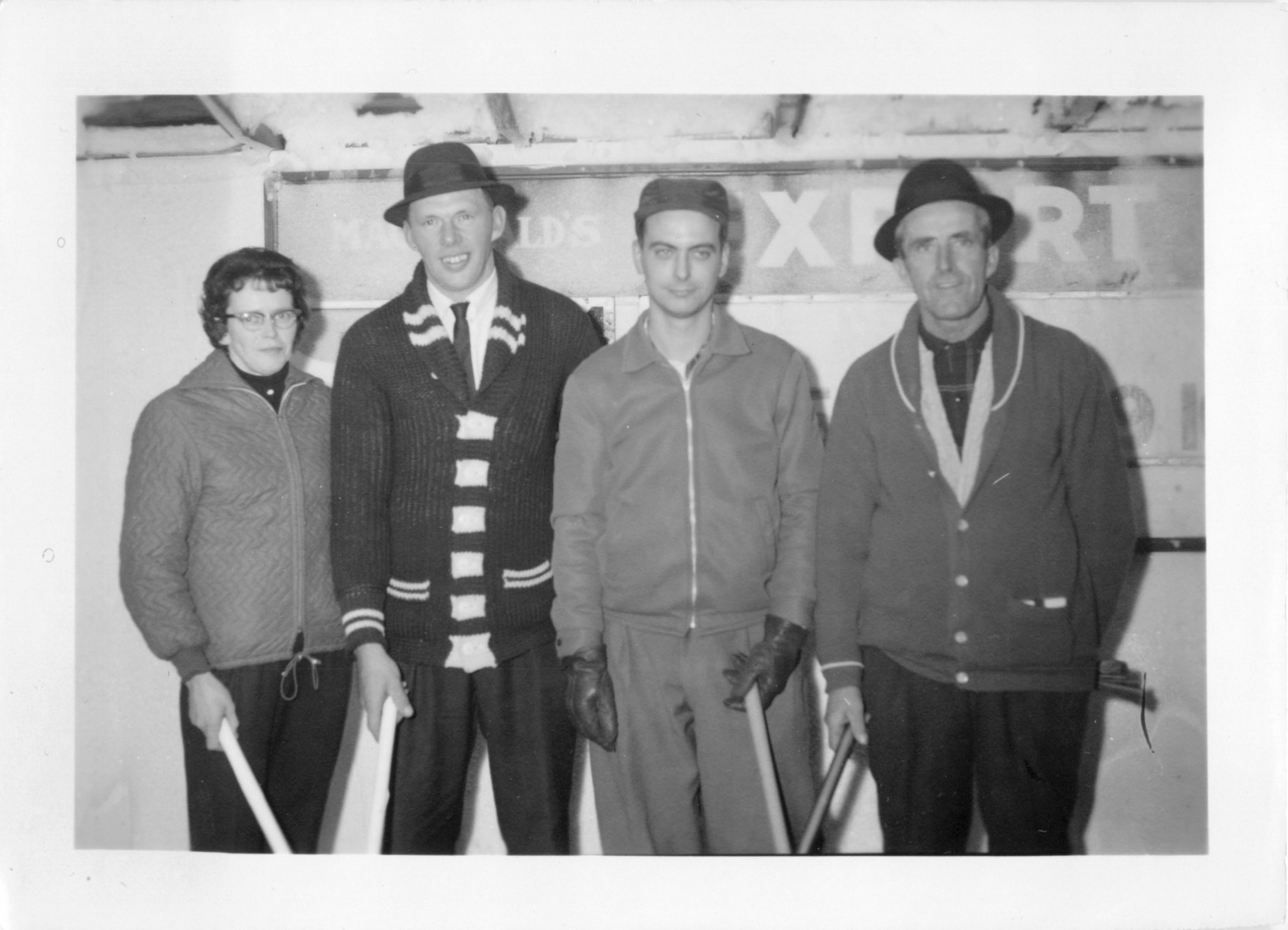 Description Strathclair Bonspiel 1959 L-R: Austin Bradley, Alf Somers, Jim Revell, George Harvey