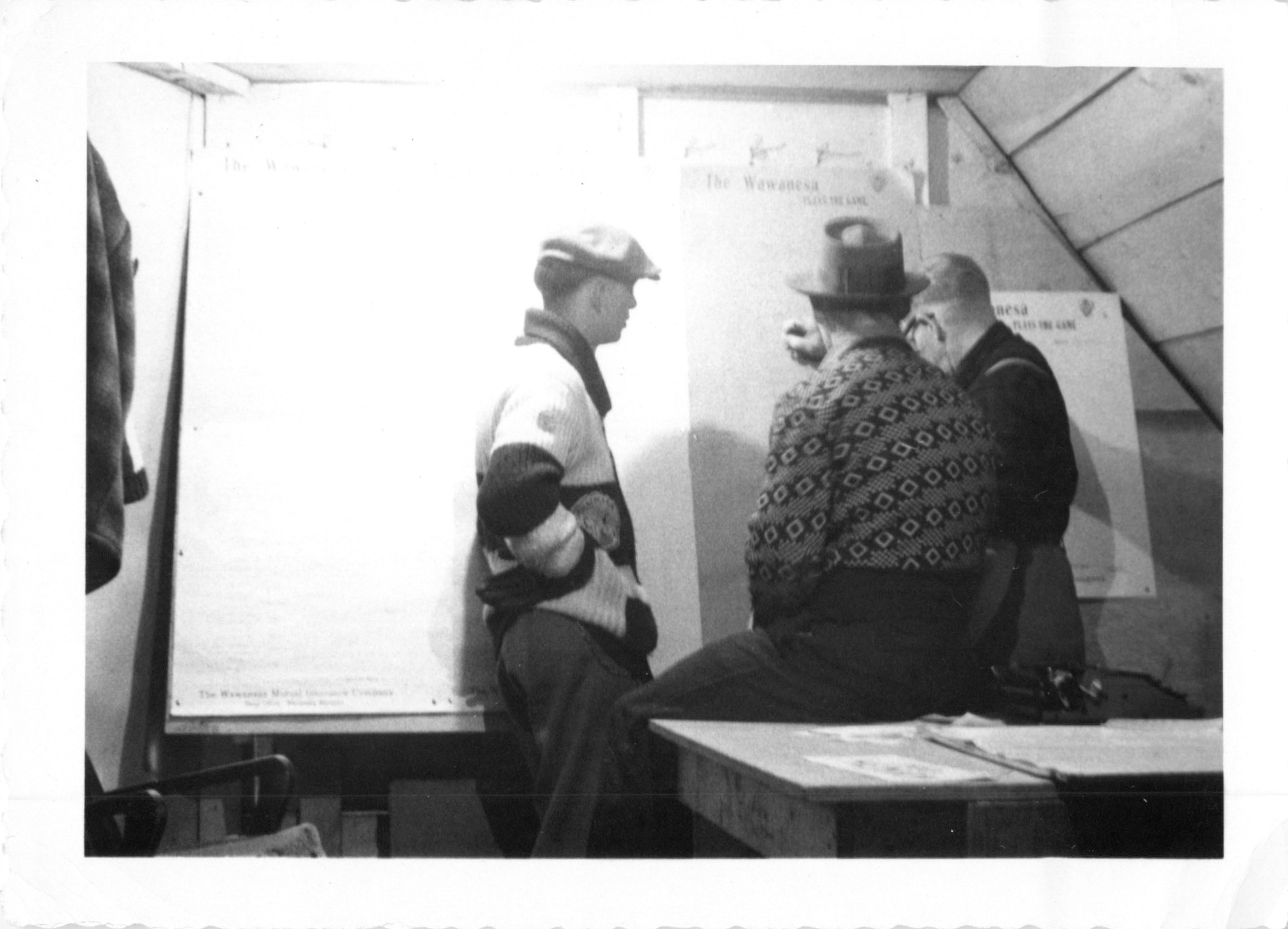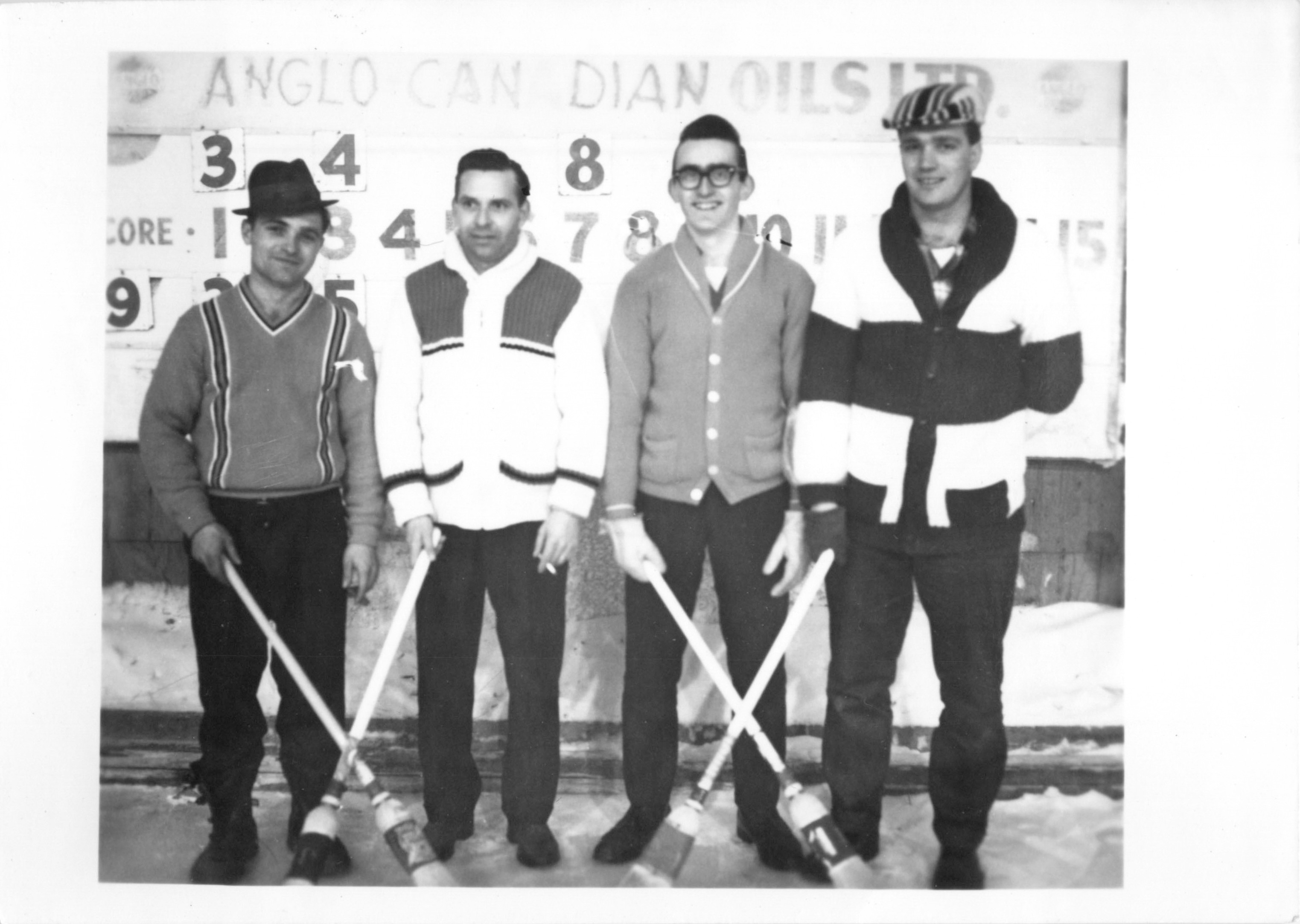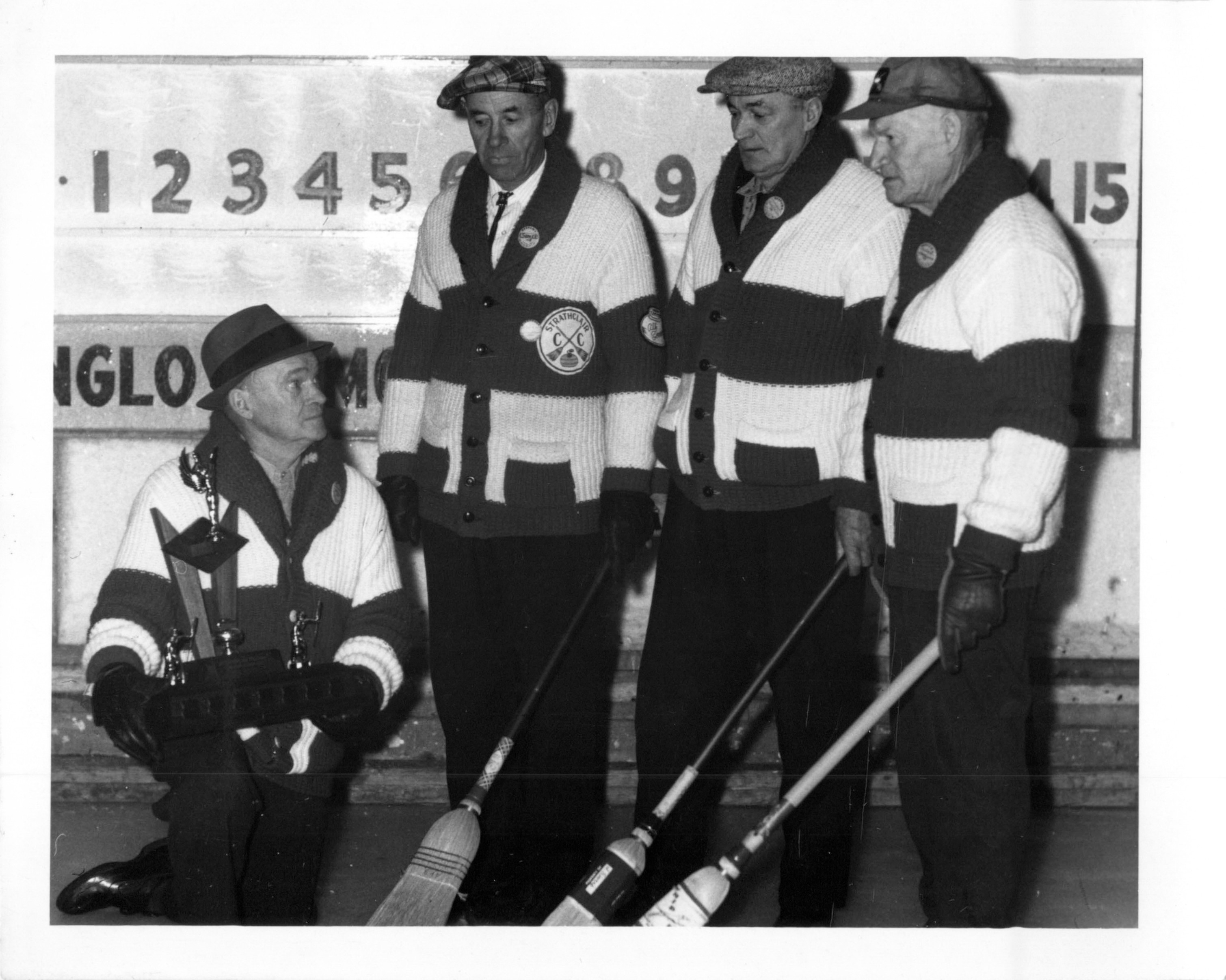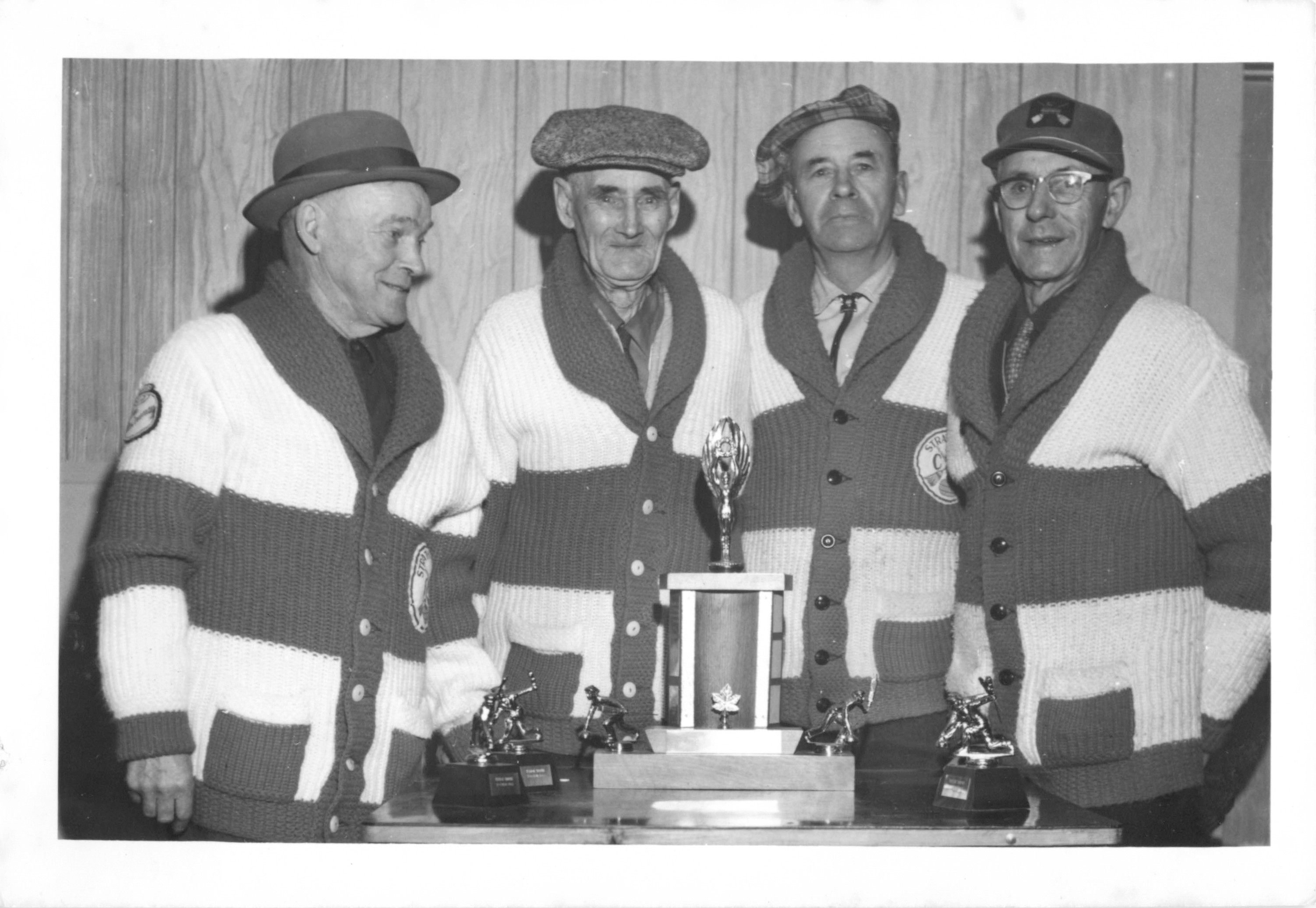 Description Strathclair Bonspiel 1959 L-R: Austin Bradley, Alf Somers, Jim Revell, George Harvey