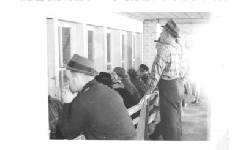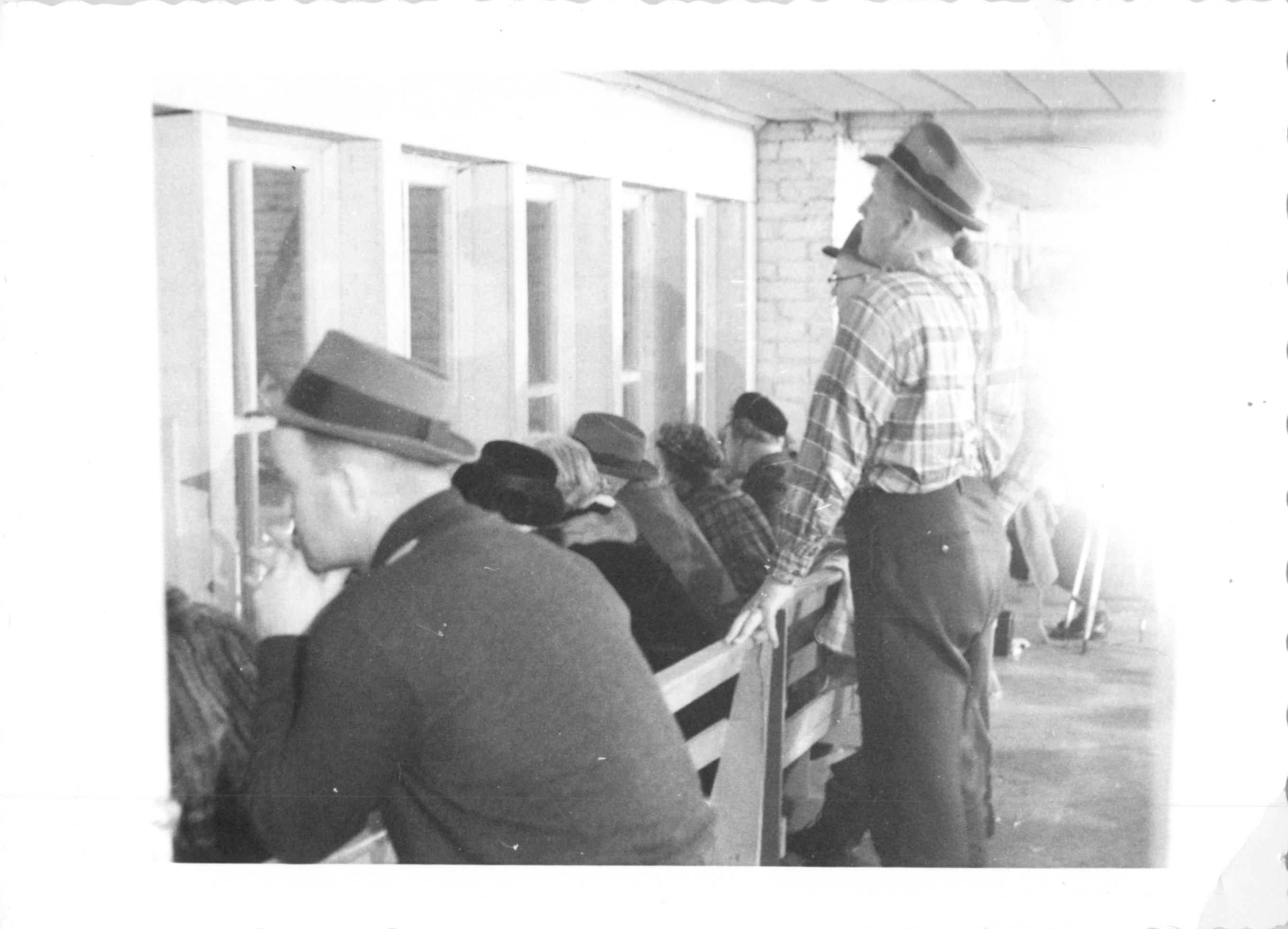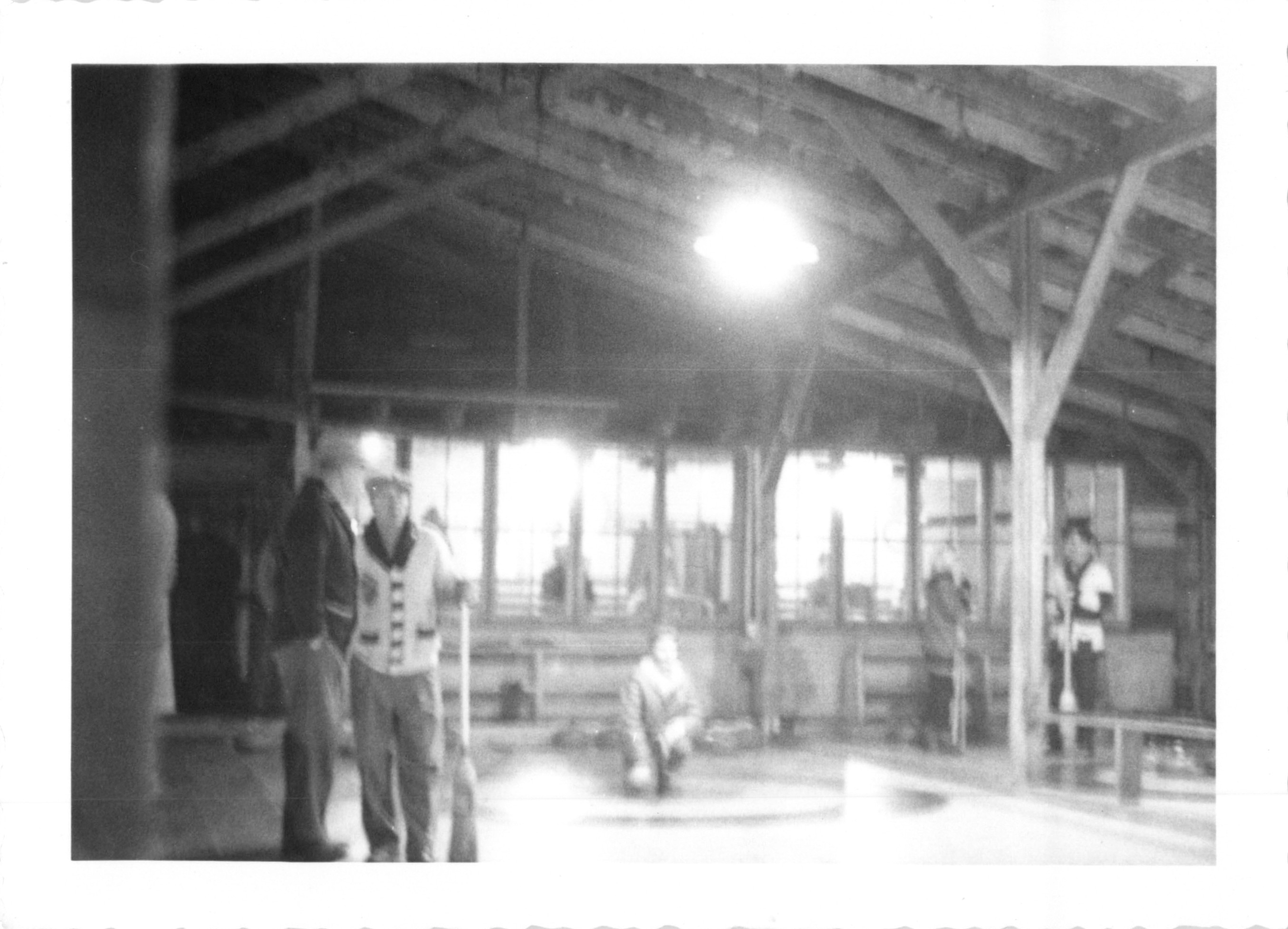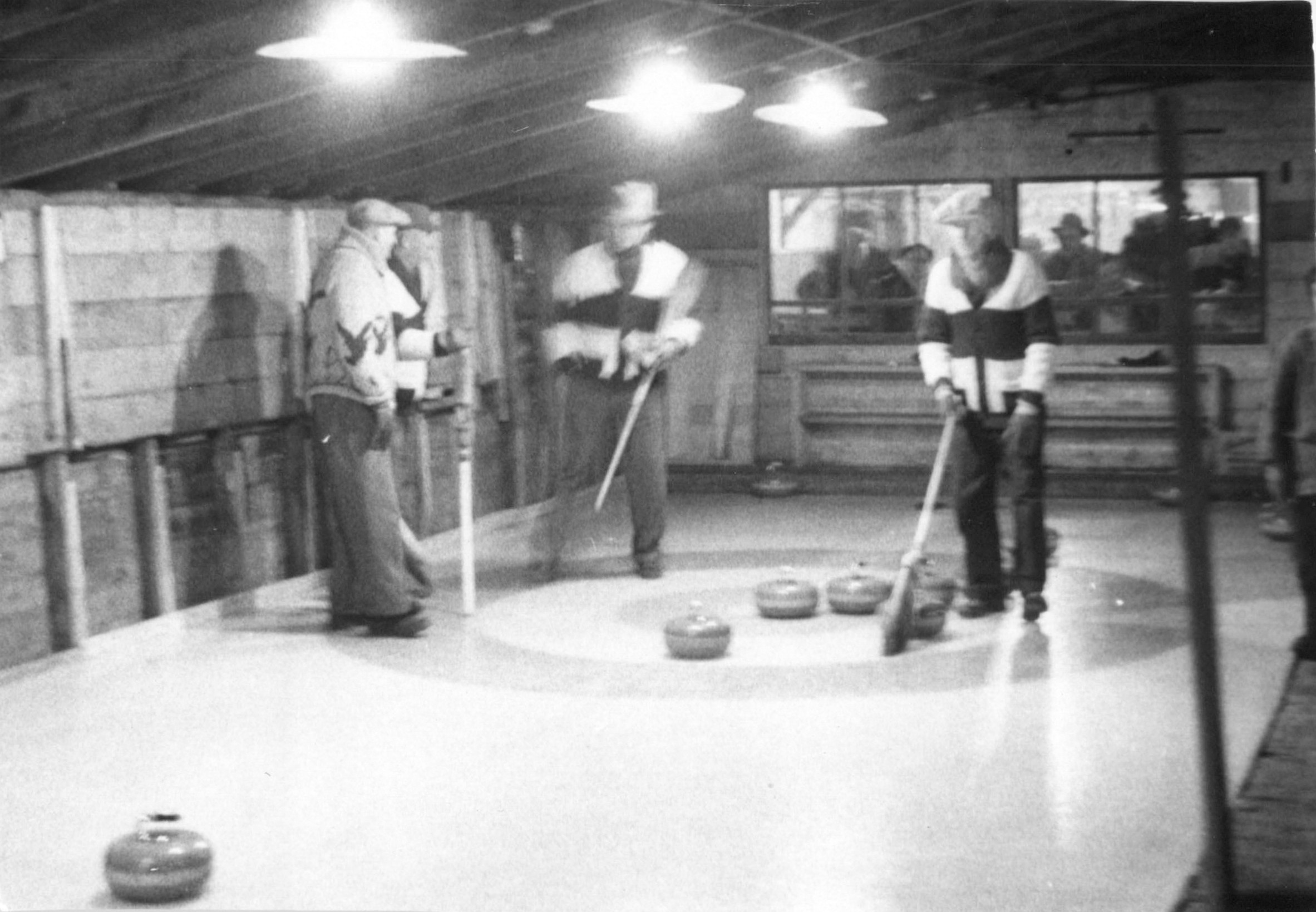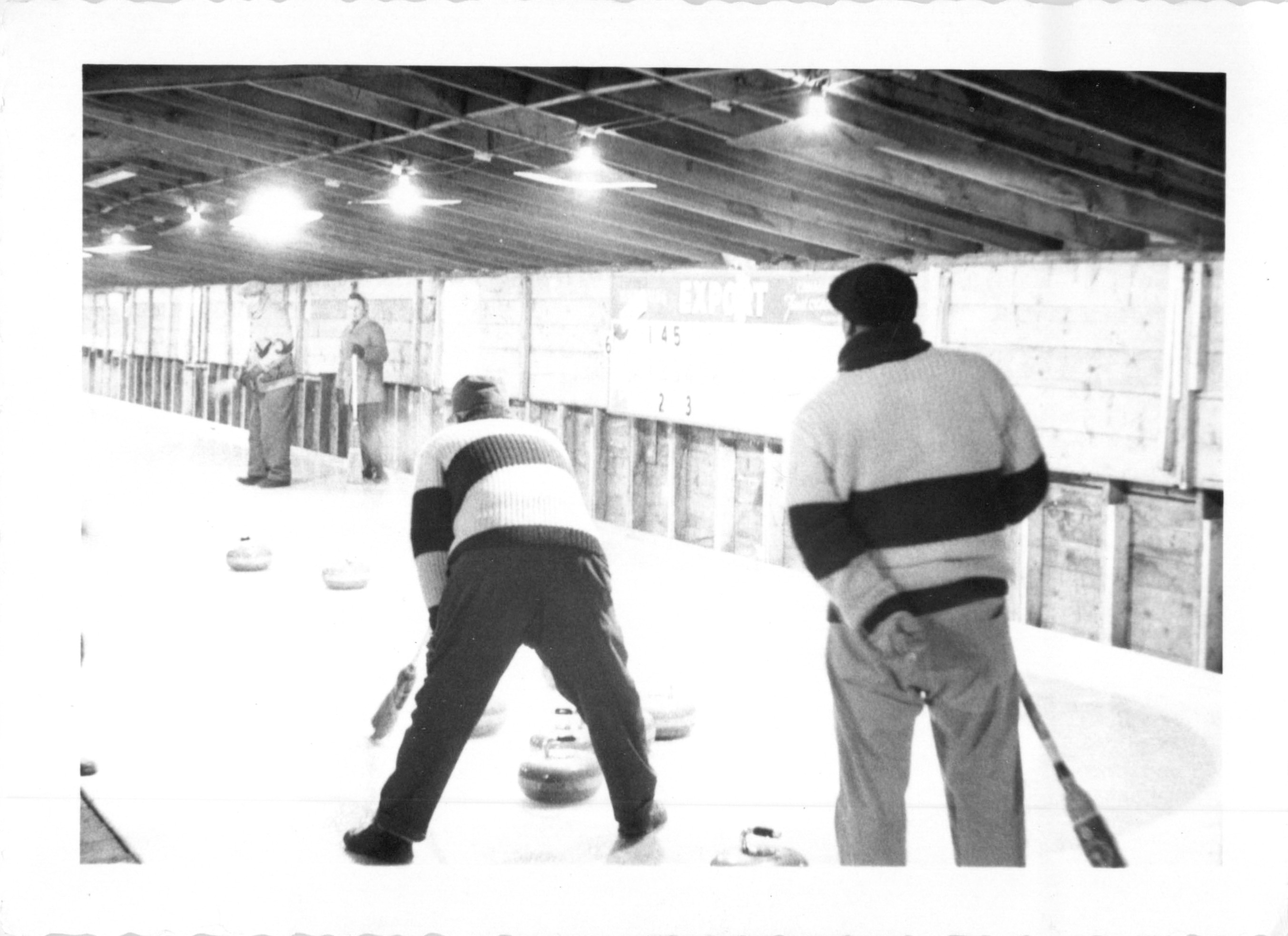 Description Strathclair Bonspiel 1959 Wilf Lee, Jean Jack, Horace Gill, Margaret Church in the foreground.