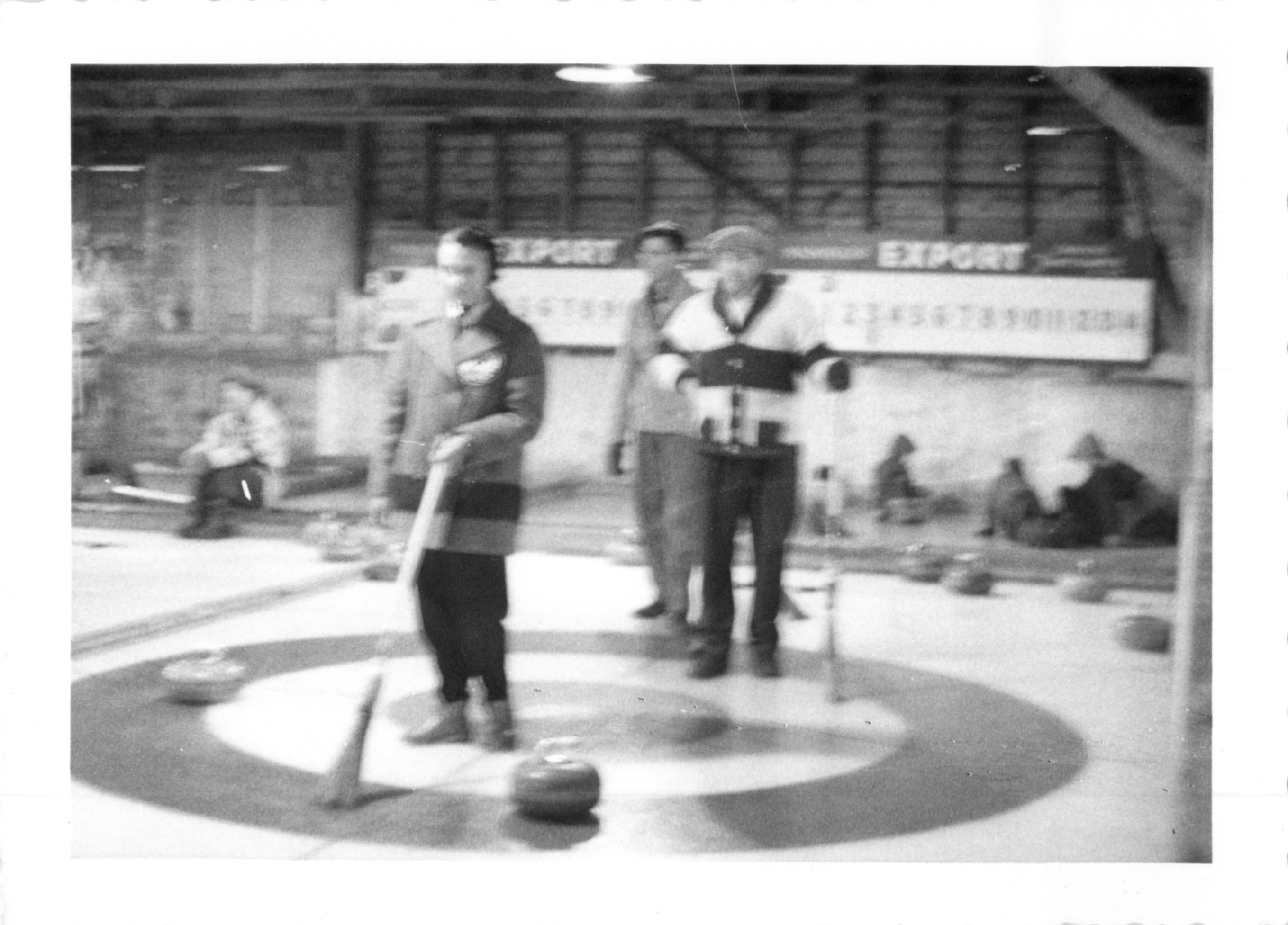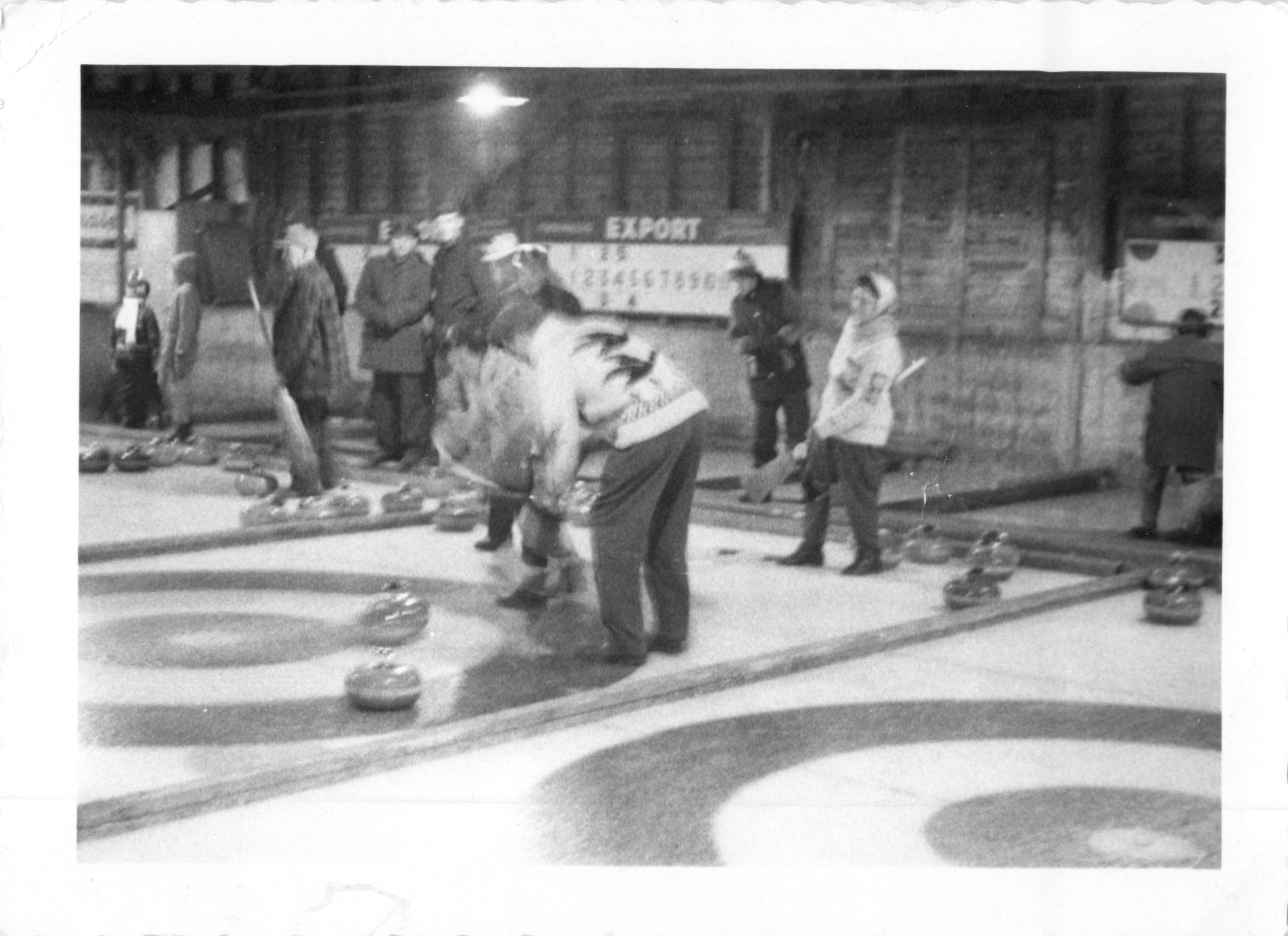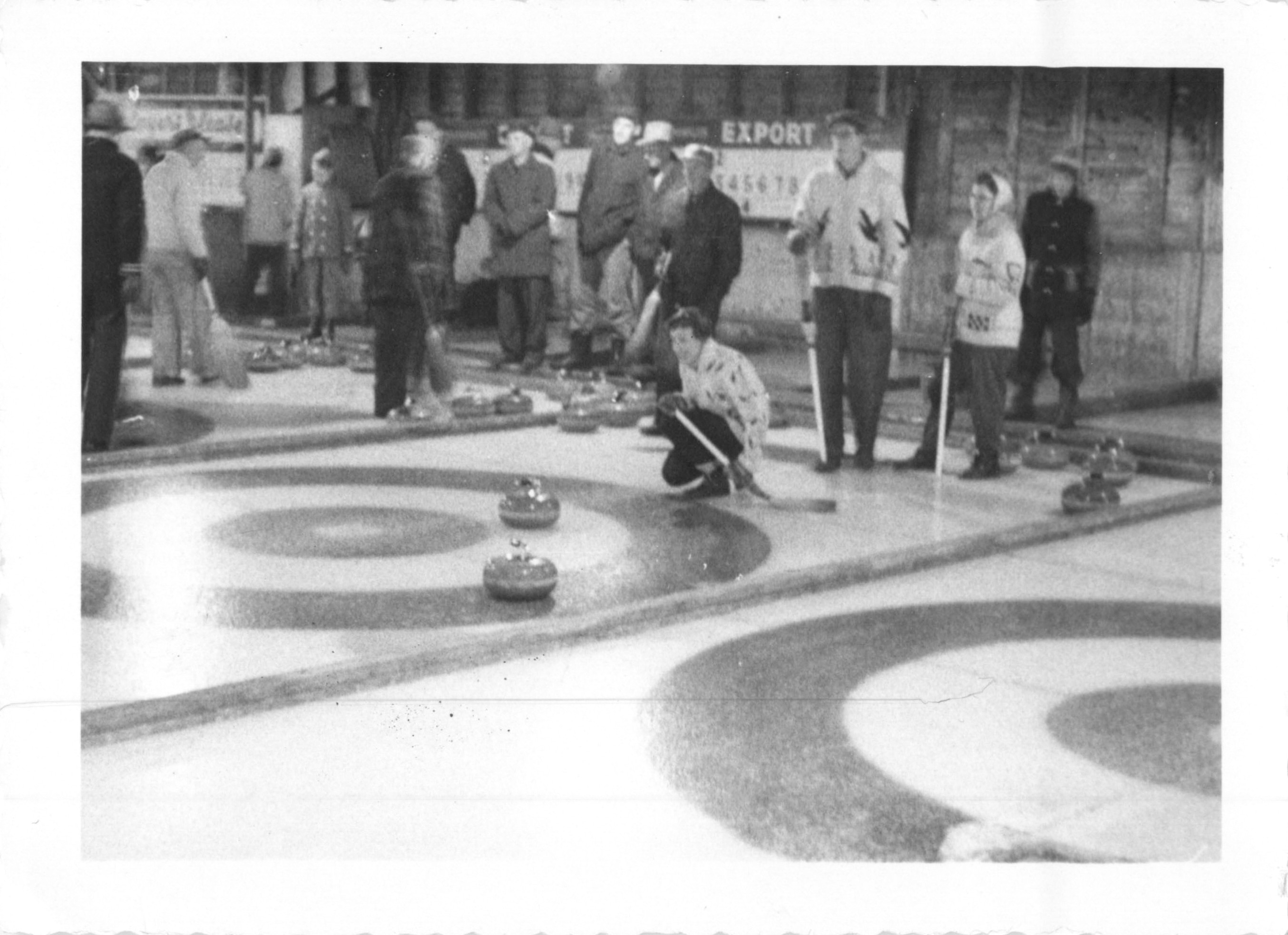Description Strathclair Bonspiel 1959, One person is Doug Cocharne