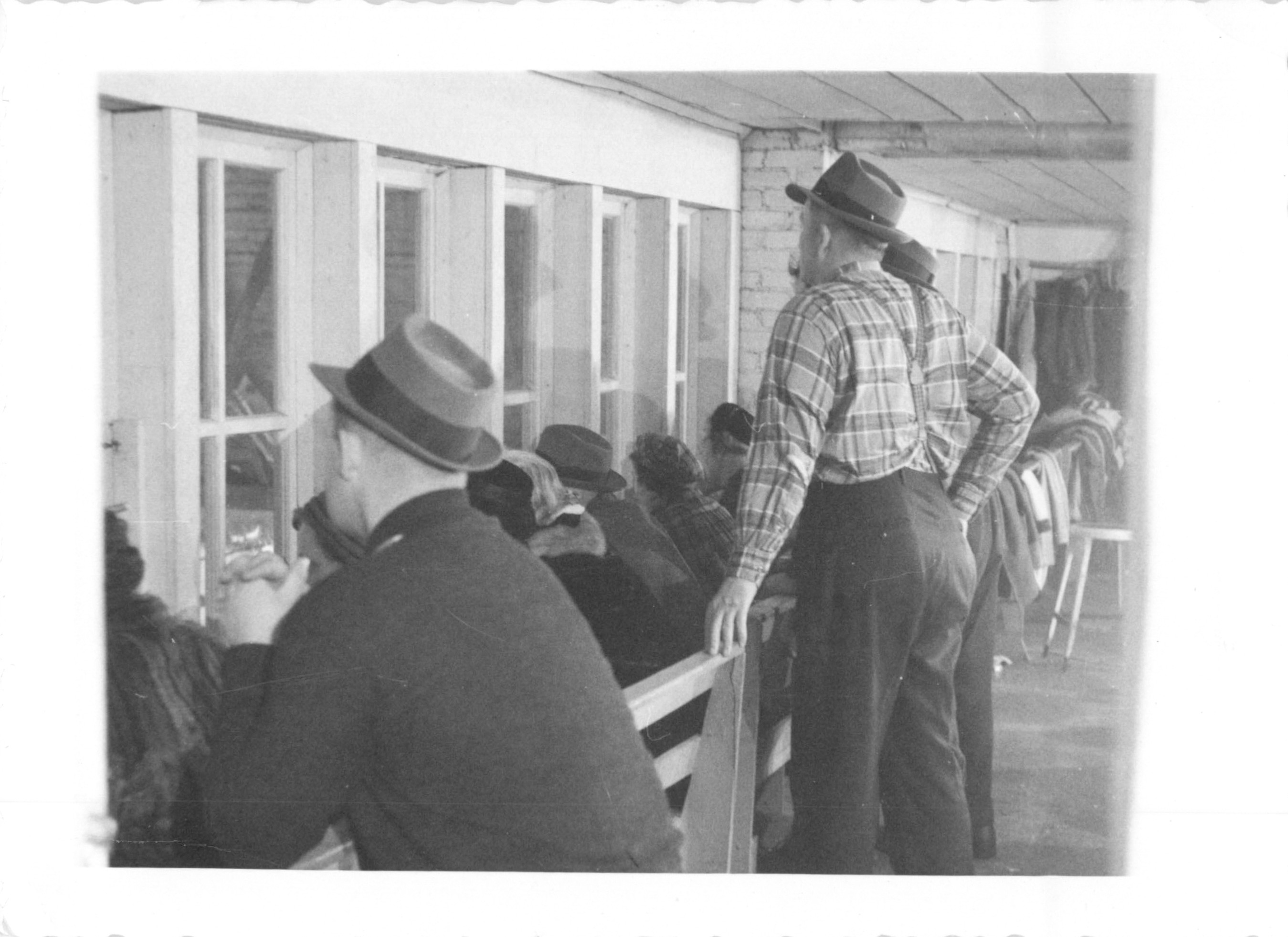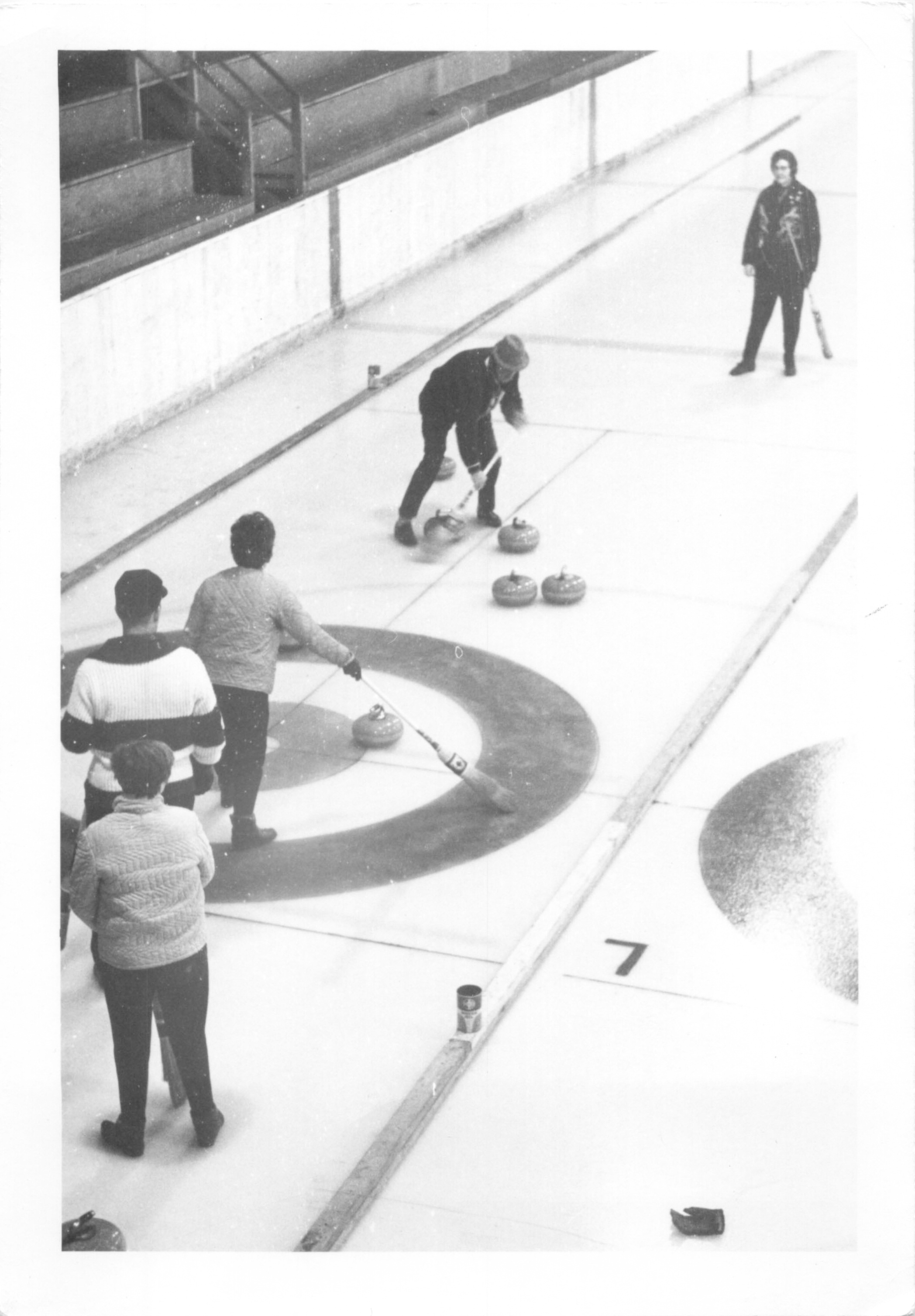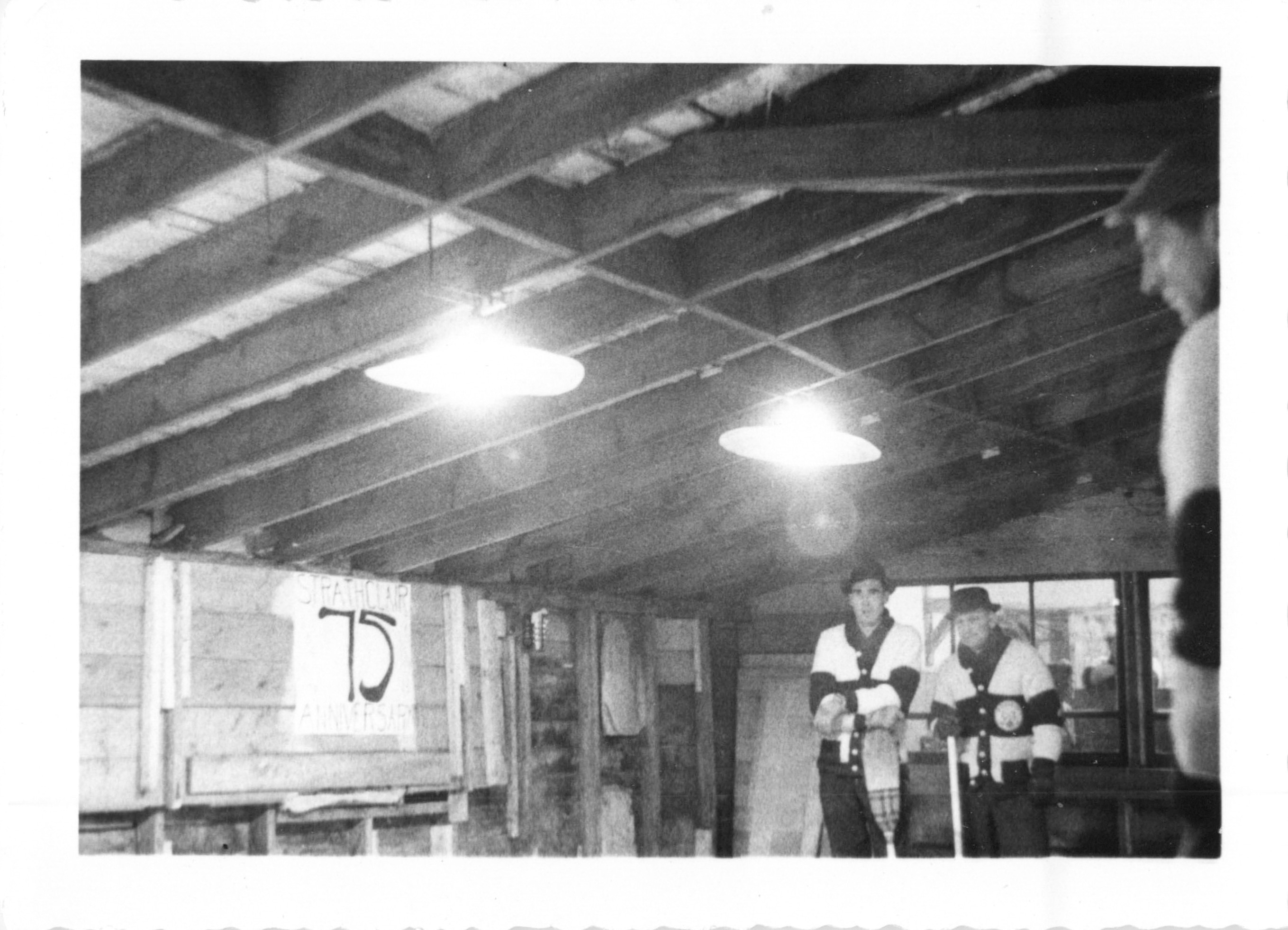 Description Strathclair Bonspiel 1959, One person is Doug Cocharne