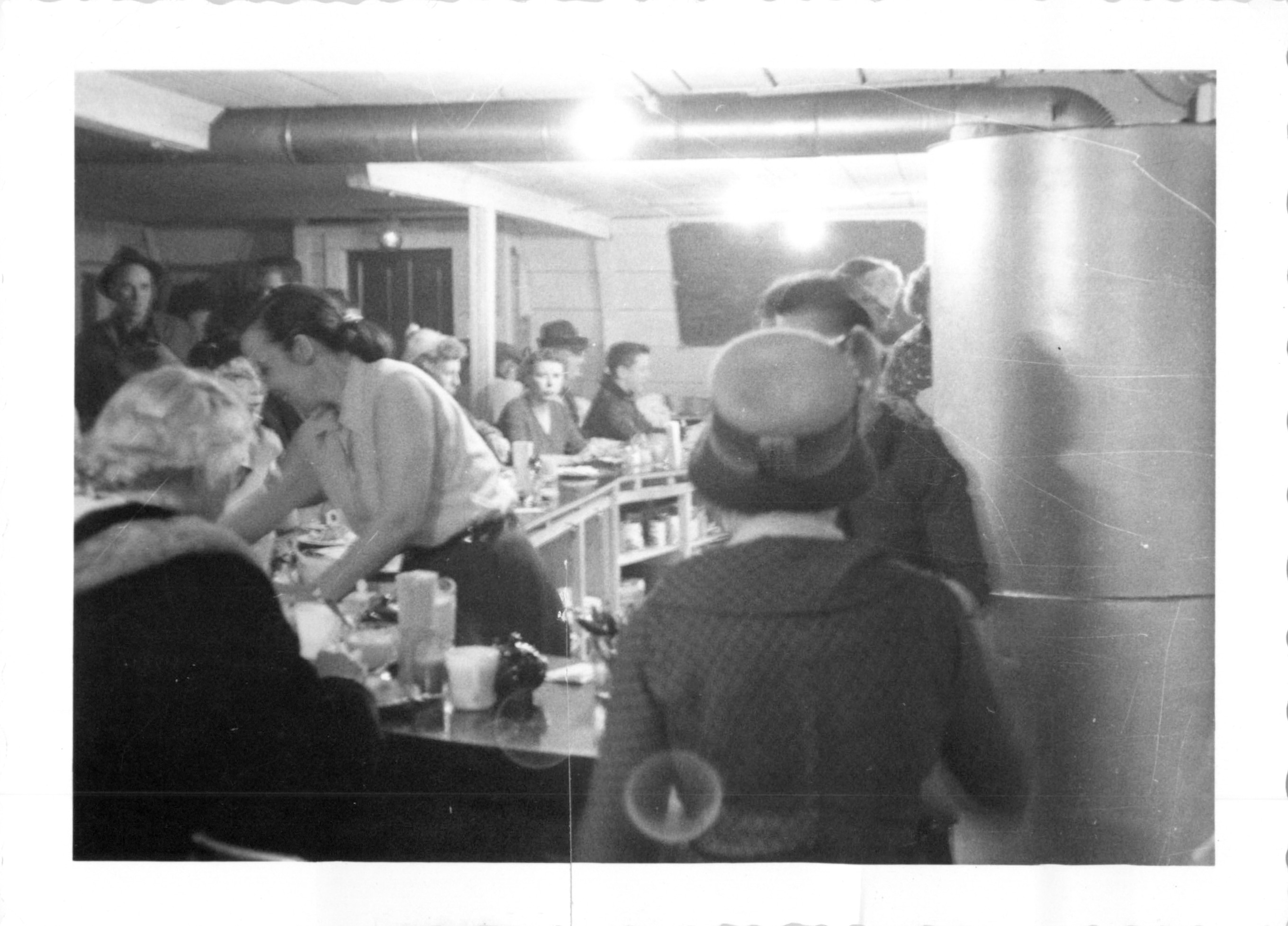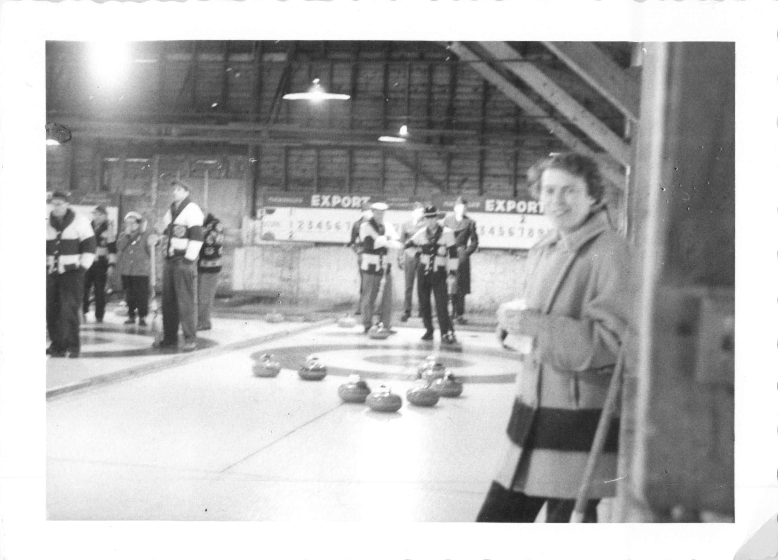 Description Strathclair Bonspiel 1959 Madaline Ferguson (white coat)
