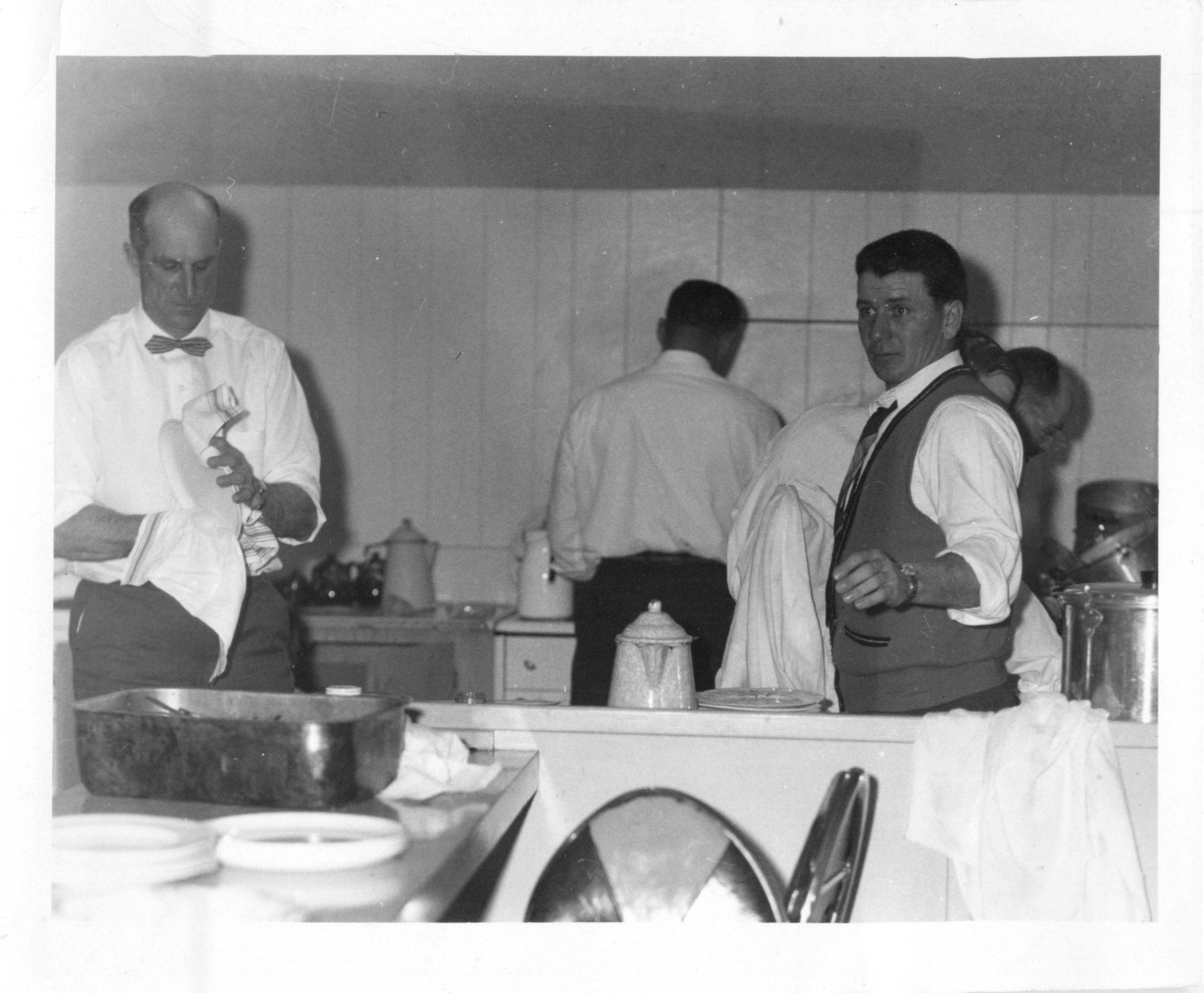 Description Strathclair Bonspiel 1959 L-R: Ken Rapley, Dr Harland, George Harvey