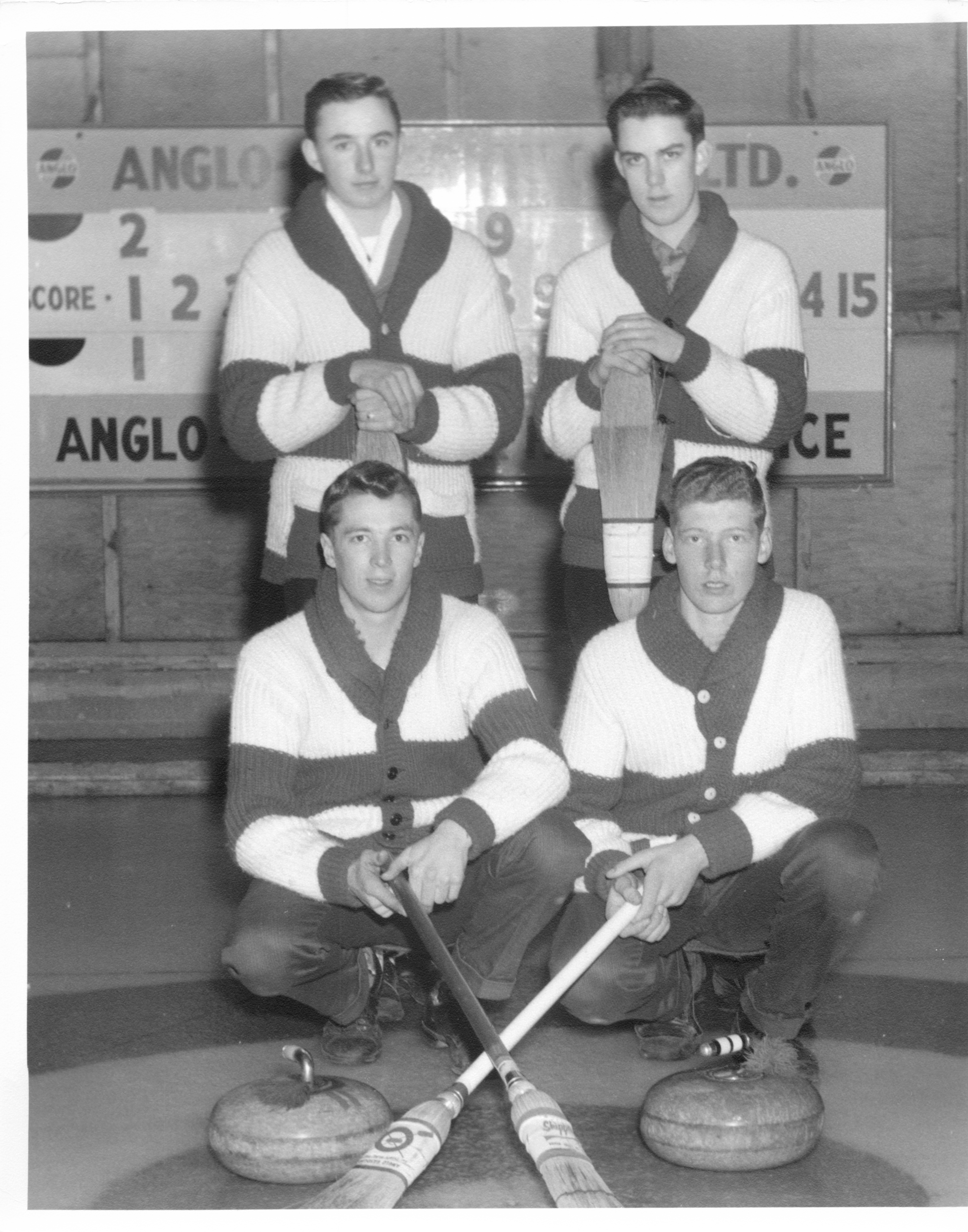 Description Strathclair Bonspiel 1959 L-R: Les Kretai, John Dymter, Ron Holmes, Arnold Pirie