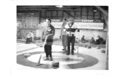 Description Strathclair Bonspiel 1959 L-R: Frances Brodie, Gordon Sinclair, Ken Rapley