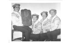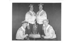 Description Strathclair Bonspiel 1959 L-R: Shirley Winstone, Irene Parker, Lola Grills, Olive Gamey