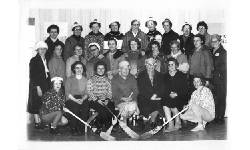 Description L- R: Irene Parker, Shirley Winstone, Lola Grills, Olive Gamey Strathclair won the Dominion Final and went to Ottawa to play for the Diamond D Trophy in 1961