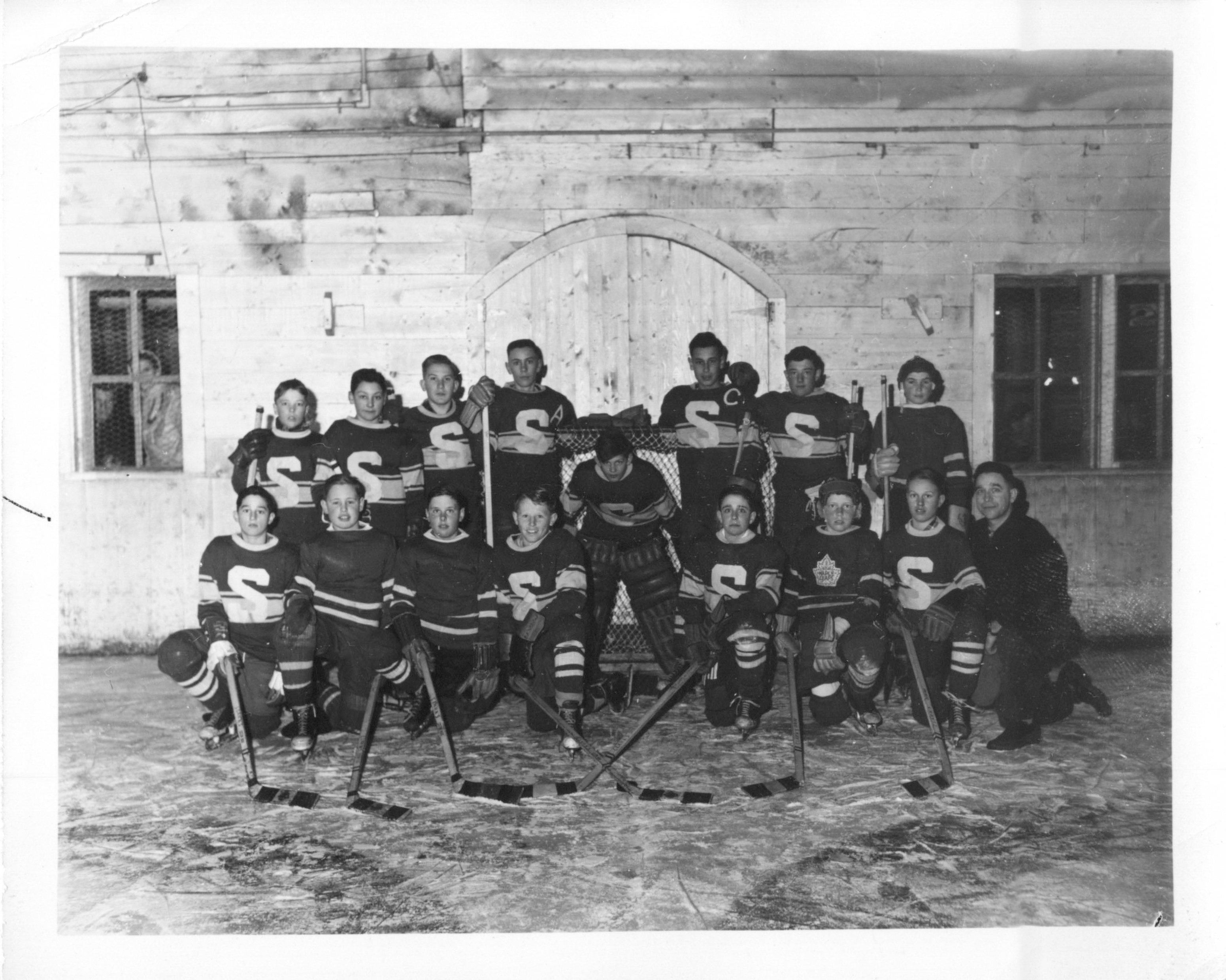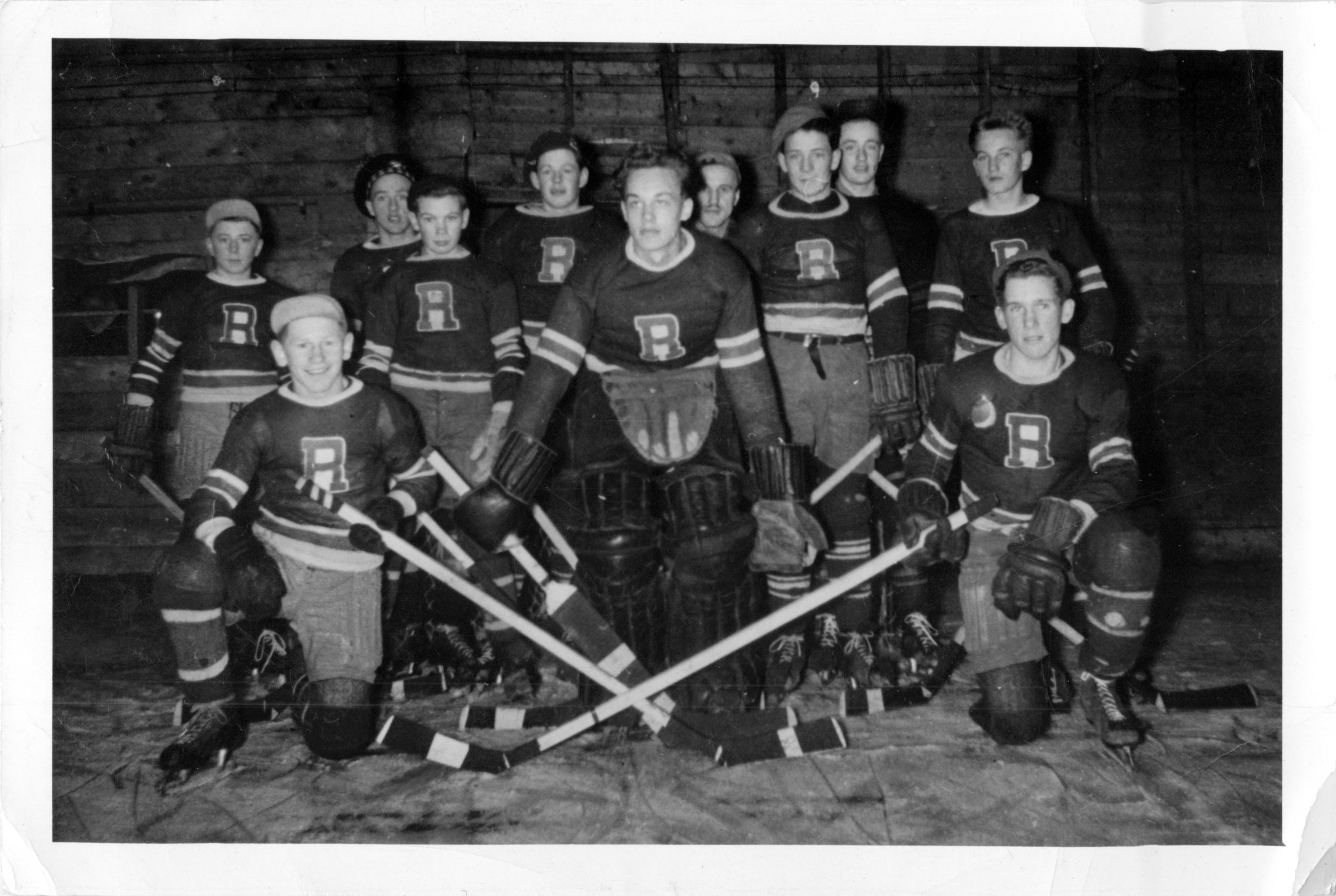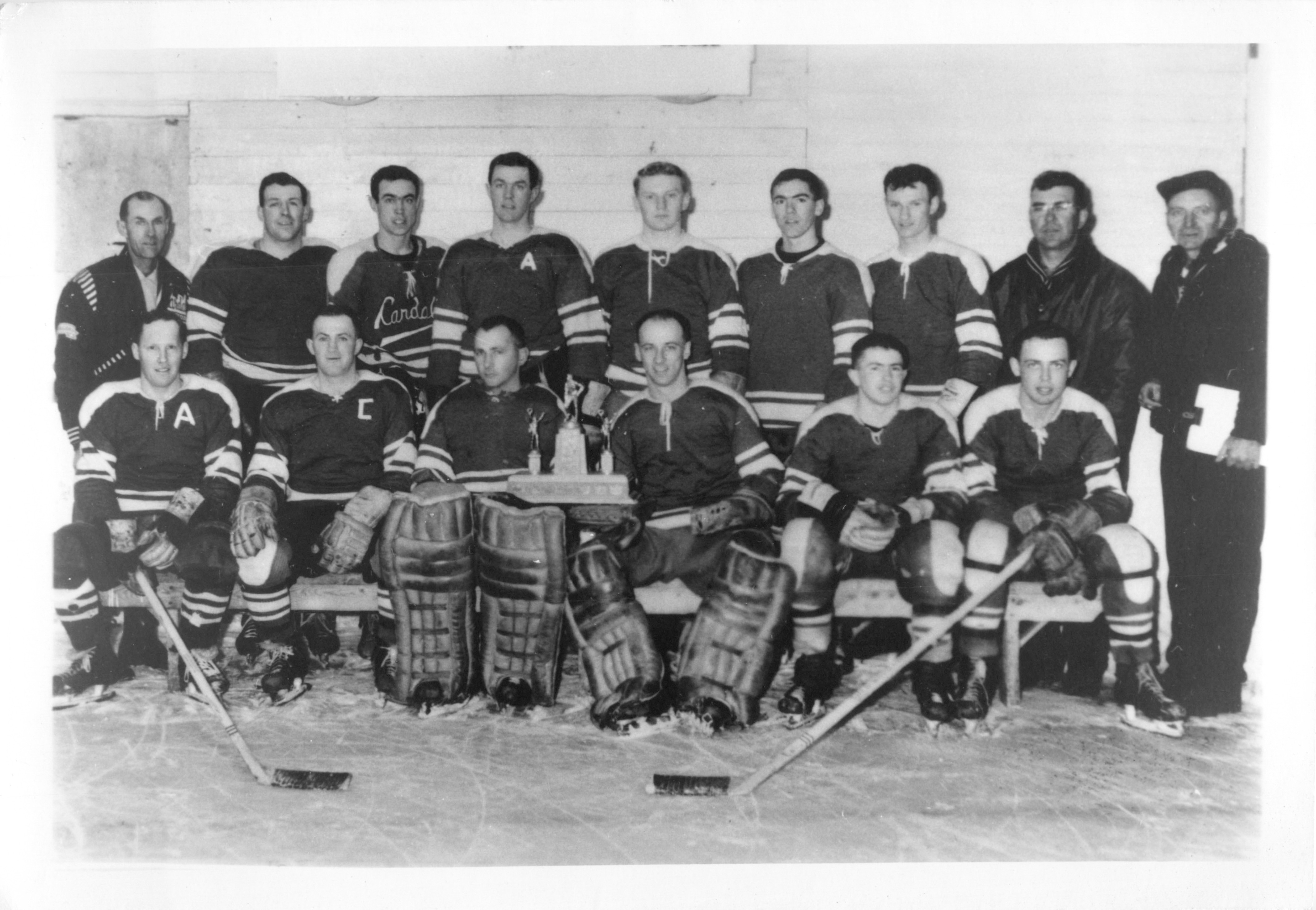 Description Back L-R Norman Jack, unknown, Eugene Pirie, John Mervyn, unknown, unknown, unknown Front L-R Earl Hansen, Ralph McMillan, Unknown, unknown, Goalie unknown, Ernest Molgat, Allister Wilson, Edward Kotyk, Louis Molgat.