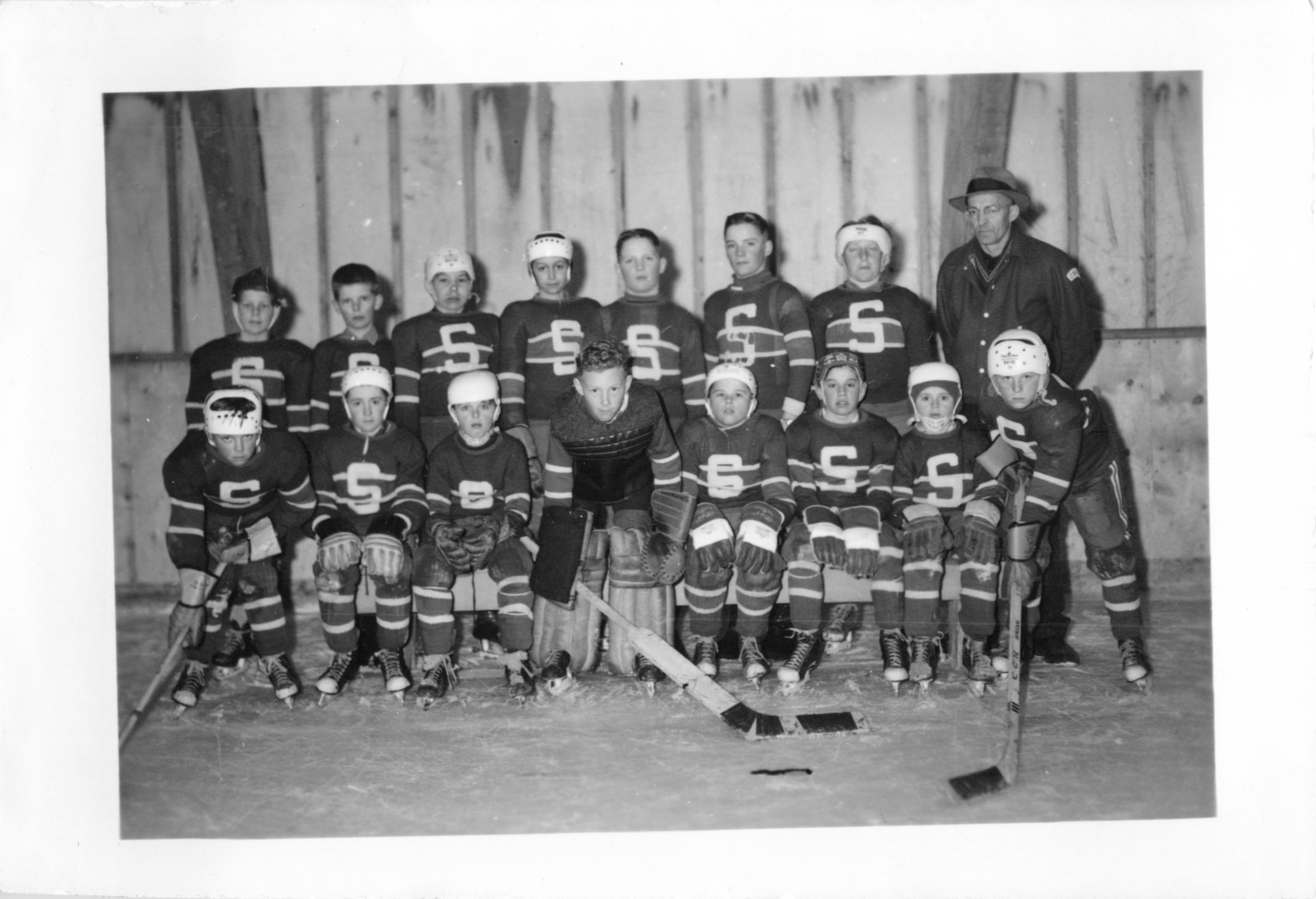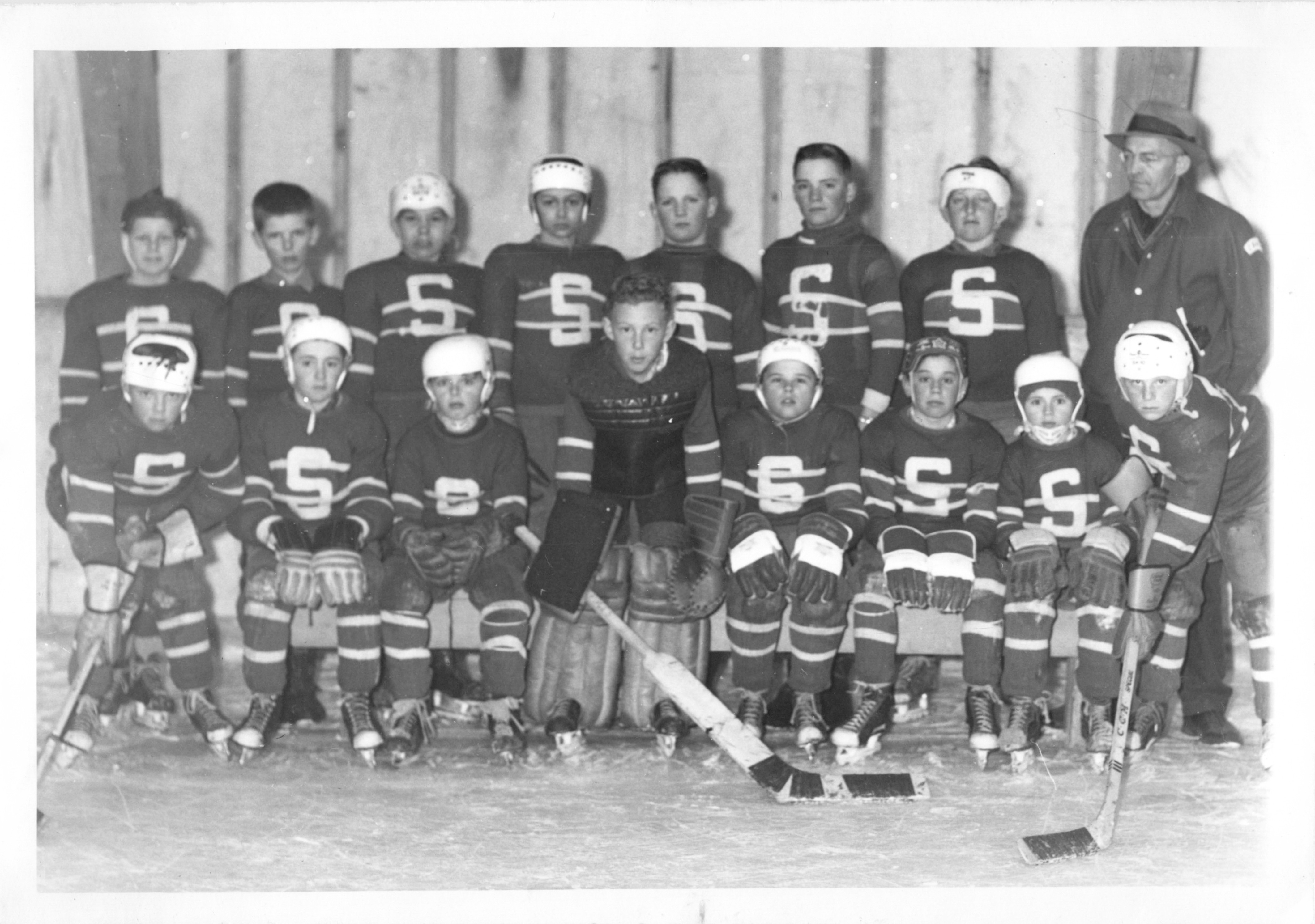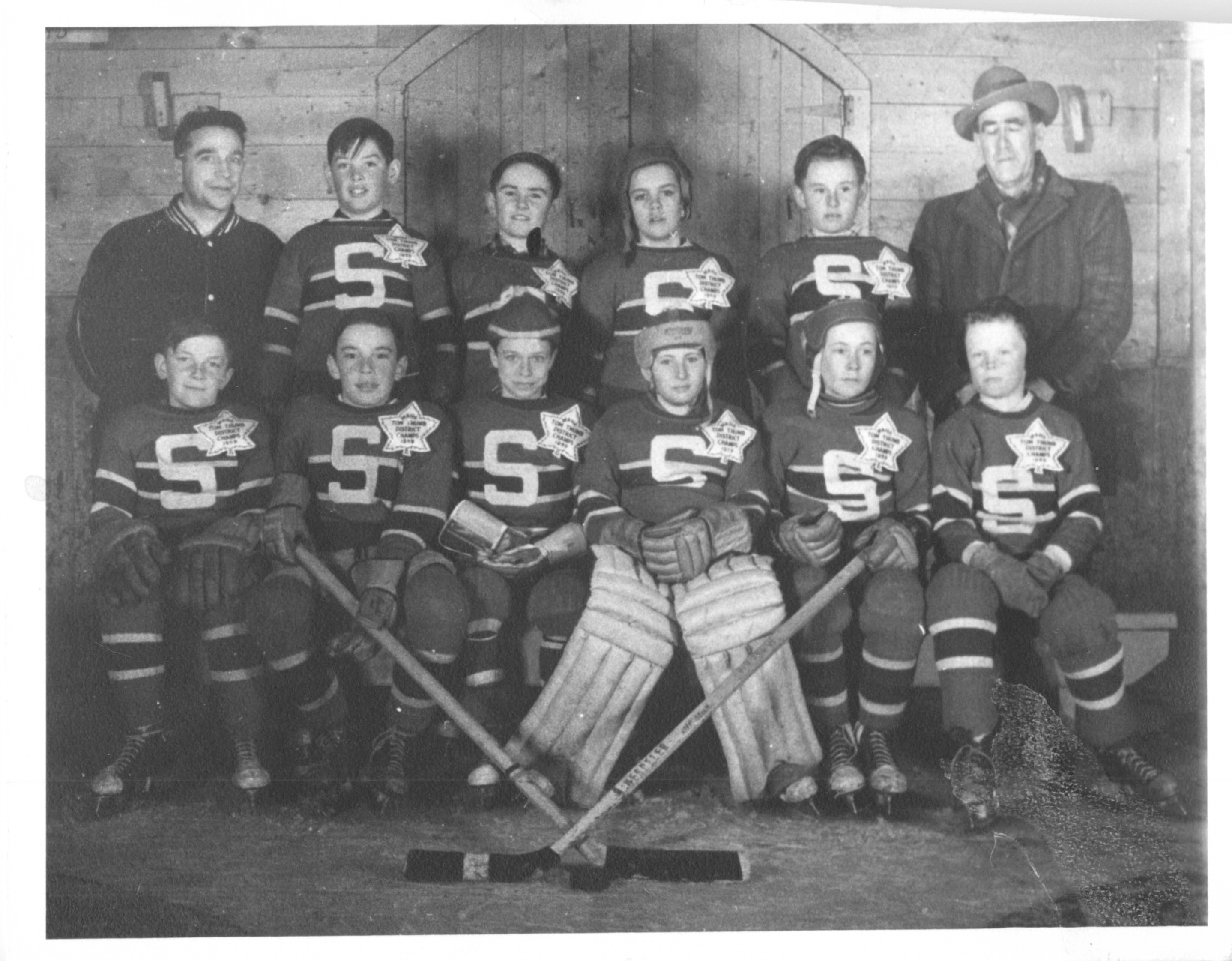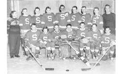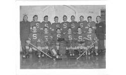 Description Back Row L-R: Earl Millman, Bill Watson, Mr Blackhurst (coach) Sid Burnell Middle Row L-R: Harry Kulchyski, Jim Taylor, Edwin Watson, Bob Cochrane Front Row L-R: Alex Kulchyski, Tom Syvack (goalie), Edward Taylor 1947 Strathclair Hockey Club, Lost in the final against Somerset