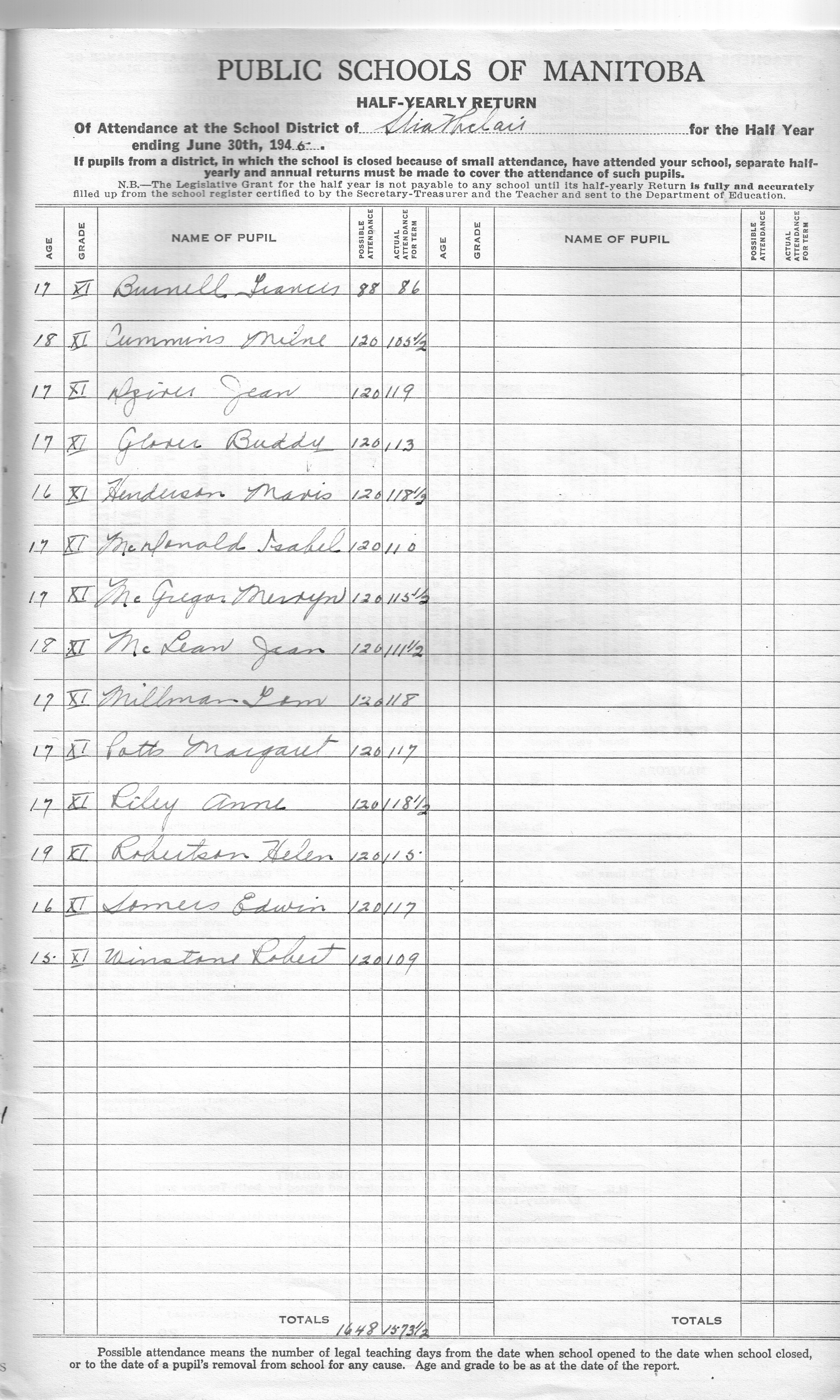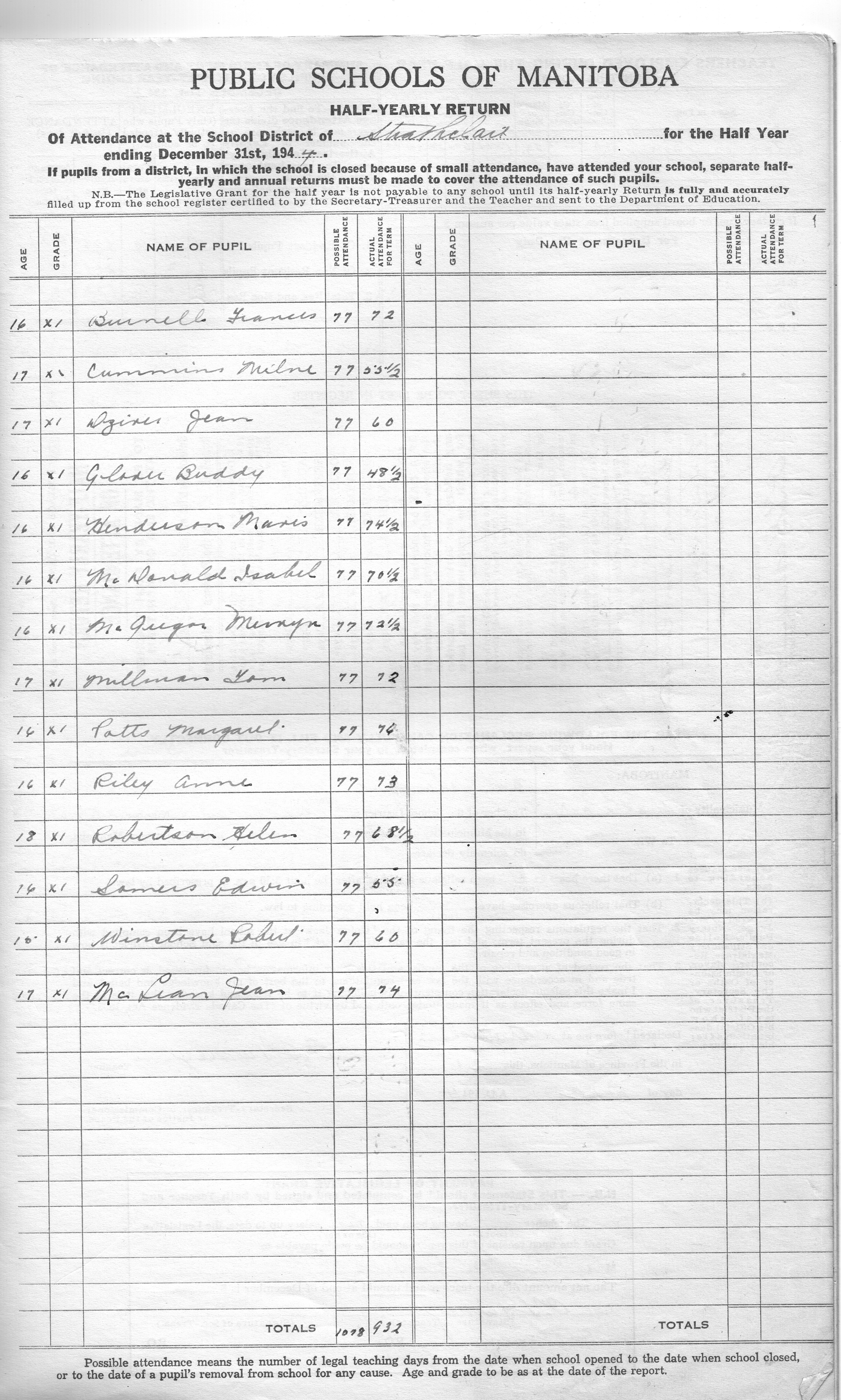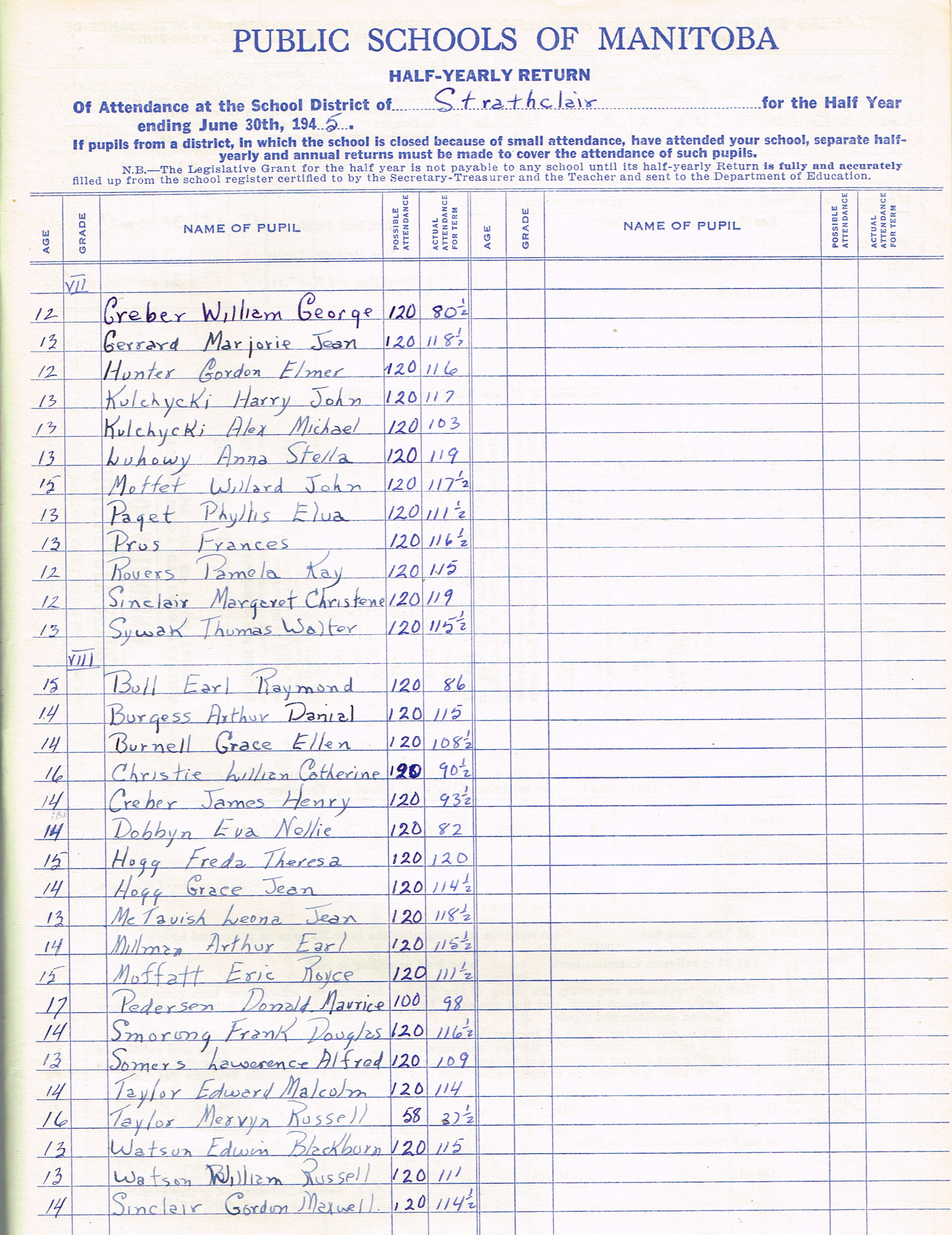 Description Lorne A. Finkbeiner (teacher) Bull, Earl, Raymond (G8) Burgess, Arthur Daniel (G8) Burnell, Grace, Ellen (G8) Christie, Lillian, Catherine (G8) Creber, James, Henry (G8) Dobbyn, Eva Nellie (G8) Hogg, Freda, Theresa (G8) Hogg, Grace, Jean (G8) McTavish, Leona, Jean (G8) Millman, Arthur, Earl (G8) Moffatt, Eric Royce (G8) Pedersen, Donald (G8) Sinclair, Frank, Douglas (G8) Smorong, Frank Douglas (G8) Somers, Lawrence, Alfred (G8) Taylor, Edward, Malcolm (G8) Taylor, Mervyn, Russell (G8) Watson, Edwin Blackburn (G8) Watson, William, Russell (G8)