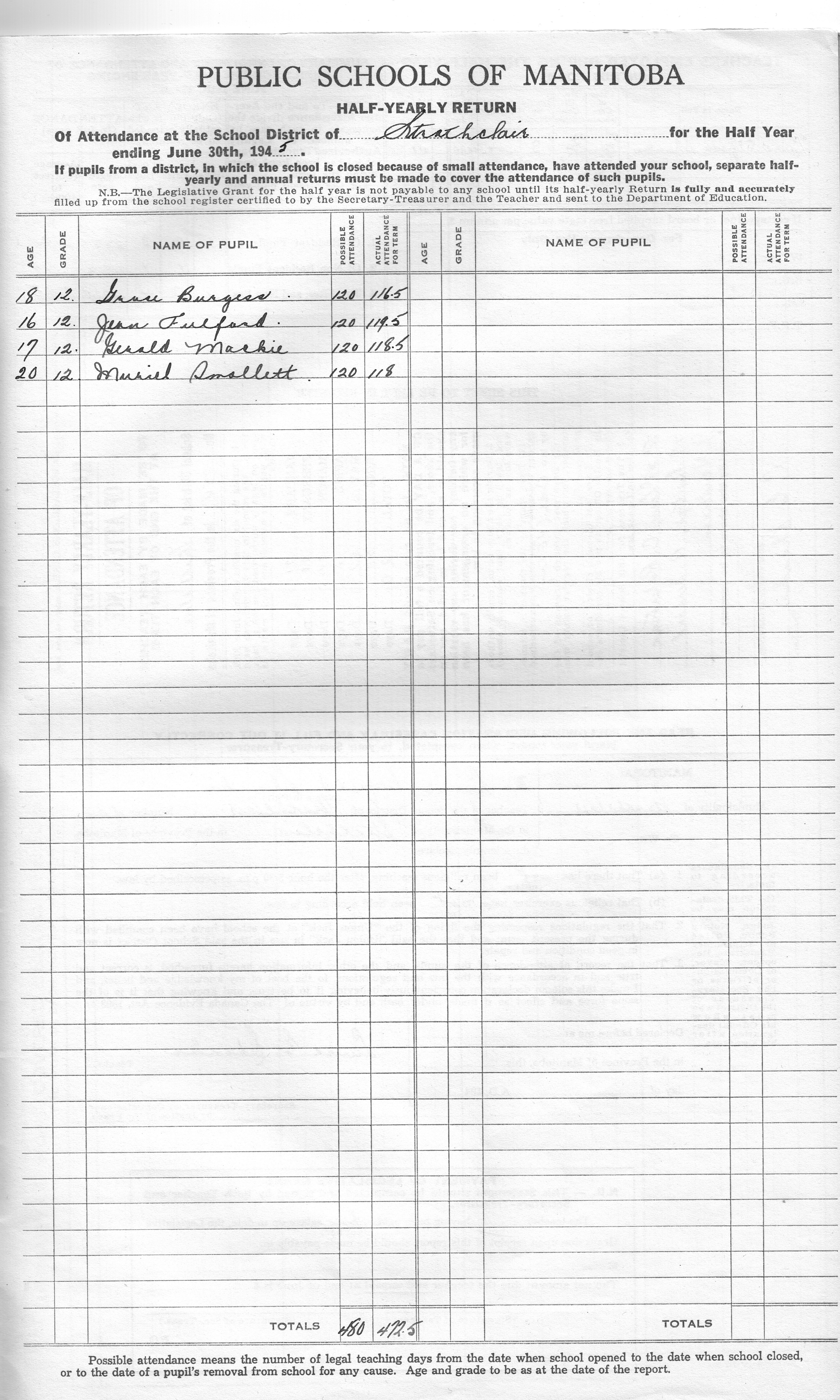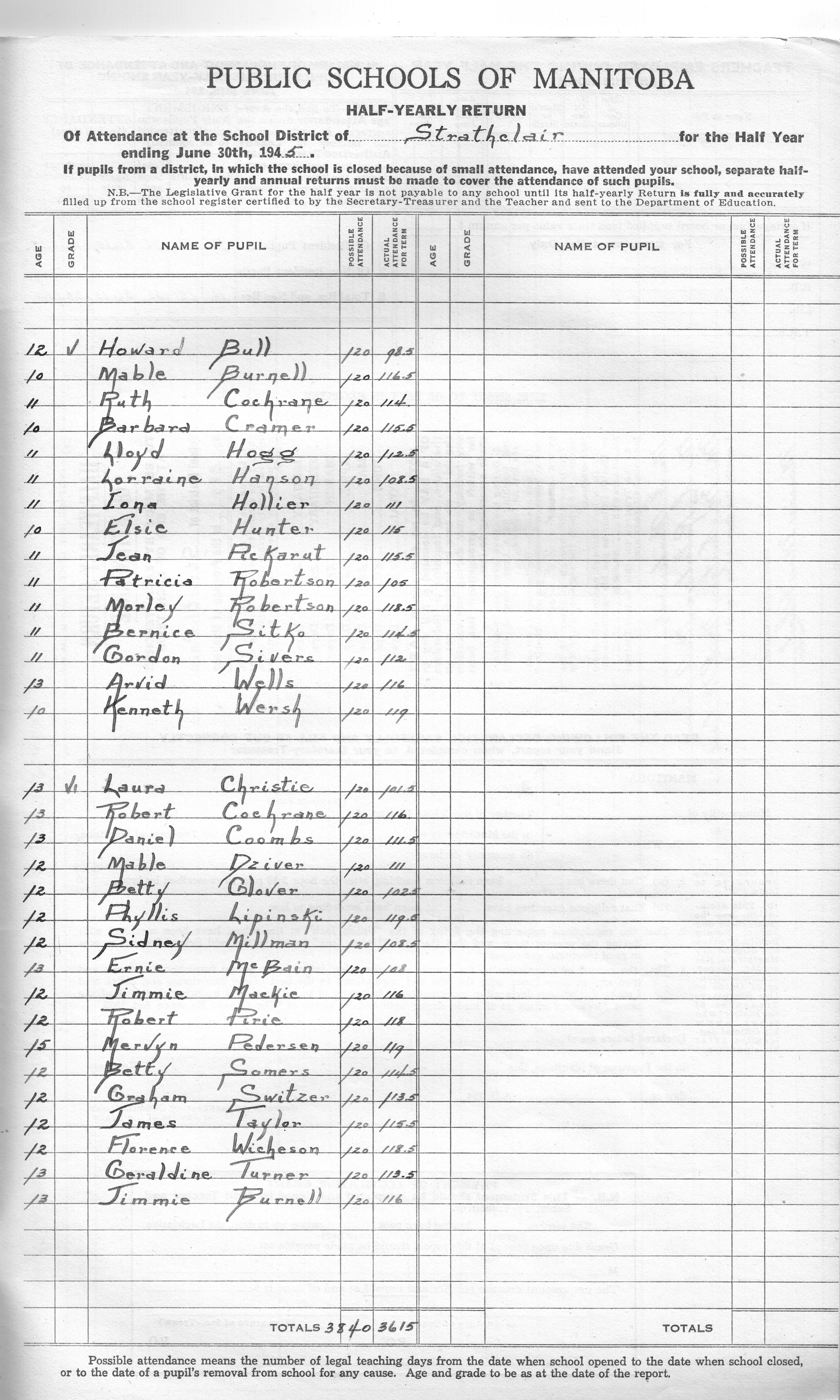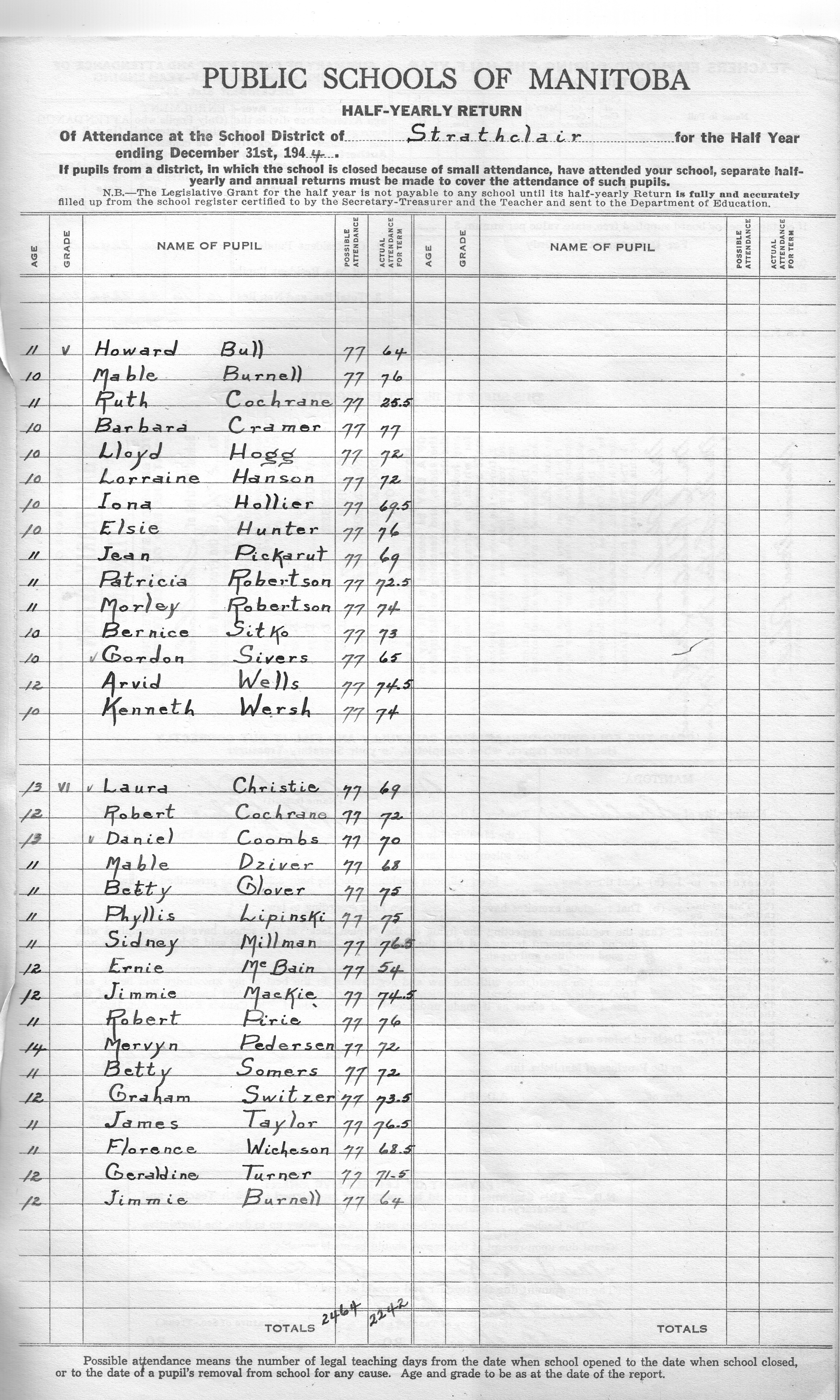 Description M. McPhail (teacher) Howard Bull (G5) Mable Burnell (G5) Ruth Cochrane (G5) Barbara Cramer (G5) Lloyd Hogg (G5) Lorraine Hanson (G5) Iona Hollier (G5) Elsie Hunter (G5) Jean Pickarut (G5) Patricia Robertson (G5) Morley Robertson (G5) Bernice Sitko (G5) Gordon Sivers (G5) Arvid Wells (G5) Kenneth Wersh (G5) M. McPhail (teacher) Laura Christie (G6) Robert Cochrane (G6) Daniel Coombs (G6) Mable Dziver (G6) Betty Glover (G6) Phyllis Lipinski (G6) Sidney Millman (G6) Ernie McBain (G6) Jimmie Mackie (G6) Robert Pirie (G6) Mervyn Pedersen (G6) Betty Somers (G6) GrahamSwitzer (G6) James Taylor (G6) Florence Wicheson (G6) Geraldine Turner (G6) Jimmie Burnell (G6)