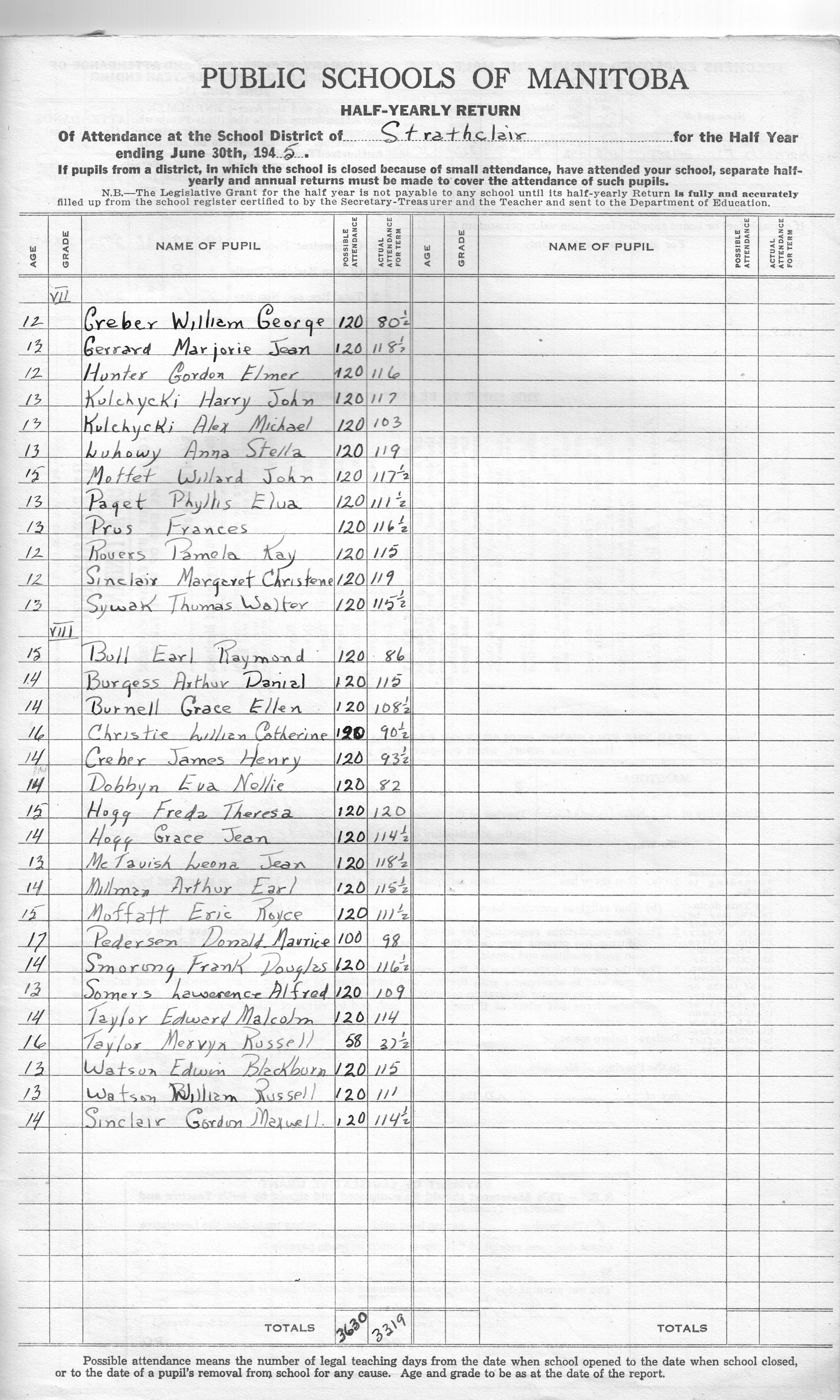 Description 2013.1030.07 Lorne A. Finkbeiner (teacher) Creber, William, George (G7) Gerrard, Marjorie, Jean (G7) Hunter, Gordon , Elmer (G7) Kulchycki, Alex, Michael (G7) Kulchycki, Harry, John (G7) Luhowy, Anna, Stella (G7) Moffet, Willard, John (G7) Paget, Phyllis, Elvie (G7) Prus, Frances (G7) Rovers, Pamela, Kay (G7) Sinclair, Margaret, Christine (G7) Syrak, Thomas, Walter (G7) Bull, Earl Raymond (G8), Burgess, Arthur Daniel (G8), Burnell, Grace Ellen (G8), Christie, Lillian Catherine (G8), Creber, James Henry (G8), Dobbyn, Eva Nellie (G8), Hogg, Freda Theresa (G8), Hogg, Grace Jean (G8), McTavish, Leona Jean (G8), Millman, Arthur Earl (G8), Moffatt, Earl Royce(G8), Pedersen, Donald (G8), Sinclair, Gordon Maxwell (G8), Smorong, Frank Douglas (G8), Somers, Lawerence Alfred (G8), Taylor, Edward Malcolm (G8), Taylor, Mervyn Russell (G8), Watson, Edwin Blackburn (G8), Watson, William Russell (G8),