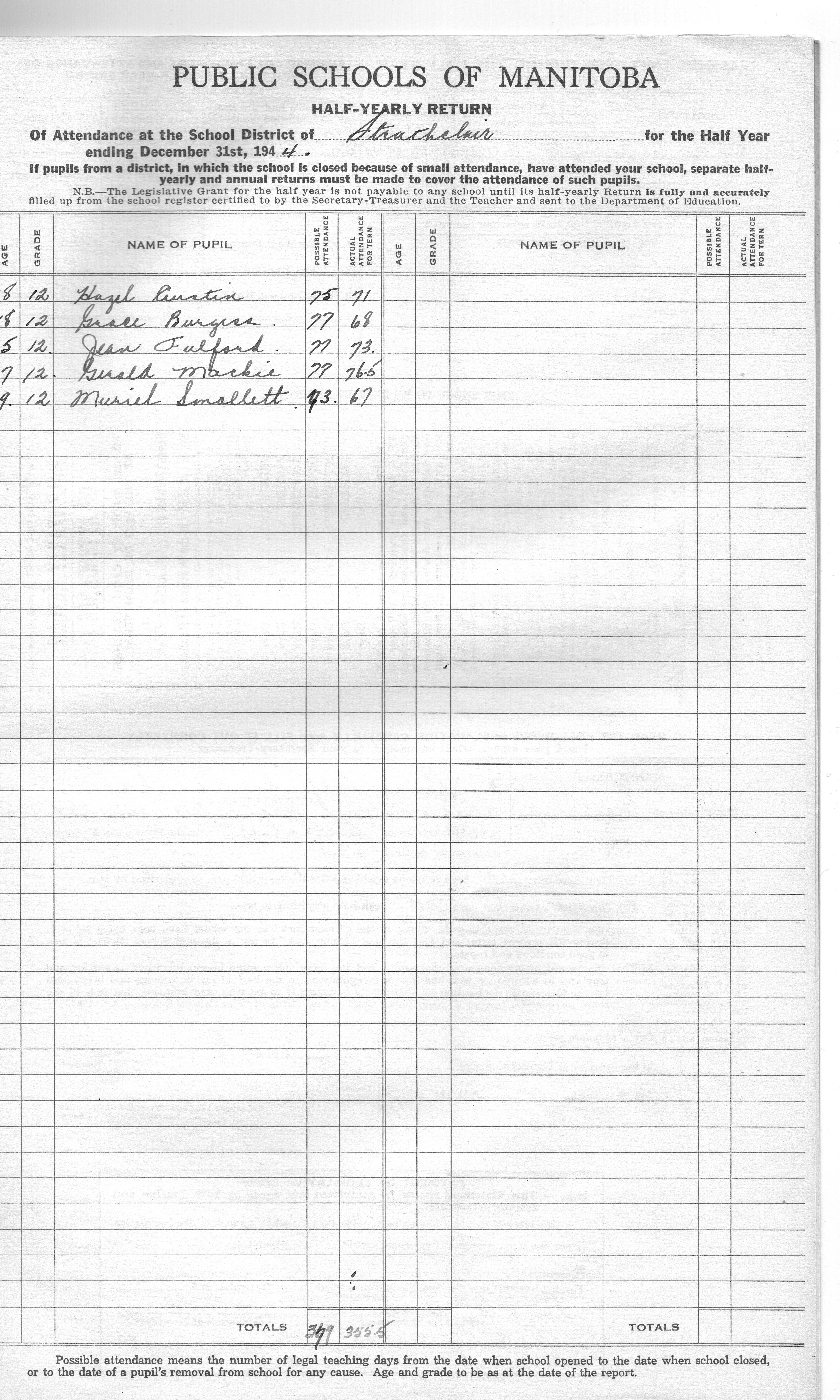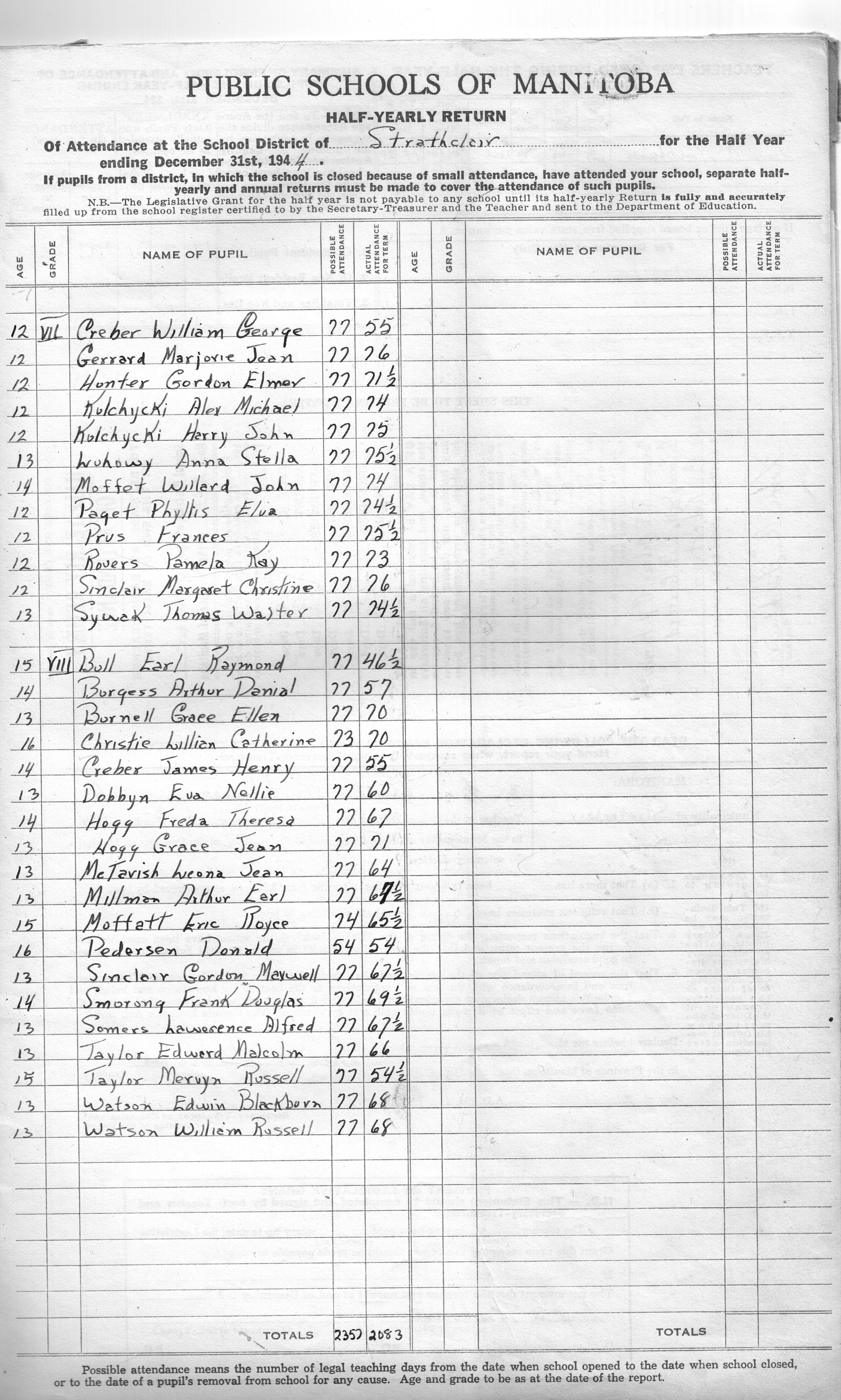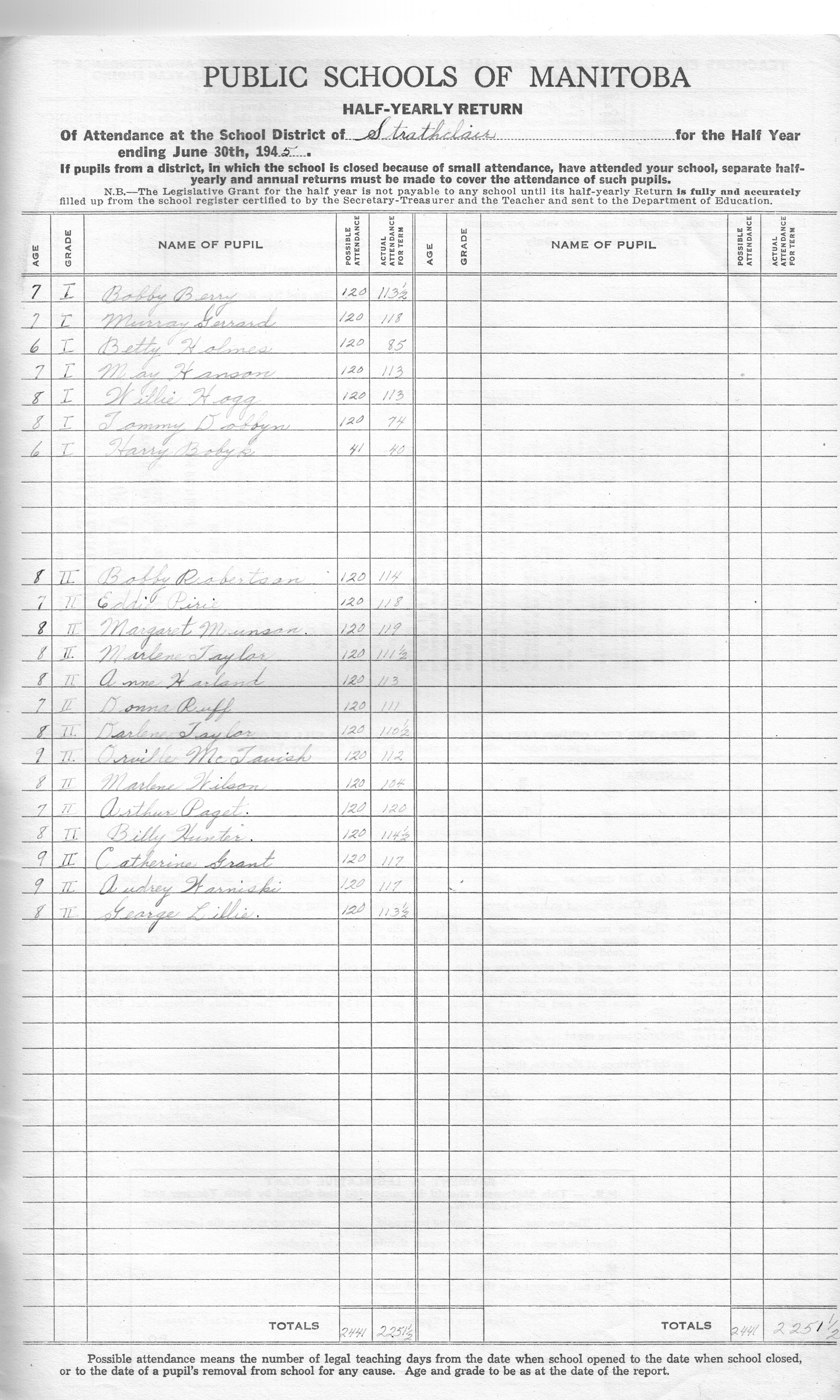 Object Name Strathclair Consol. Sch. #284, 1944-45