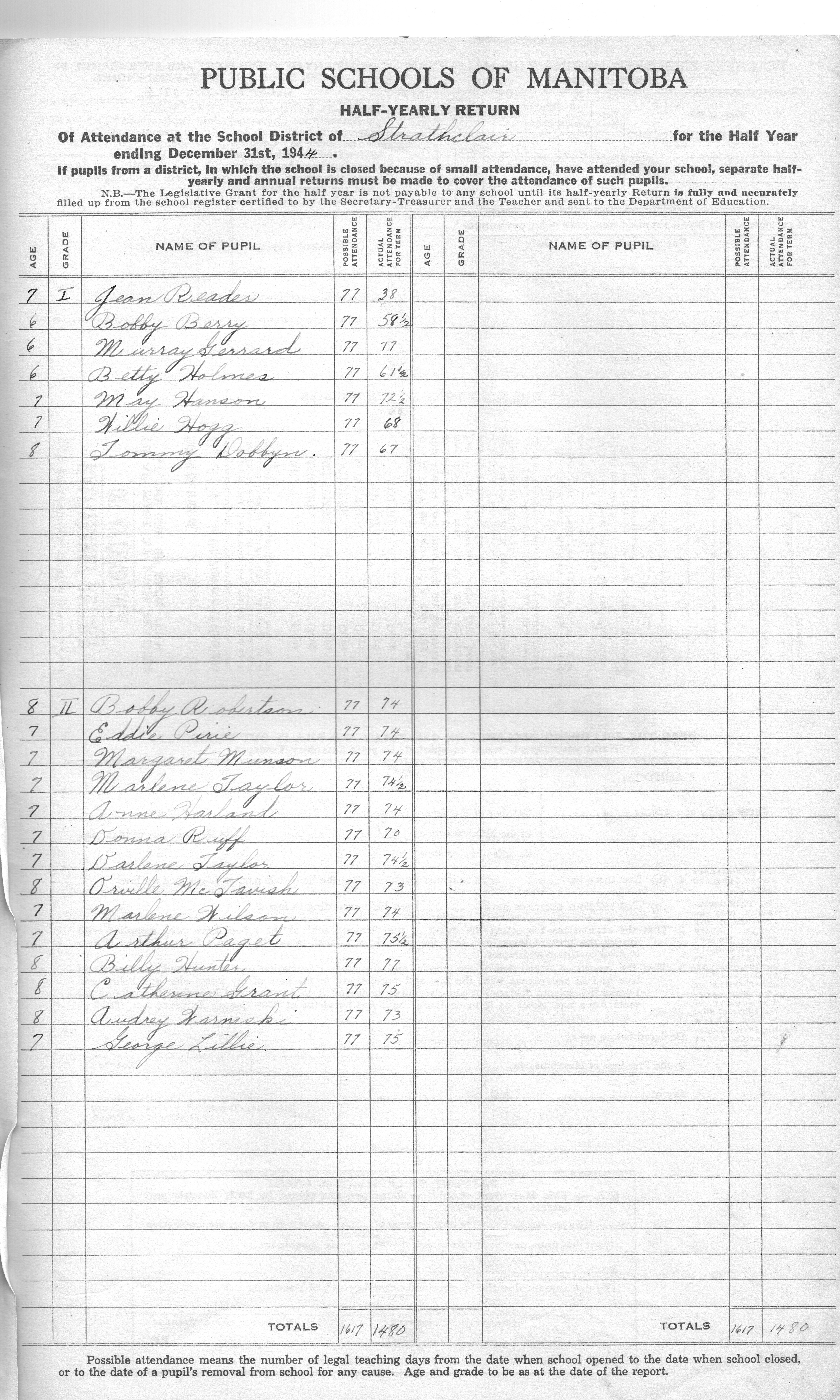 Description Margaret C. Green (teacher) Bobby Berry (G1) Murray Gerrard (G1) Betty Holmes (G1) May Hanson (G1) Willie Hogg (G1) Tommy Dobbyn (G1) Harry Bobyk (G1) Margaret C. Green (teacher) Bobby Robertson (G2) Eddie Pirie (G2) Margaret Munson (G2) Marlene Taylor (G2) Anne Harland (G2) Donna Ruff (G2) Darlene Taylor (G2) Orville McTavish (G2) Marlene Wilson (G2) Arthur Paget (G2) Billy Hunter (G2) Catherine Grant (G2) Audrey Warniski (G2) George Lillie (G2)