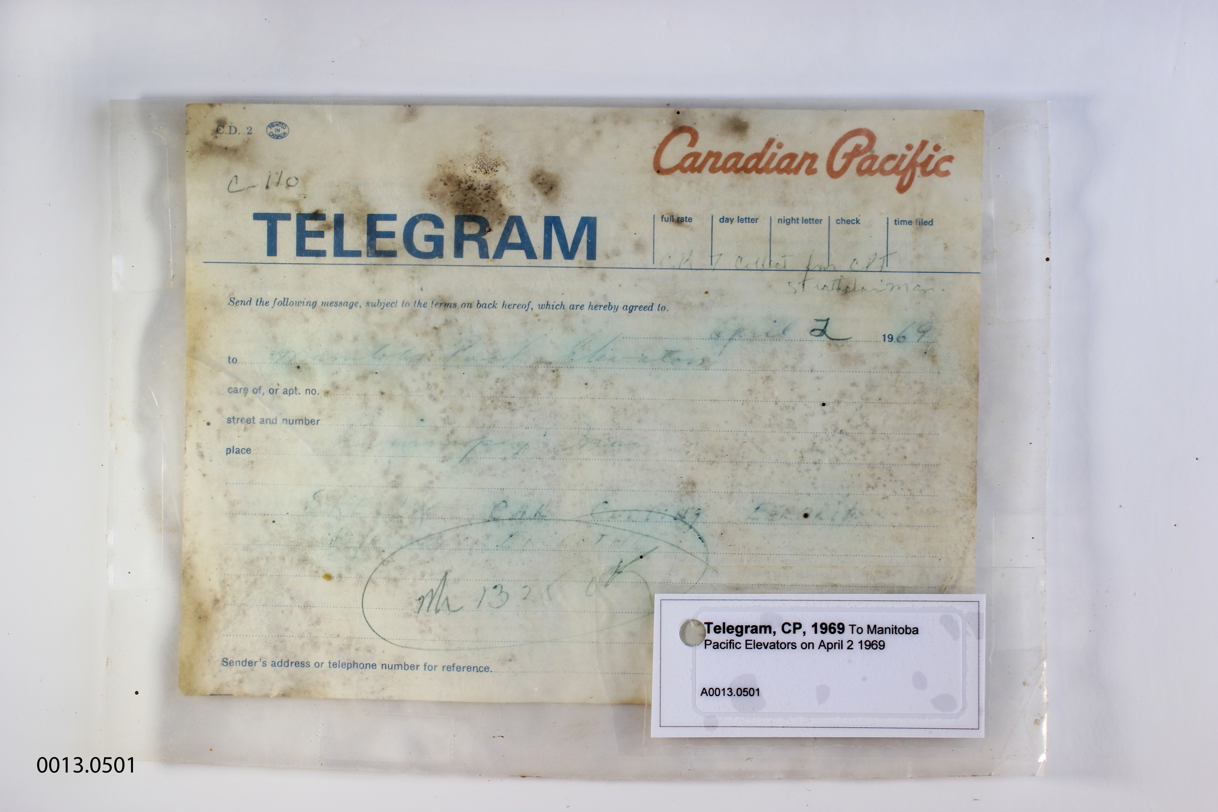 Object Name Telegram, CP, 1969