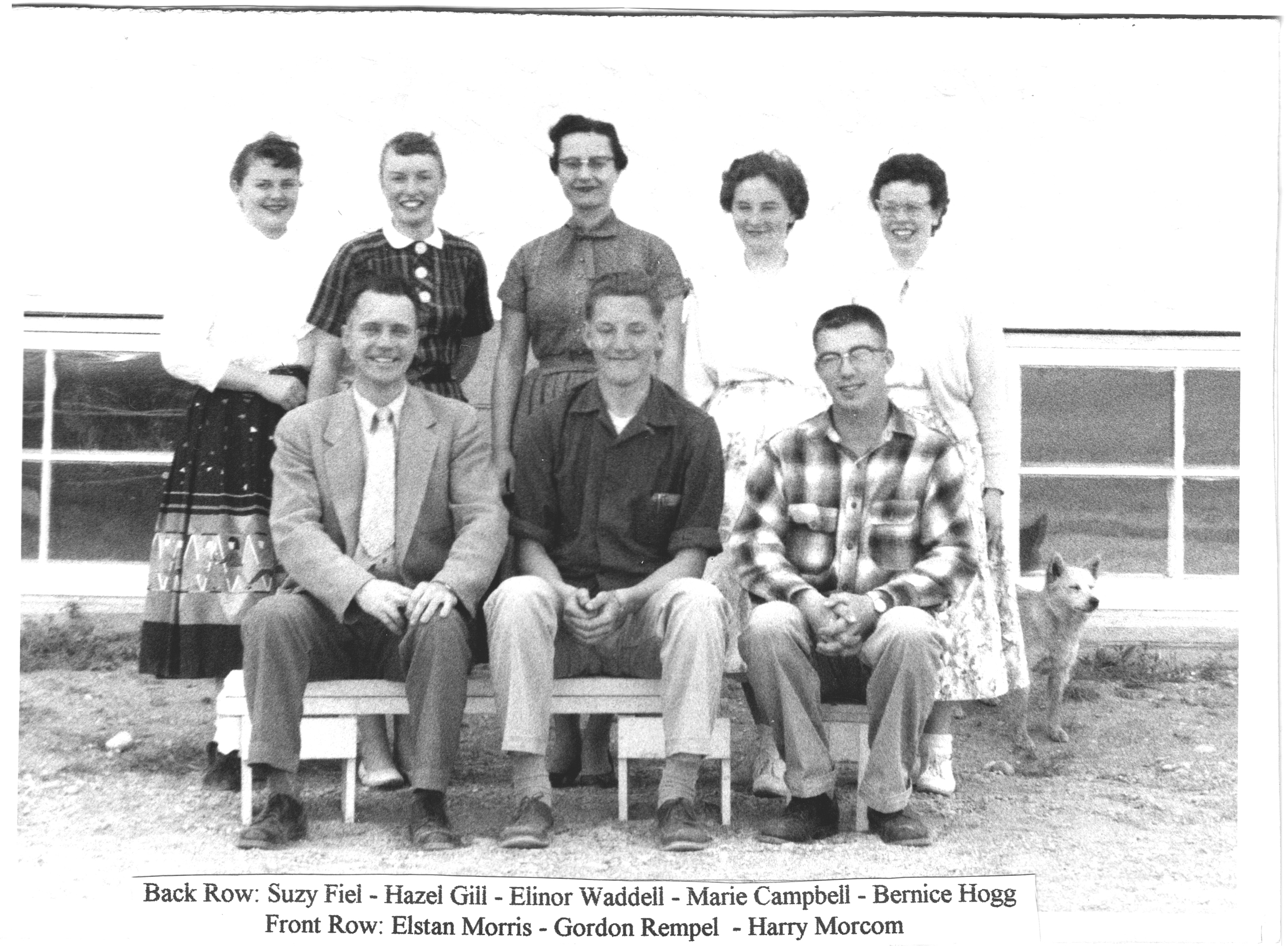 Description Back Row L-R Suzy Fiel, Hazel Gill, Elinor Waddell, Marie Campbell, Bernice Hogg, Front Row L-R Elstan Morris, Gordon Rempel, Harry Morcom