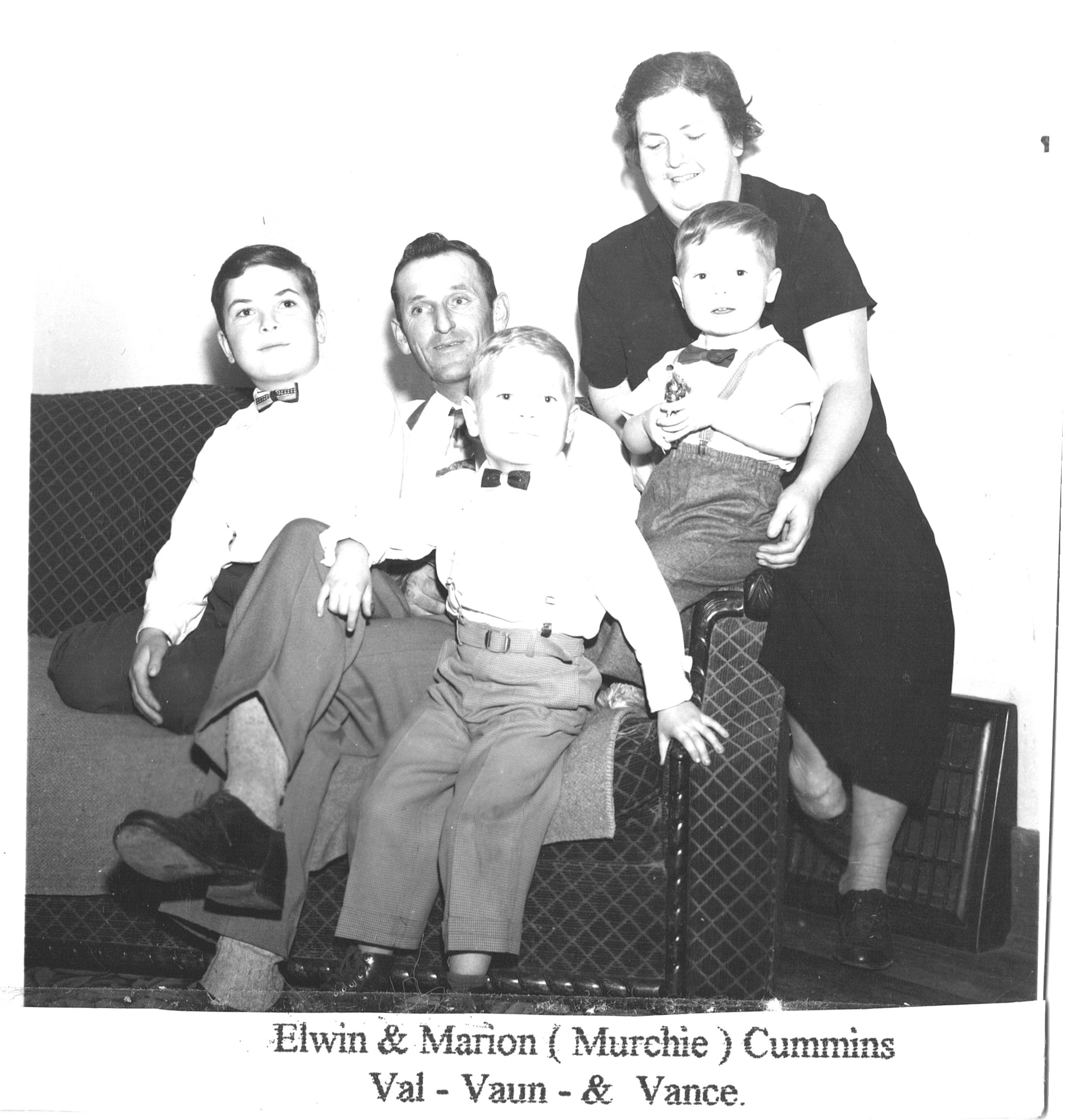 Description L-R Cummins Family Val, Elwin, Vaun Marion, Vance