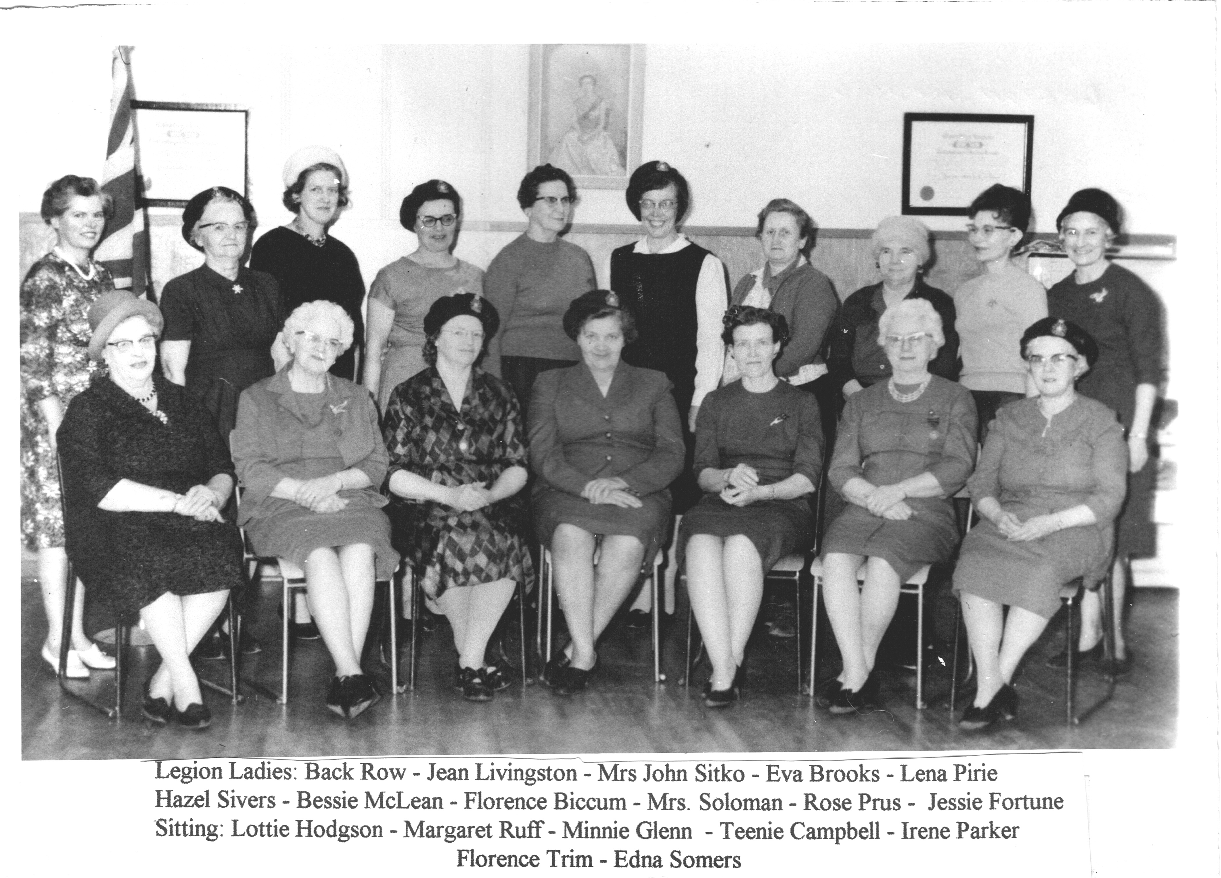 Description Back Row L-R Jean Livingston, Mrs. John Sitko, Eva Brooks, Lena Pirie, Hazel Sivers, Bessy McLean, Florence Biccum, Mrs. Soloman, Rose Prus, Jessie Fortune. Front Row, L-R Lottie Hodgson, Margaret Ruff, Minnie Glenn, Teenie Campbell, Irene Parker, Florence Trim, Edna Somers