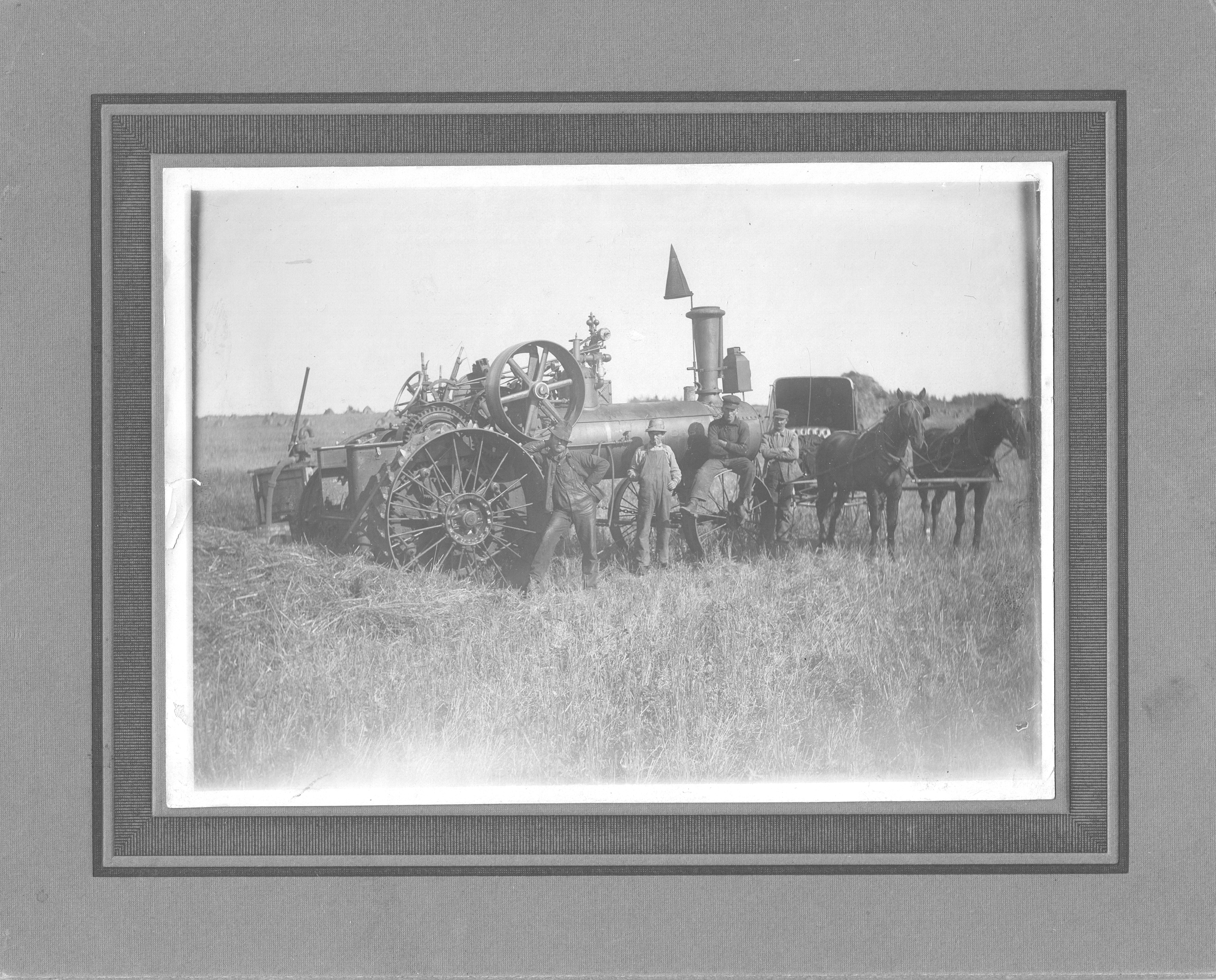 Description Lorne Manley's Steam Engine at Ed Nordeen's Farm 1918