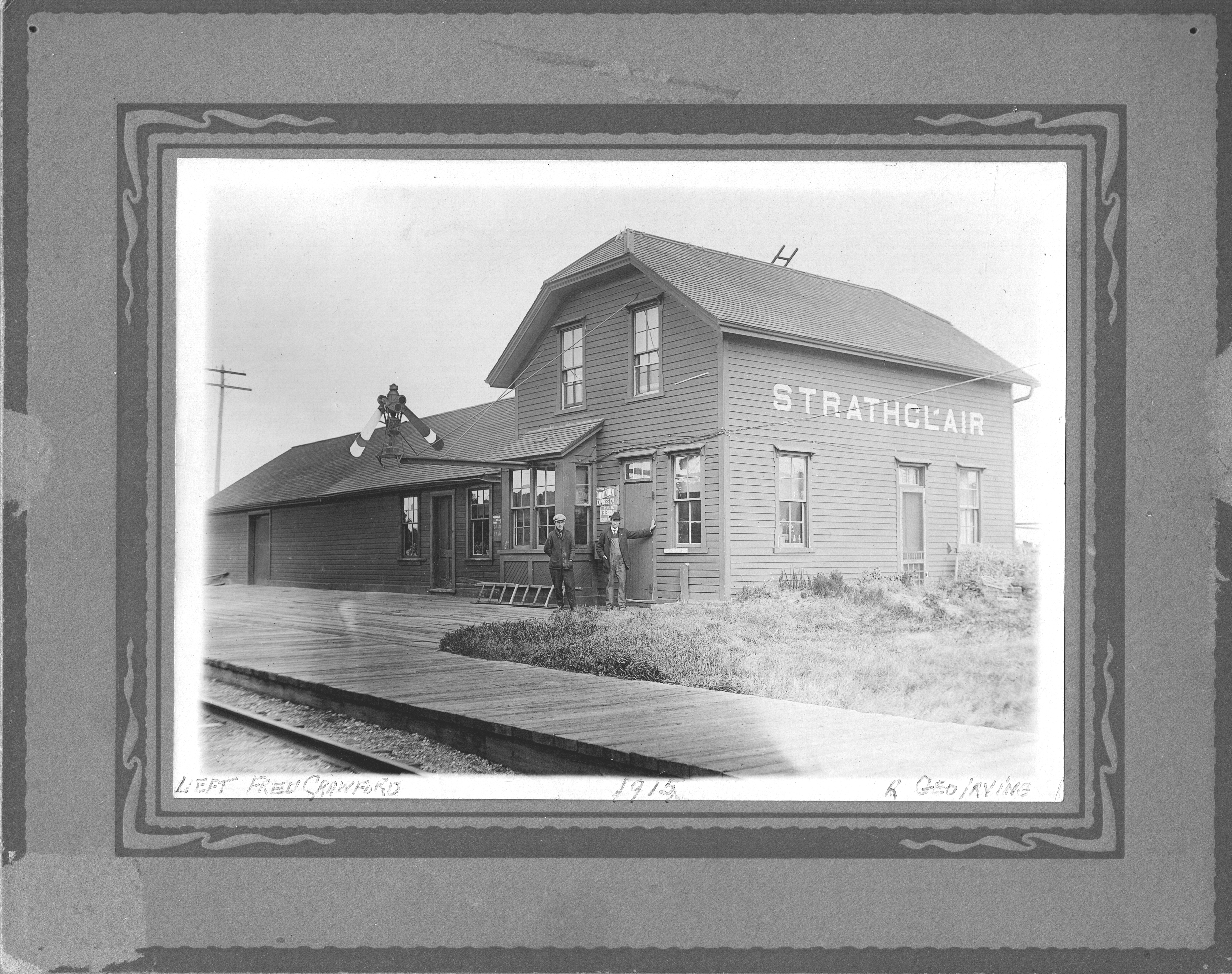 Description Strathclair Station September 1915. George Irving (Agent), Fred Crawford (Assistant)