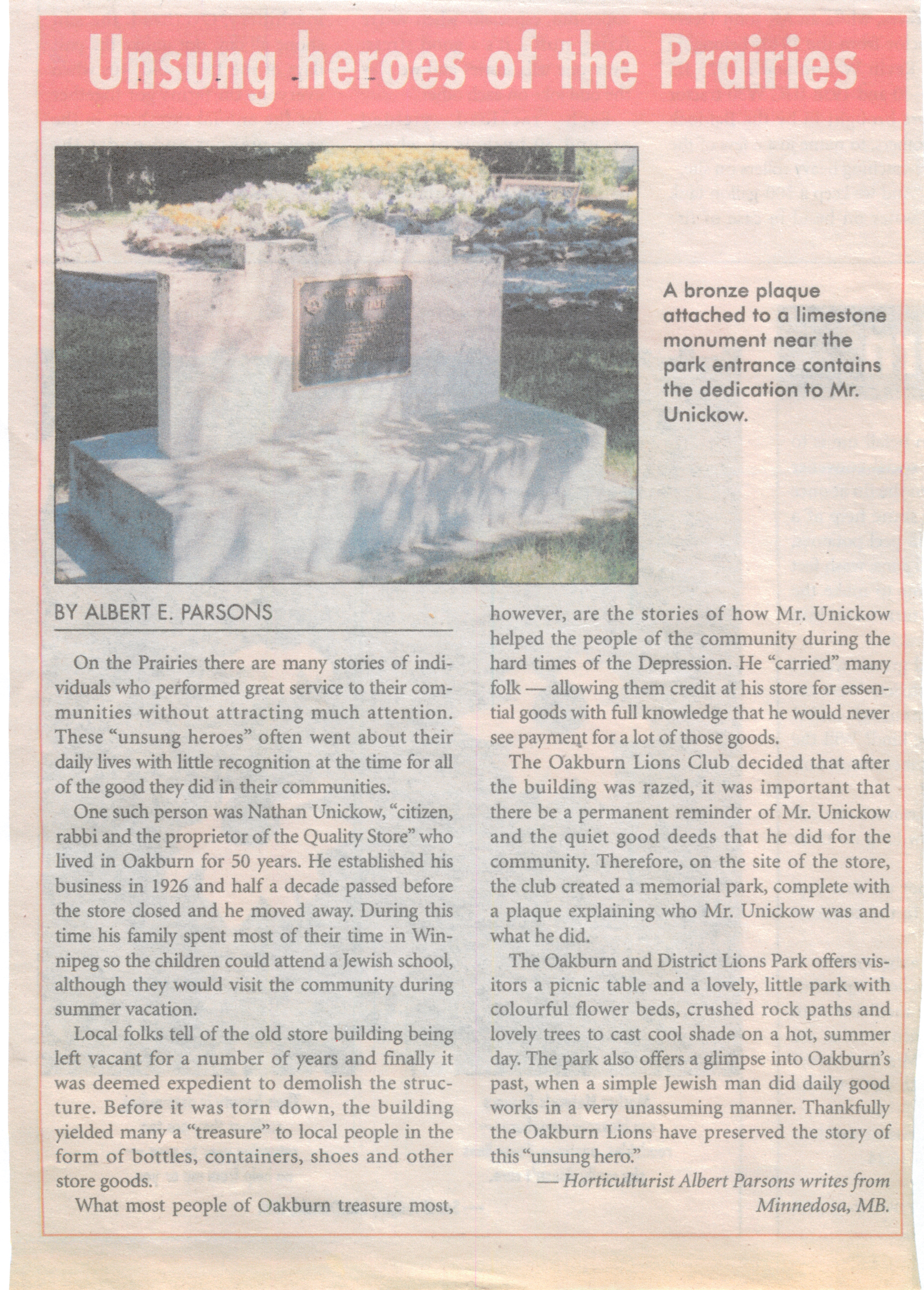 Object Desc Newspaper clipping telling the story of Nathan Unickow. Albert Parsons
