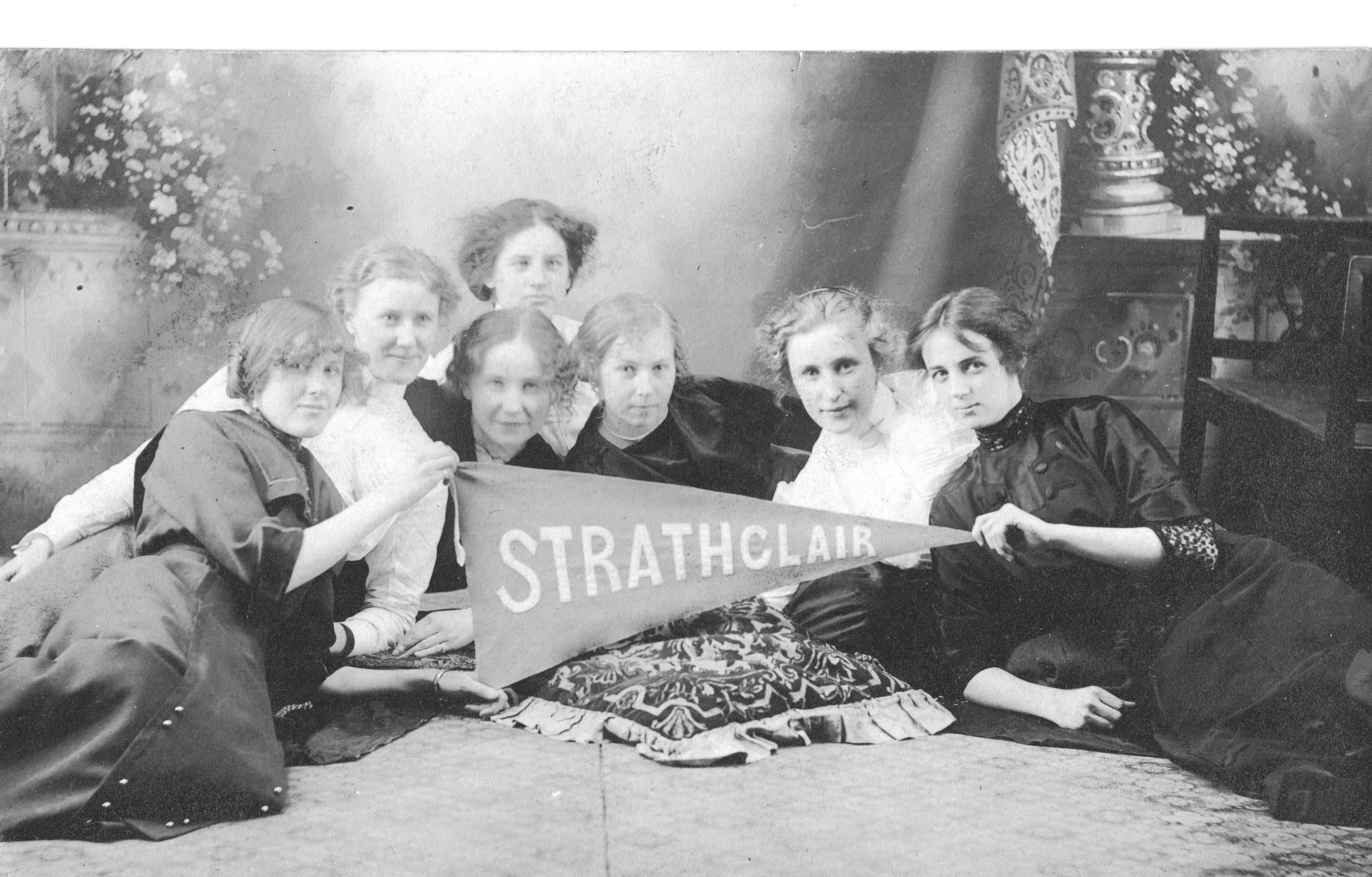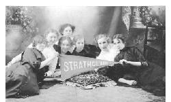 Description 7 Unknown ladies, holding Strathclair Banner, Early 1900's