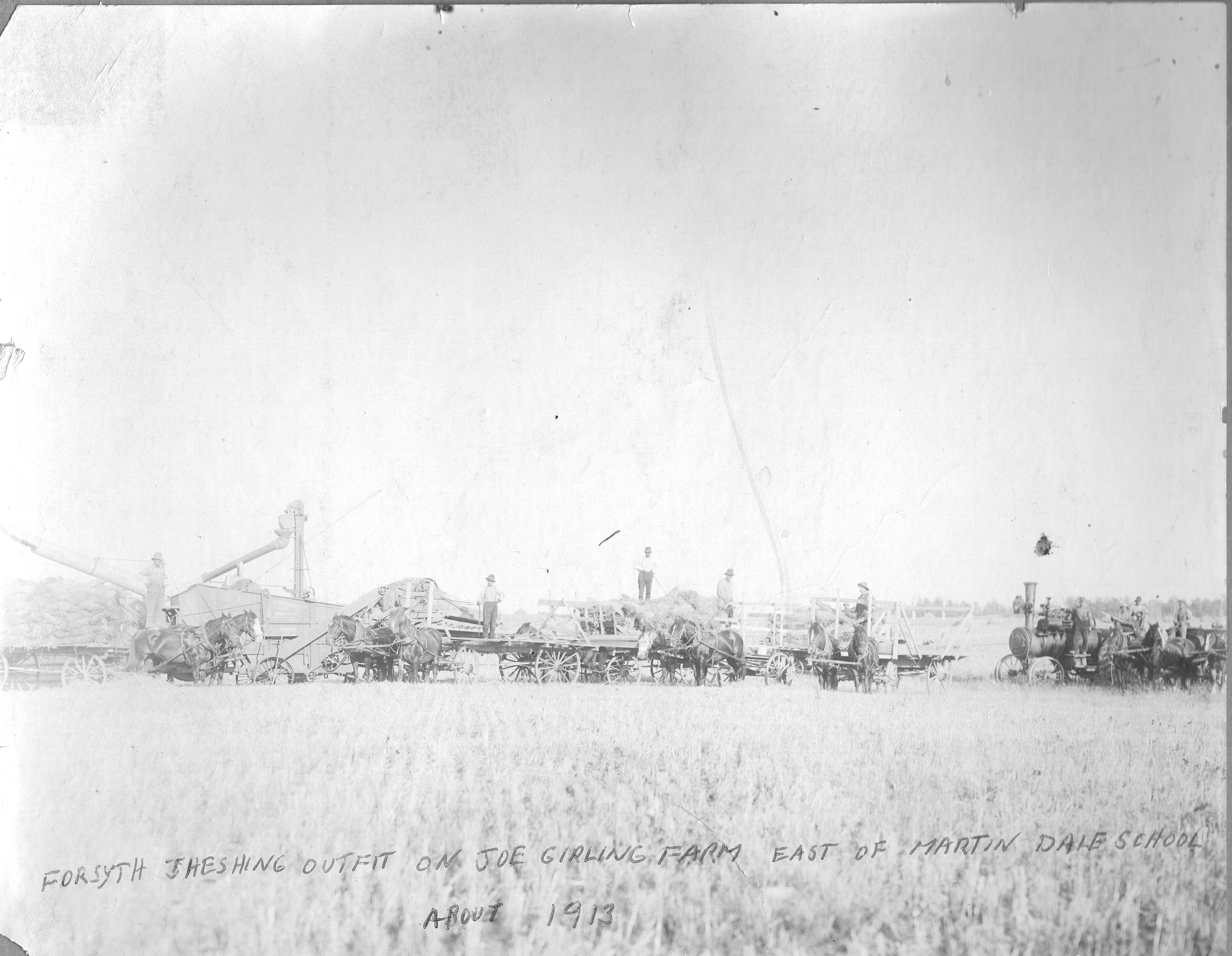 Object Desc Forsythe Threshing Outfit. Taken on the Joe Girling farm in the Martindale School District. 1913