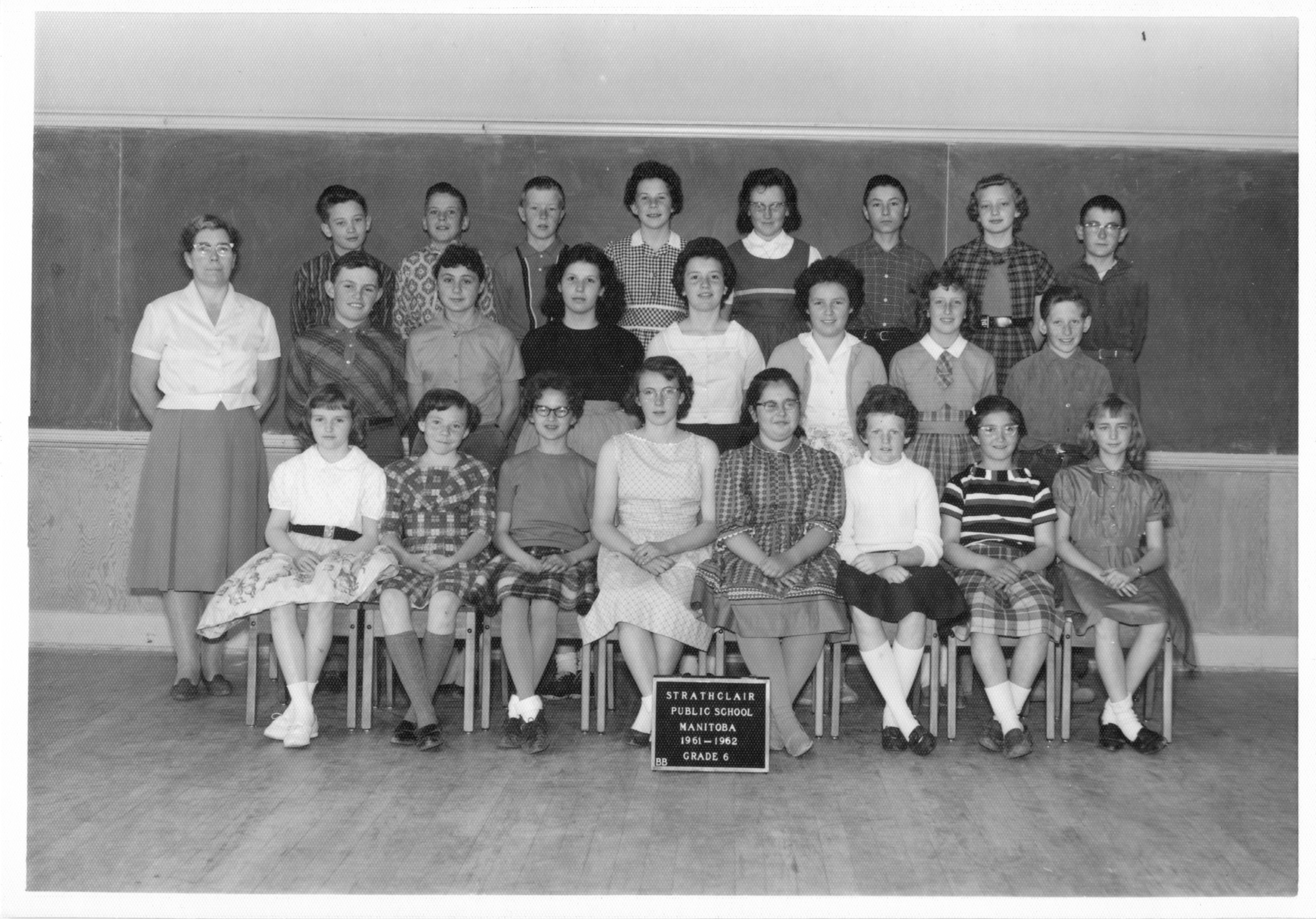 Description Front (L-R) Lynn Wilson, Evelyn Jarema, --- Johnson, Marie Elliot, ----Johnson, Darlen Bueckert, Gloria Zebiak, Collene, Switzer, Adeline Jarema. Second (L-R) Brian Elliot, Tony Fiddler, Glenda Glenn, Audrey Fortune, Bruno Fiddler, Louis Freisen, Vivian Rapley, John Gill, Nora McMurachy (Teacher) 3rd Row, (L-R) Ruthe Kotyk, Faye Neal, Muriel Gamey, Margie Drake, Linda Druin, Lindy Lee, Barbara Henry, Carol Lavallee, Alie Biccum. Back Row (L-R) Russ Glenn, Allen Schoemperlen, Ross Donough, Jim McKerchar, Reg Moffat, Brent Gamey, Alex Jarema, Gerry Glenn,