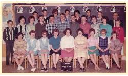 Description Back (L-R) Brent Gamey, Gordon McDonald, Allie Biccum, Reg Moffatt, Ruth Kotyk, Alex Jarama, Allan Schoemperlen, Middle (L-R) Ross Donough, Margie Drake, Barb Henry, Bob McDonald, Nelson Baranyk, Jerry Bryce, Brian Couling, John Gill, Vivian Rapley, Glenda Glen, Jim McKerchar. Front (L-R) Evelyn Jarama, Marie Elliot, Julie Hrynko, Caral Lavallee, Muriel Gamey, Glorial Zebiak, Darlene Beukert, Anne-Marie Switzer, Mr Tokar (Teacher)
