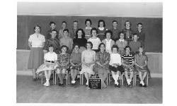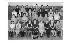 Description Back (L-R) Glenn Franks, Norman Jack, Robert Bull, Ralph McMillan, Rudy Jarama, Lavern Rose, Ed Kotyk, Gunner Rognan, Wayne McCutcheon, Orville Grills, Derwood Wilson, Middle (L-R) Ken Kotyk, Irene Pirie, Doreen Fleury, Audrey Fleury, Judy Rose, Sally Ruthkowski, Audrey Lipinski, Bev Grills, Audrey Christie, Kaye Winstone, Phyllis Manulak, Front (L-R) Dale Sheardown, Glenn McLean, Sylivia Henry, Beverly Fortune, Shirley Leitch, Mable Gill, Elaine Westaway, Adelaide Jarama, Gwen Currah, Garry Glenn, Dennis Jarama, Ron Rapley, Bessy Armstrong (Teacher)