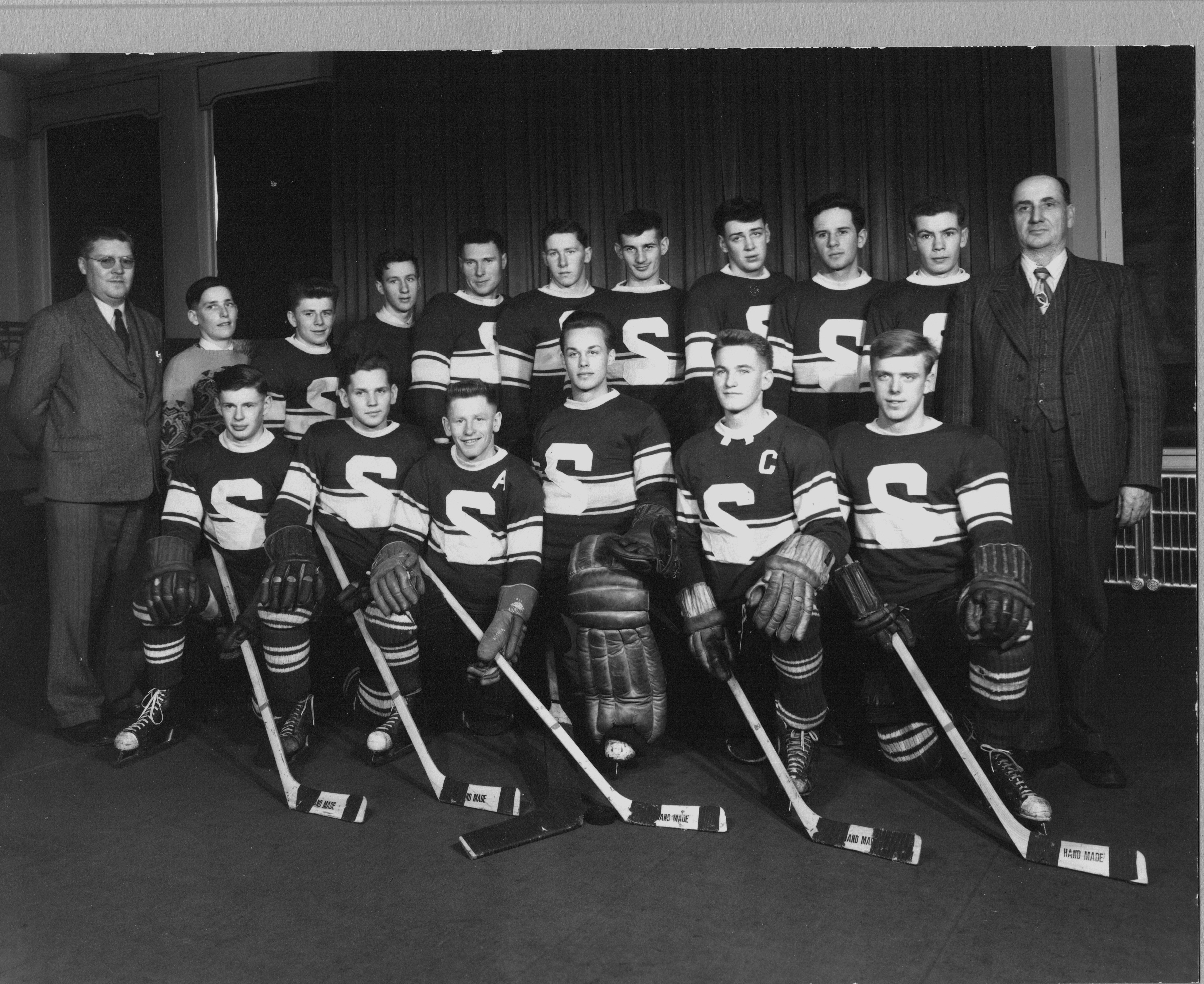 Object Desc Strathclair Hockey Junior B 1949-50. Back L-R Dr. McKenzie (coach) See notes