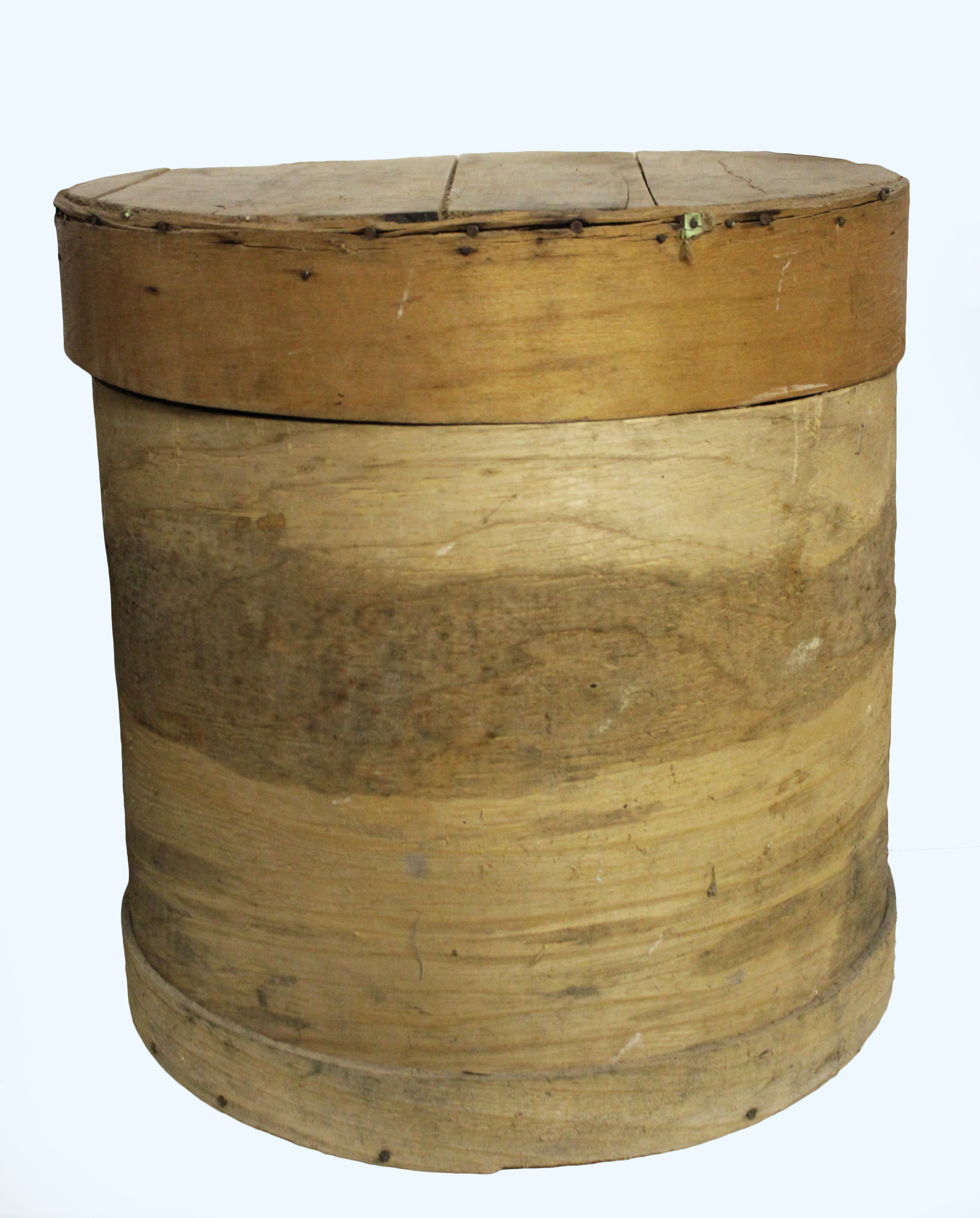 Object Desc A box this size would have held three rounds of cheese on top of each other.