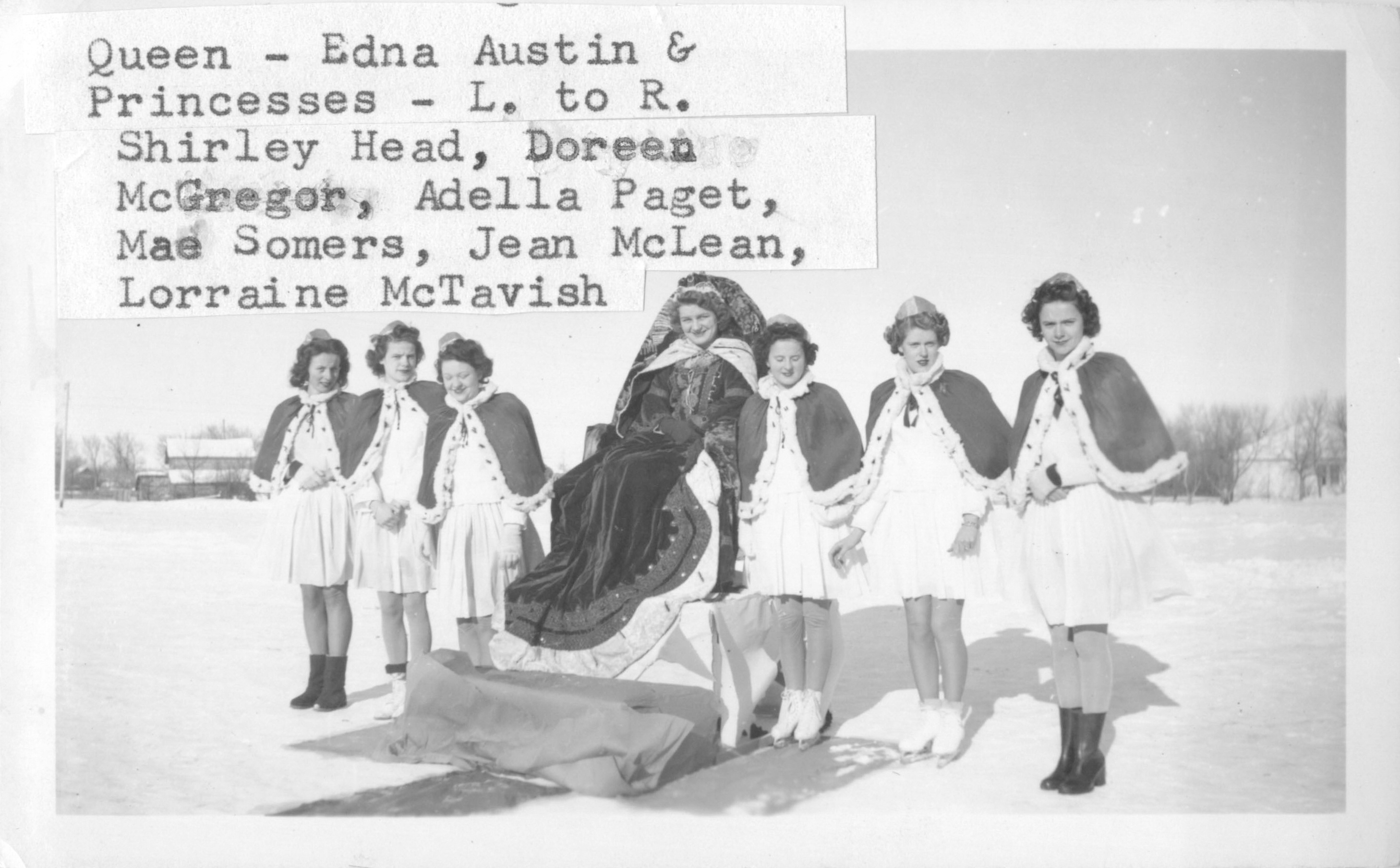 Description Queen - Edna Austin, and Princesses L-R: Shirley Head, Doreen McGregor, Adella Pagete, Mae Somers, Jean McLean, Lorraine McTavish