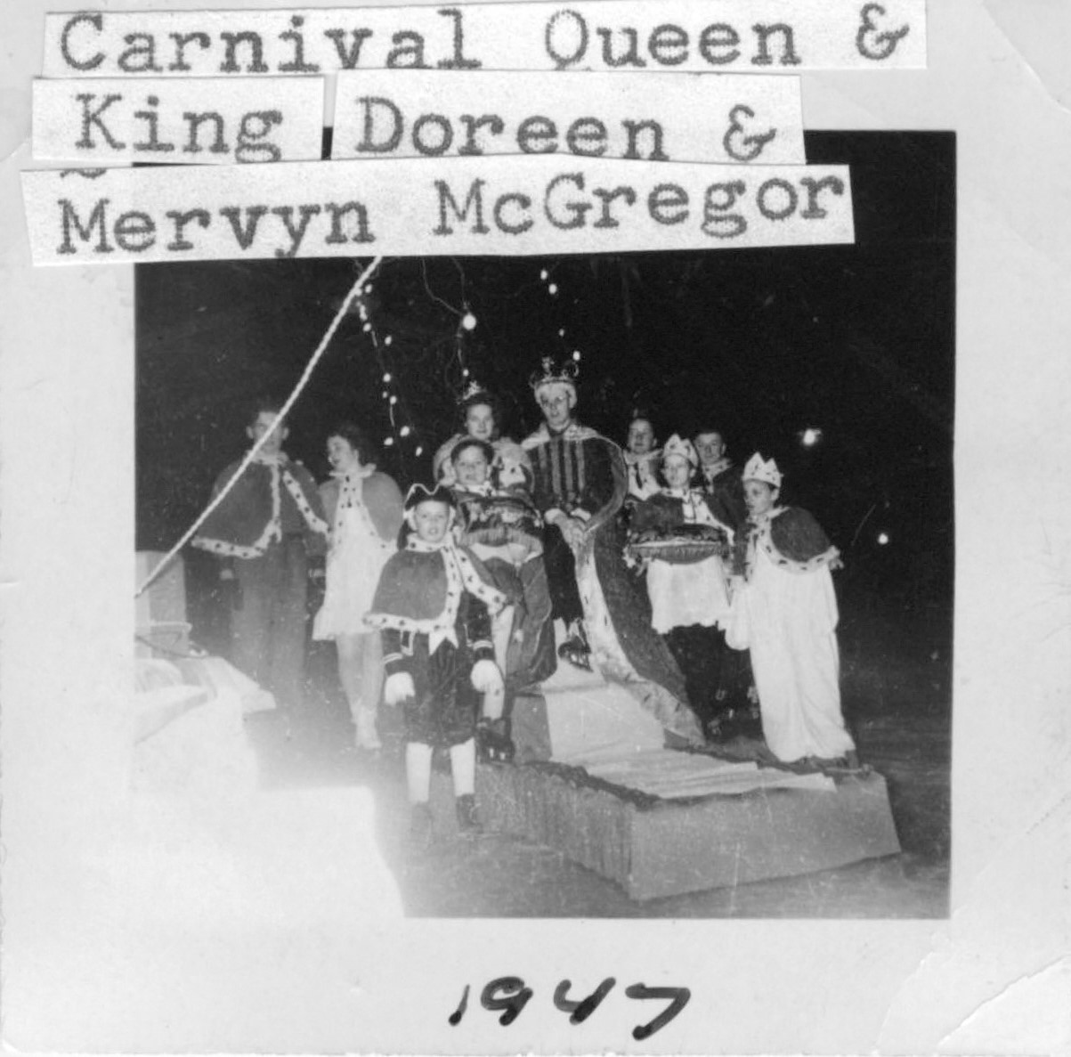 Description Carnival Queen and King 1947; Doreen and Mervyn McGregor