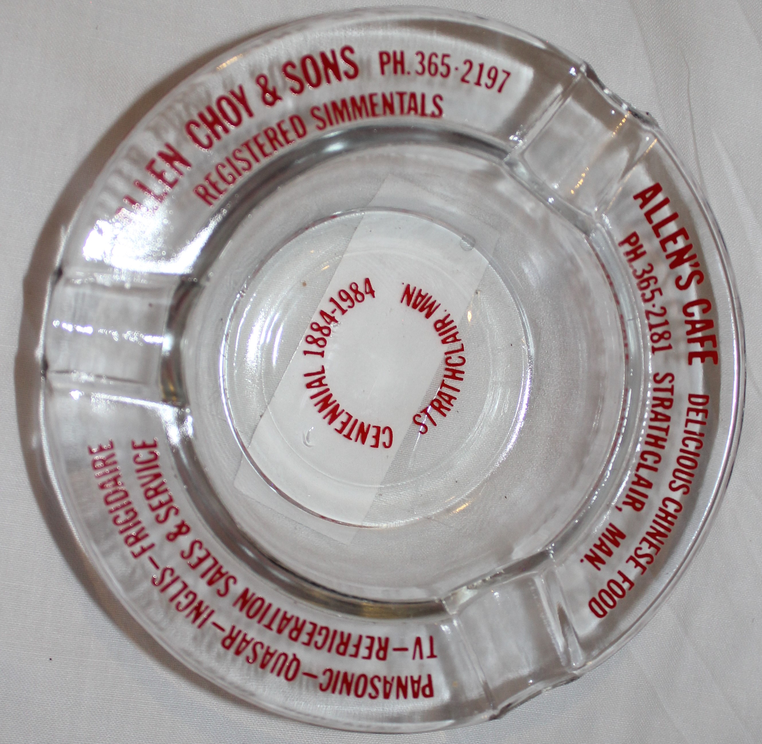 Object Desc Glass ash tray, with Allen's Cafe insignia